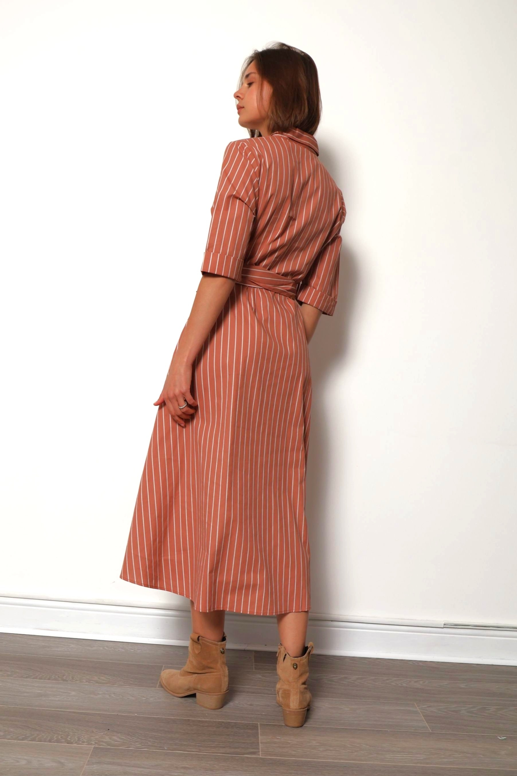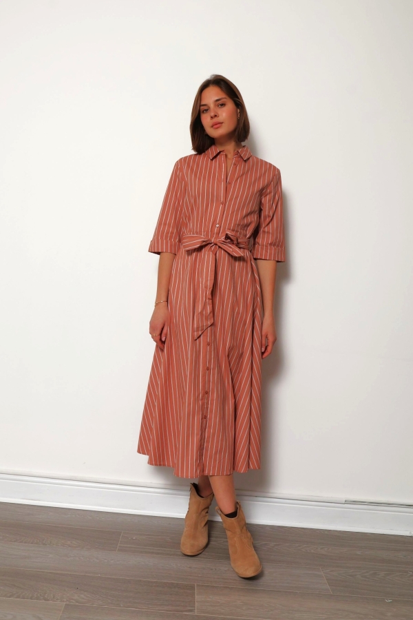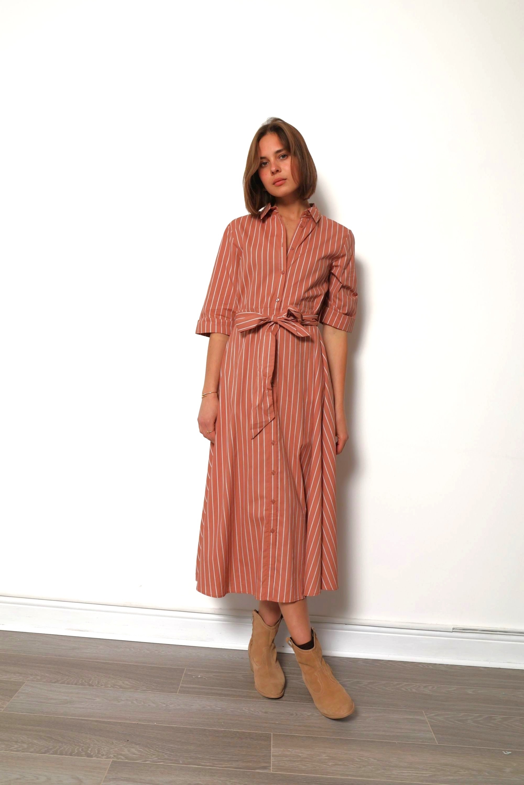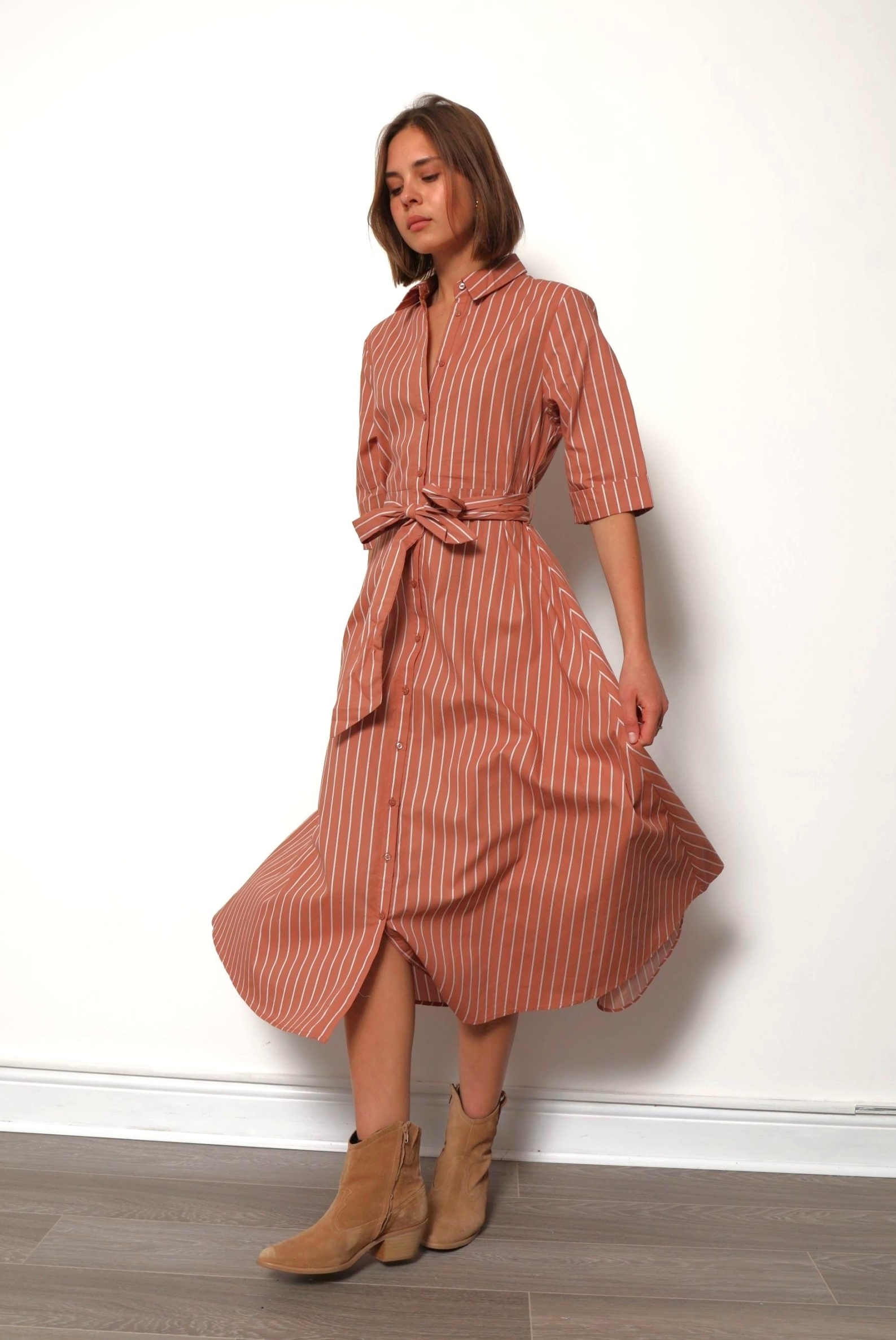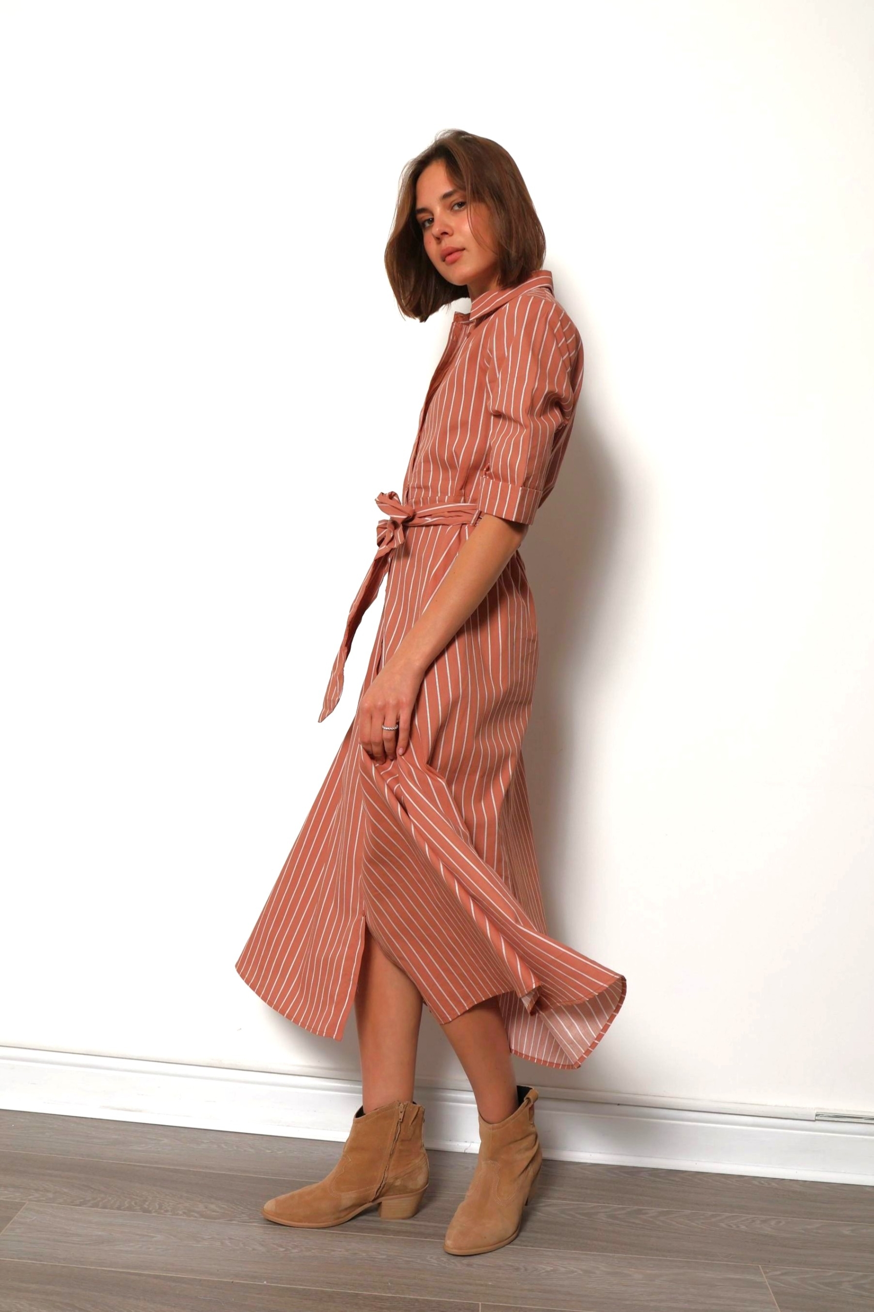 What we love most about shirt dresses is their versatility. Cut for a slim fit, this midi-length shirt dress is made from lightweight cotton  patterned with an abstract motif and has tonal tie belt to cinch the shape. Style yours with knee boots, sandals or ballet flats.  It’s cut from cotton that drapes effortlessly and has floaty hem. Leave the first few buttons undone for a more relaxed take.