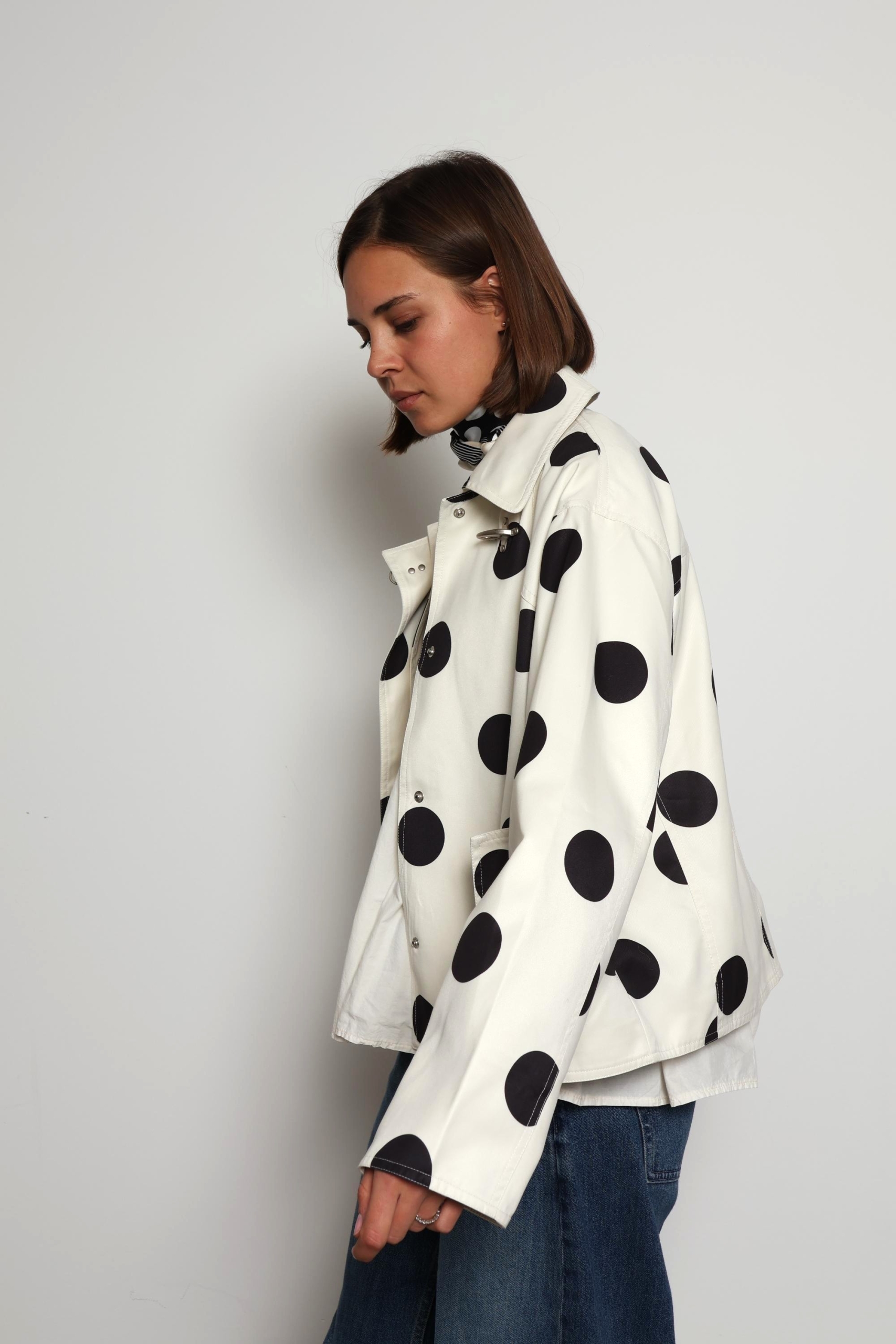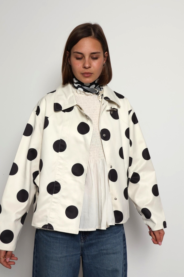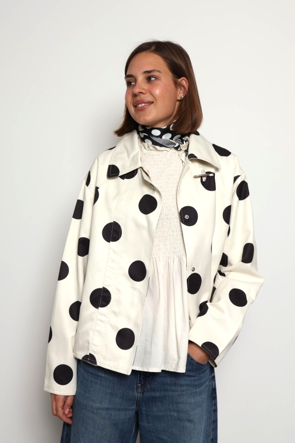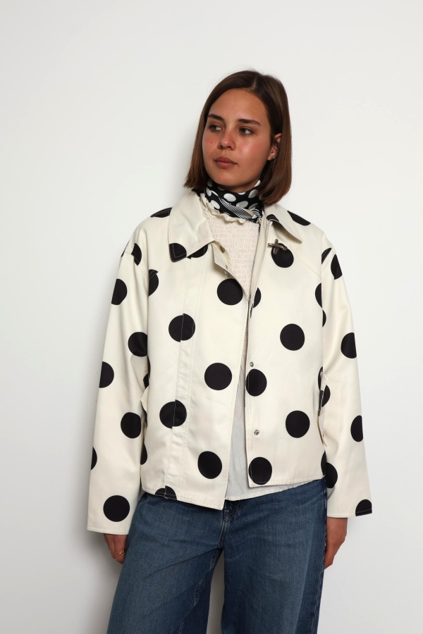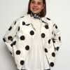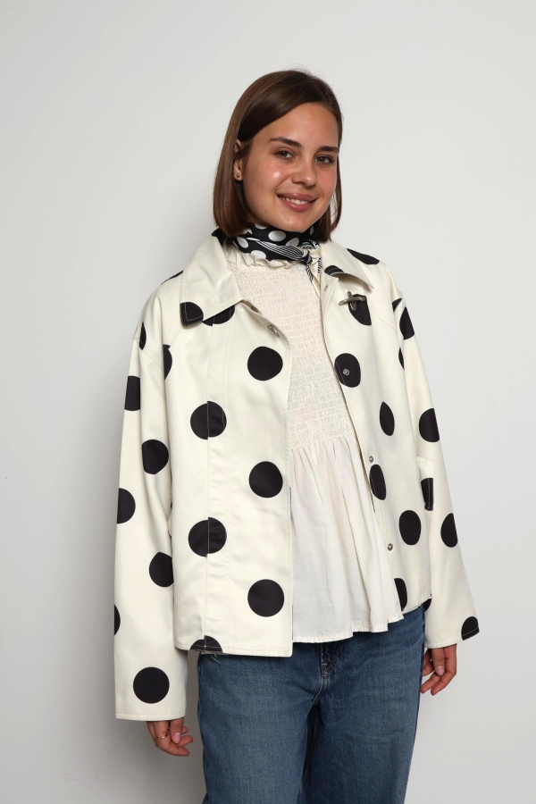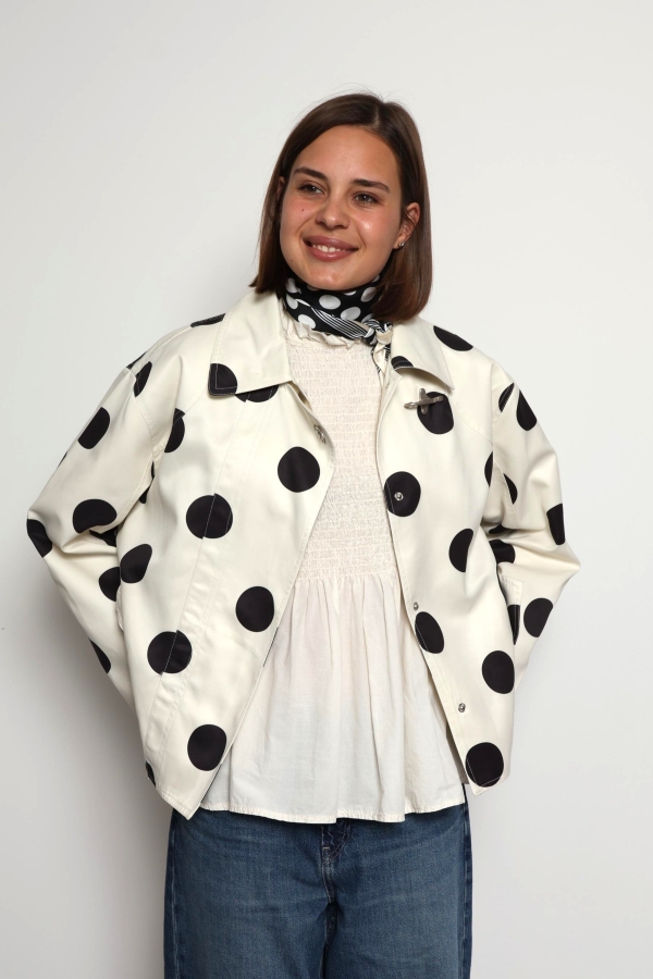 Refresh your spring wardrobe with the Donna Cream Polka Dot Casual Jacket, a perfect blend of playful charm and everyday style. Designed in a soft cream shade with timeless black polka dots, this lightweight jacket adds a fun yet elegant touch to any outfit. The comfortable, relaxed fit makes it ideal for layering over your favourite basics, while the breathable fabric keeps you feeling at ease during breezy days and cool evenings. Whether you’re pairing it with jeans for a casual look or dressing it up with a skirt, the Donna jacket is a versatile must-have for effortless spring dressing.