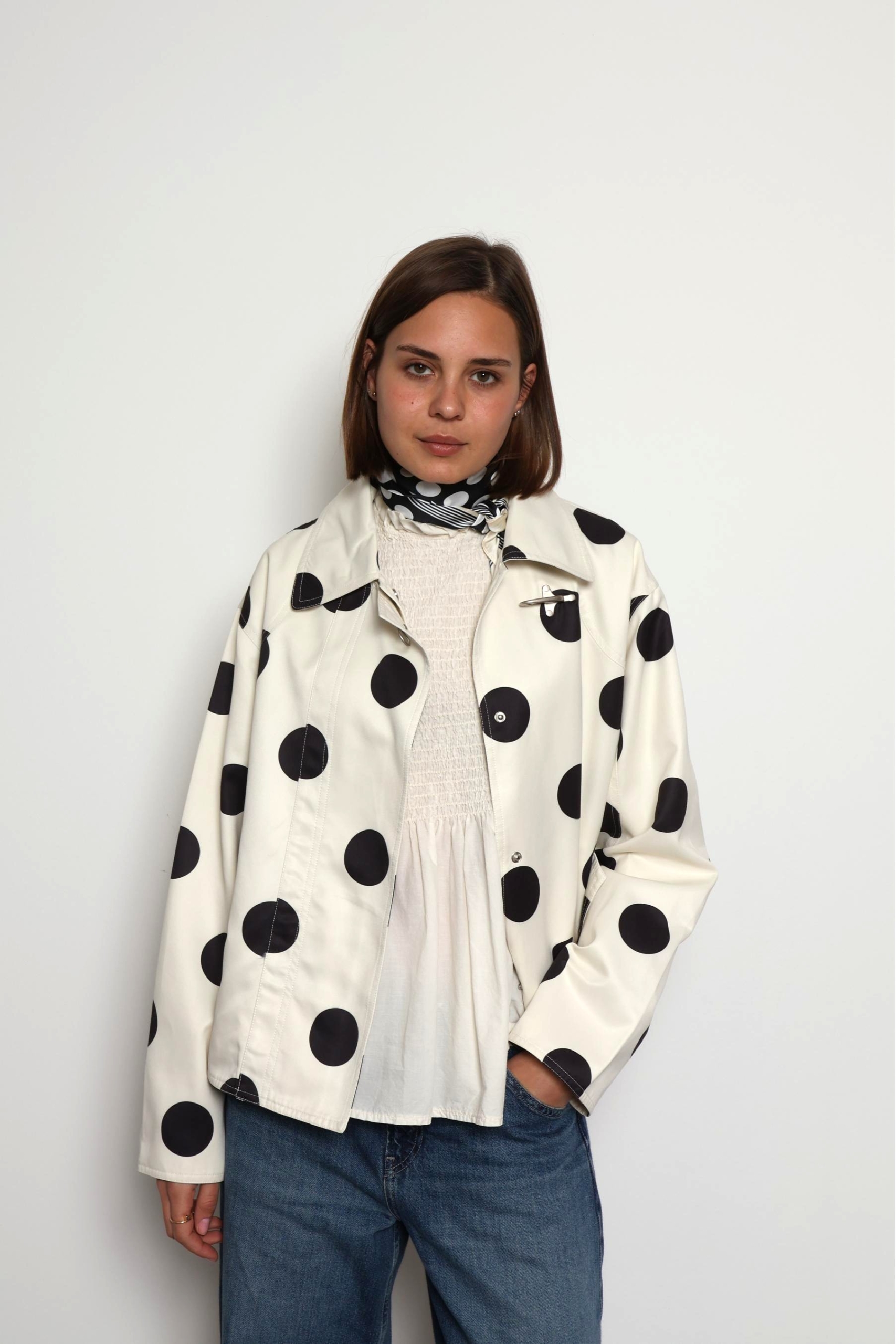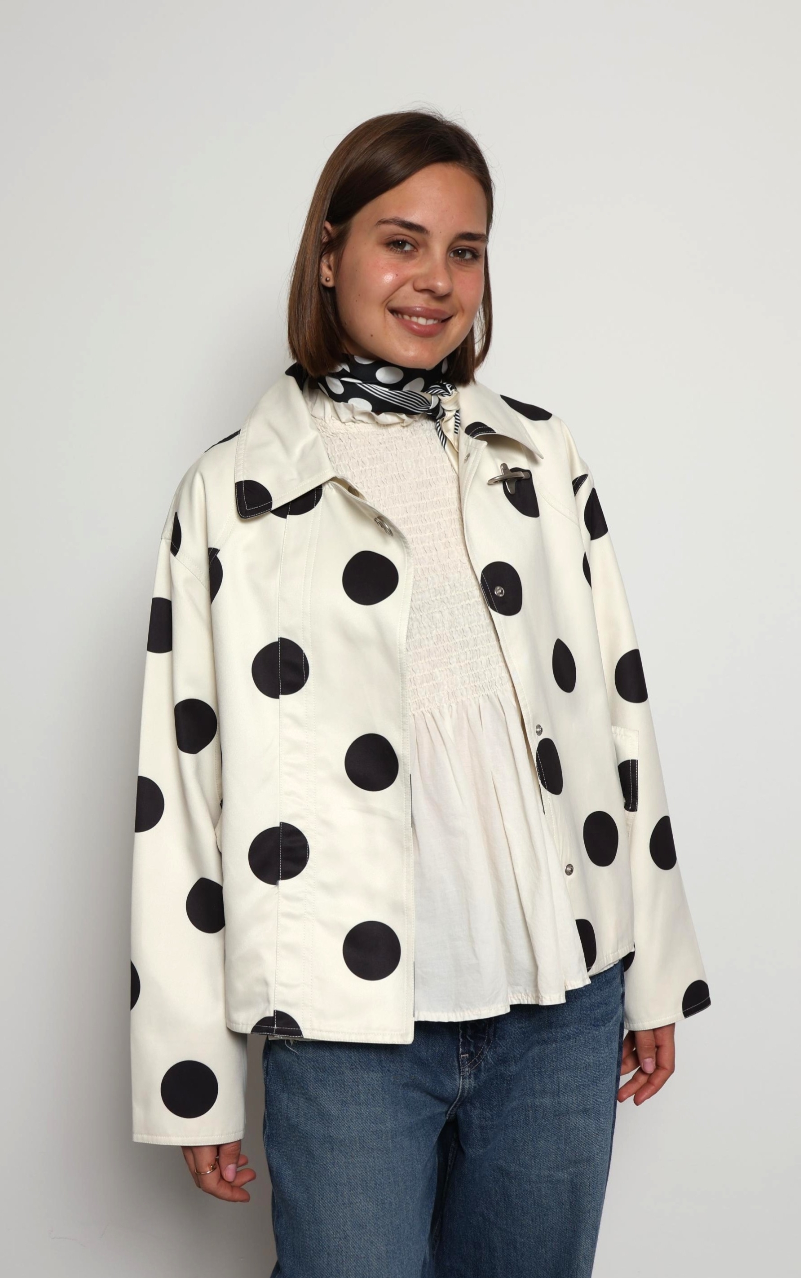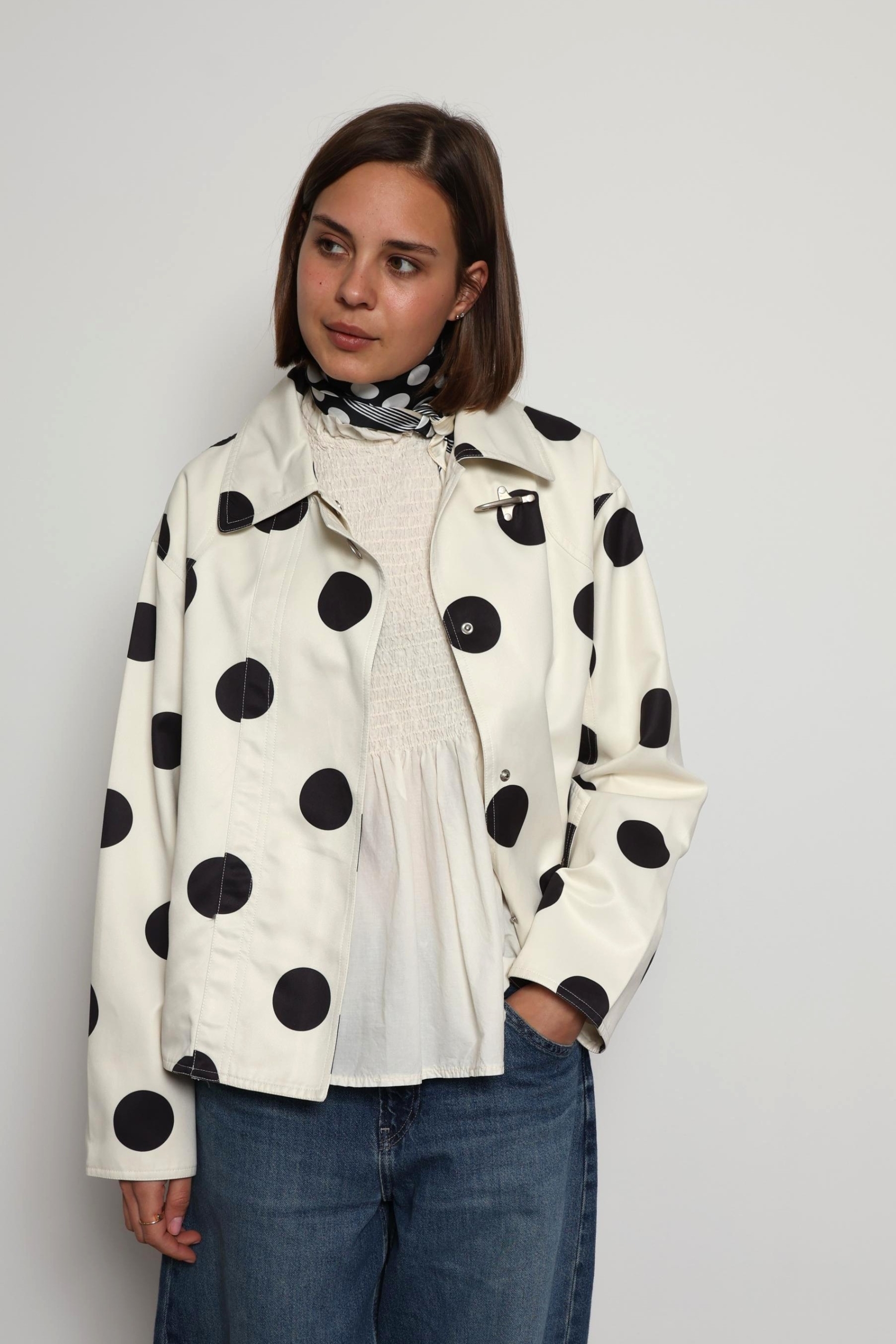 Refresh your spring wardrobe with the Donna Cream Polka Dot Casual Jacket, a perfect blend of playful charm and everyday style. Designed in a soft cream shade with timeless black polka dots, this lightweight jacket adds a fun yet elegant touch to any outfit. The comfortable, relaxed fit makes it ideal for layering over your favourite basics, while the breathable fabric keeps you feeling at ease during breezy days and cool evenings. Whether you’re pairing it with jeans for a casual look or dressing it up with a skirt, the Donna jacket is a versatile must-have for effortless spring dressing.