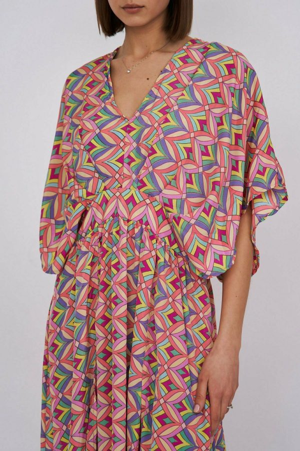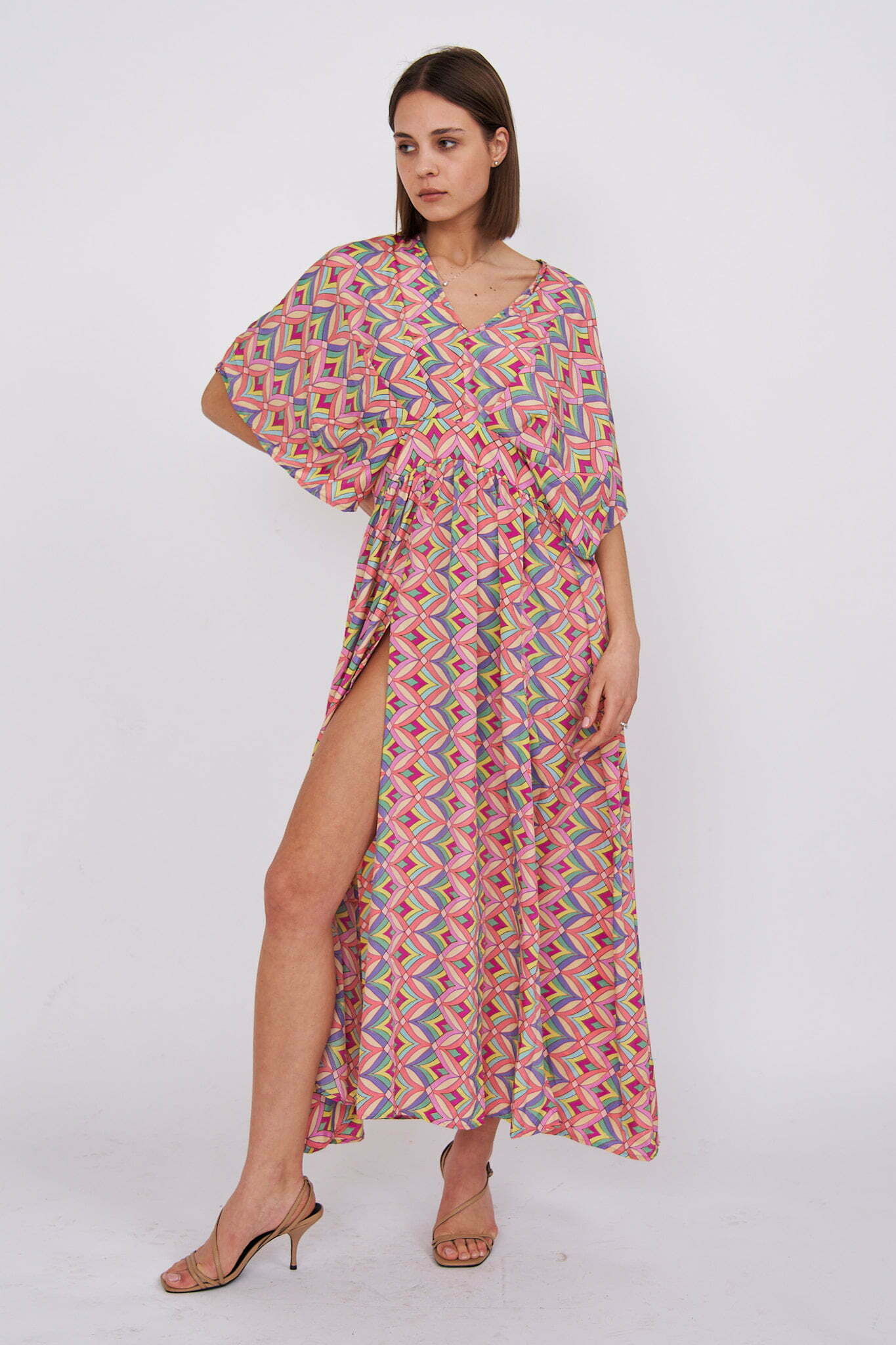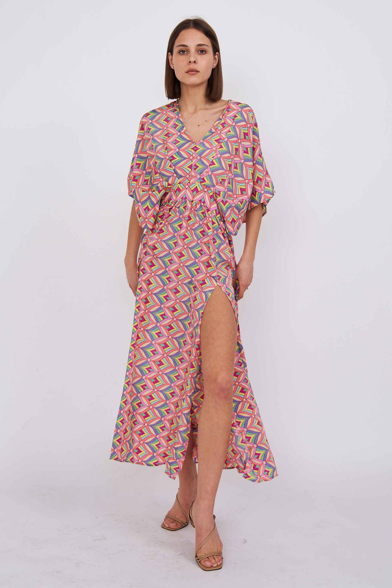 Dress Emillie is so effortless – you’ll wear it on many sunny days and vacations. Cut from breathable viscose, it has a flowing skirt with wide sleeves and smocked waist with wide sleeves . The thigh-grazing slit will ensure you attract attention the minute you walk into the room. Temper the long length with heels.