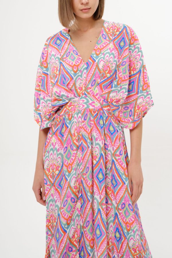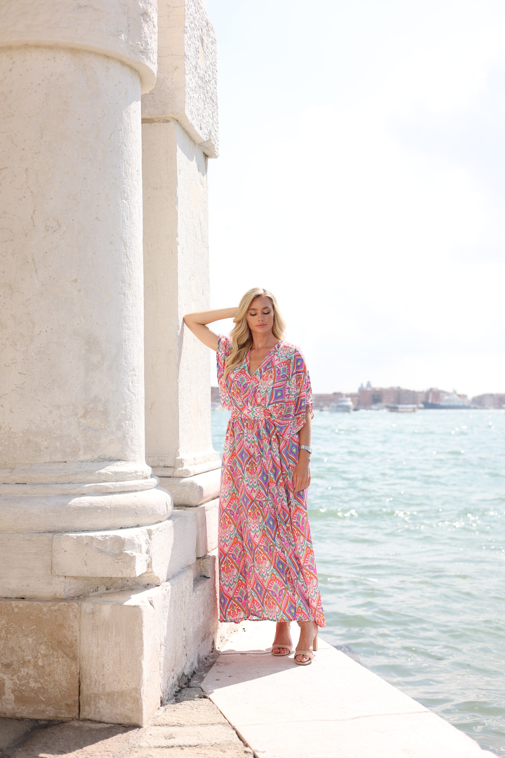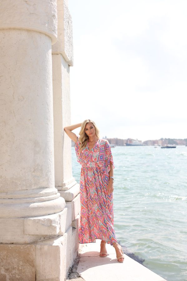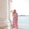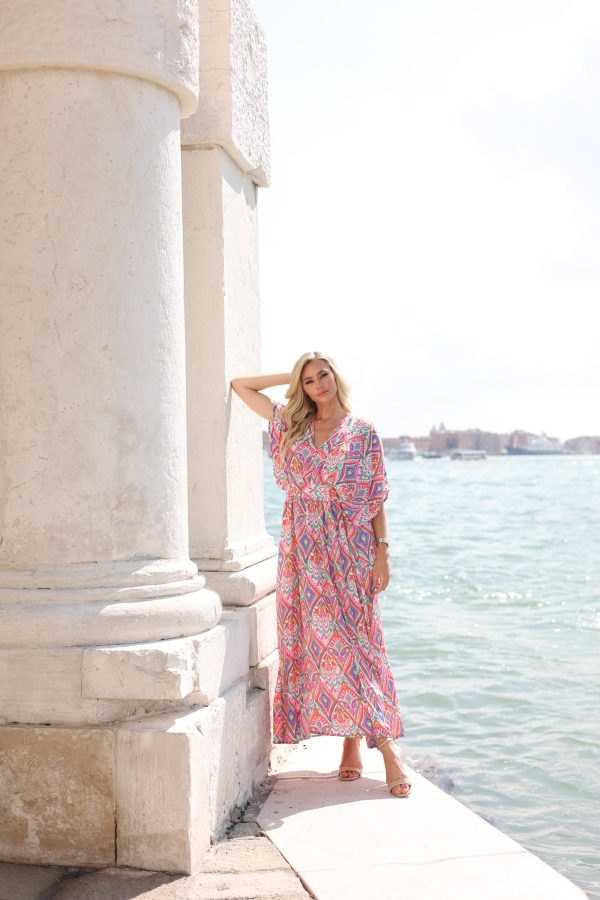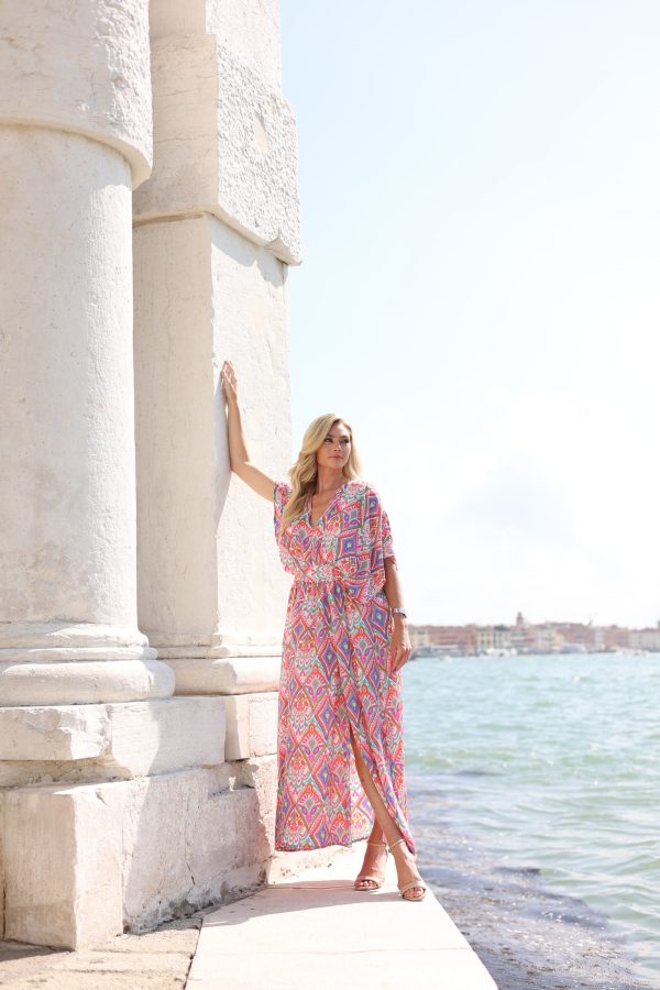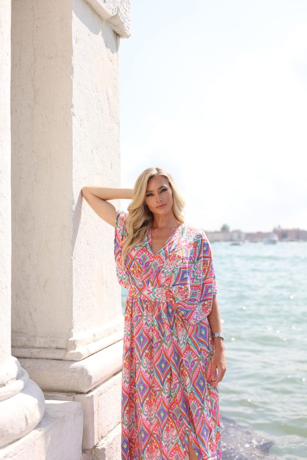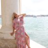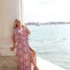 Dress Emillie is so effortless – you’ll wear it on many sunny days and vacations. Cut from breathable viscose, it has a flowing skirt with wide sleeves and smocked waist with wide sleeves . The thigh-grazing slit will ensure you attract attention the minute you walk into the room. Temper the long length with heels.