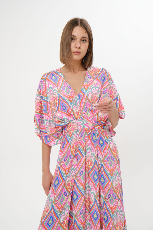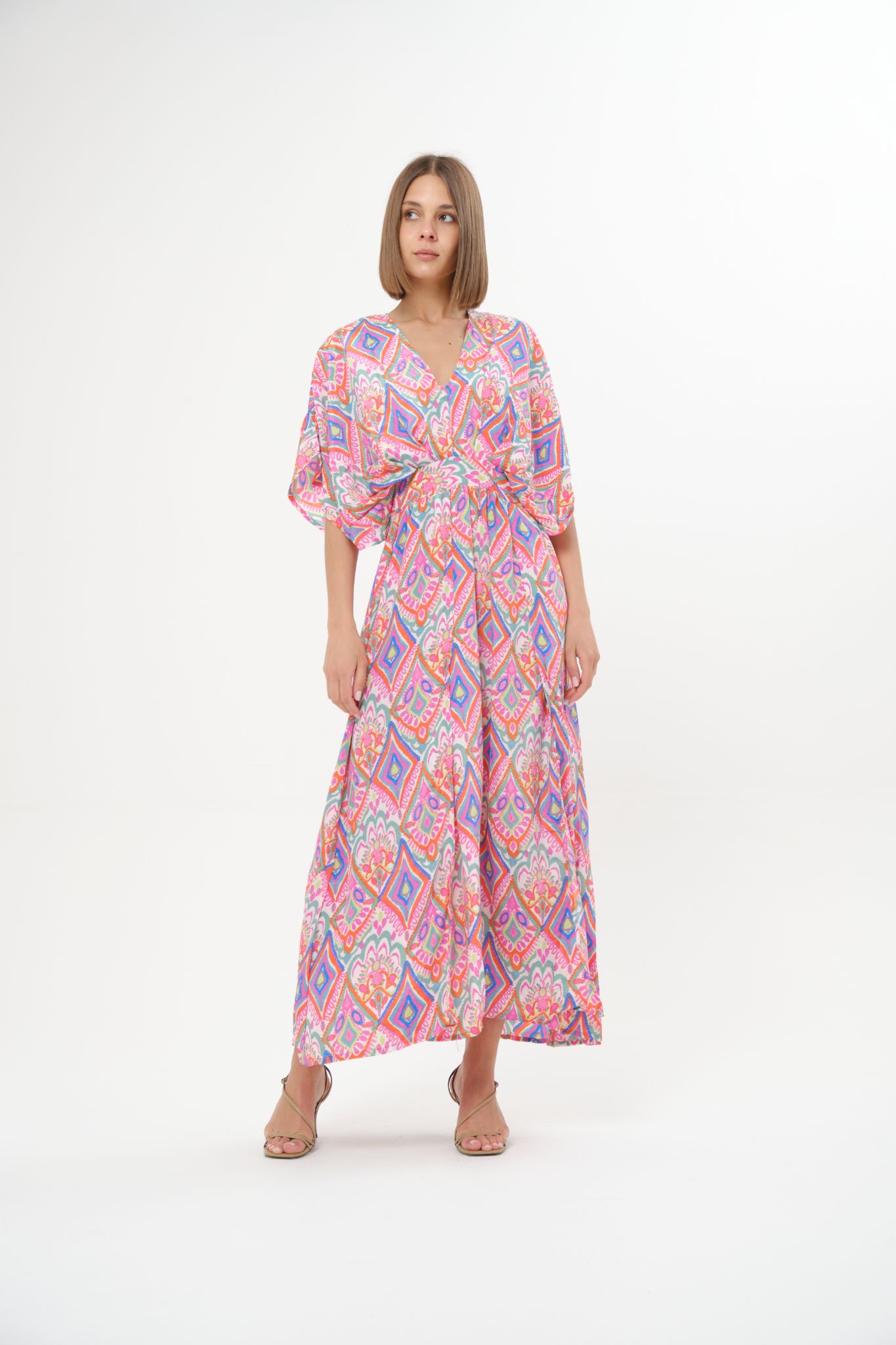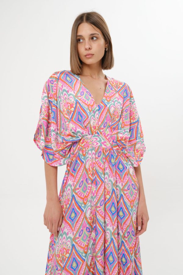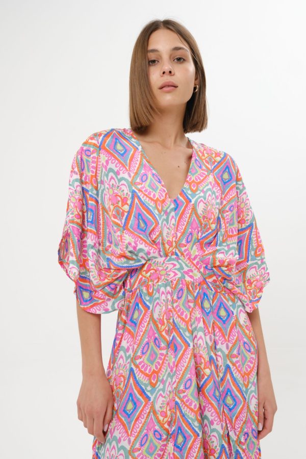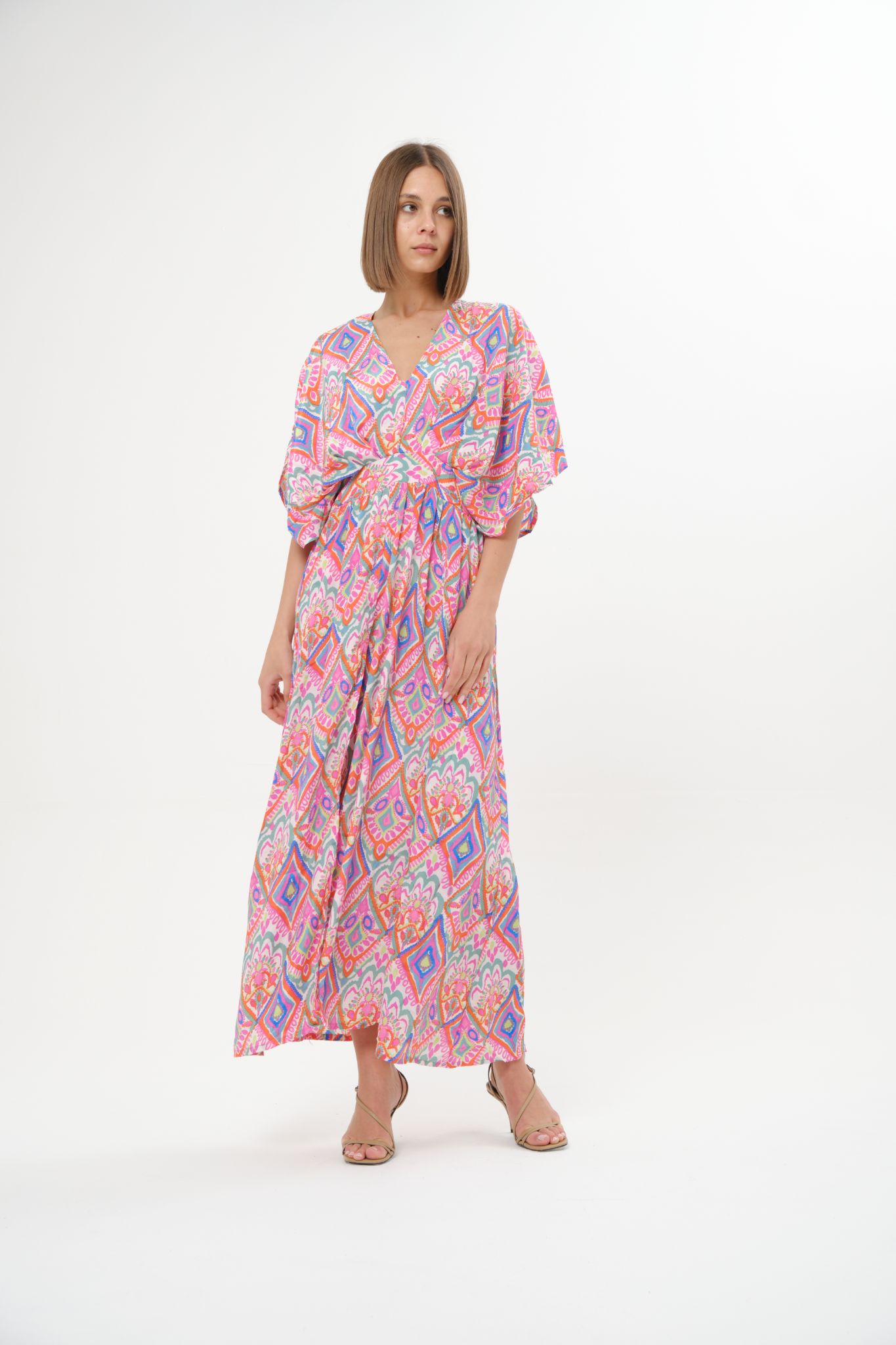 Dress Emillie is so effortless – you’ll wear it on many sunny days and vacations. Cut from breathable viscose, it has a flowing skirt with wide sleeves and smocked waist with wide sleeves . The thigh-grazing slit will ensure you attract attention the minute you walk into the room. Temper the long length with heels.