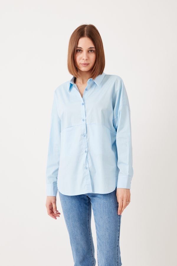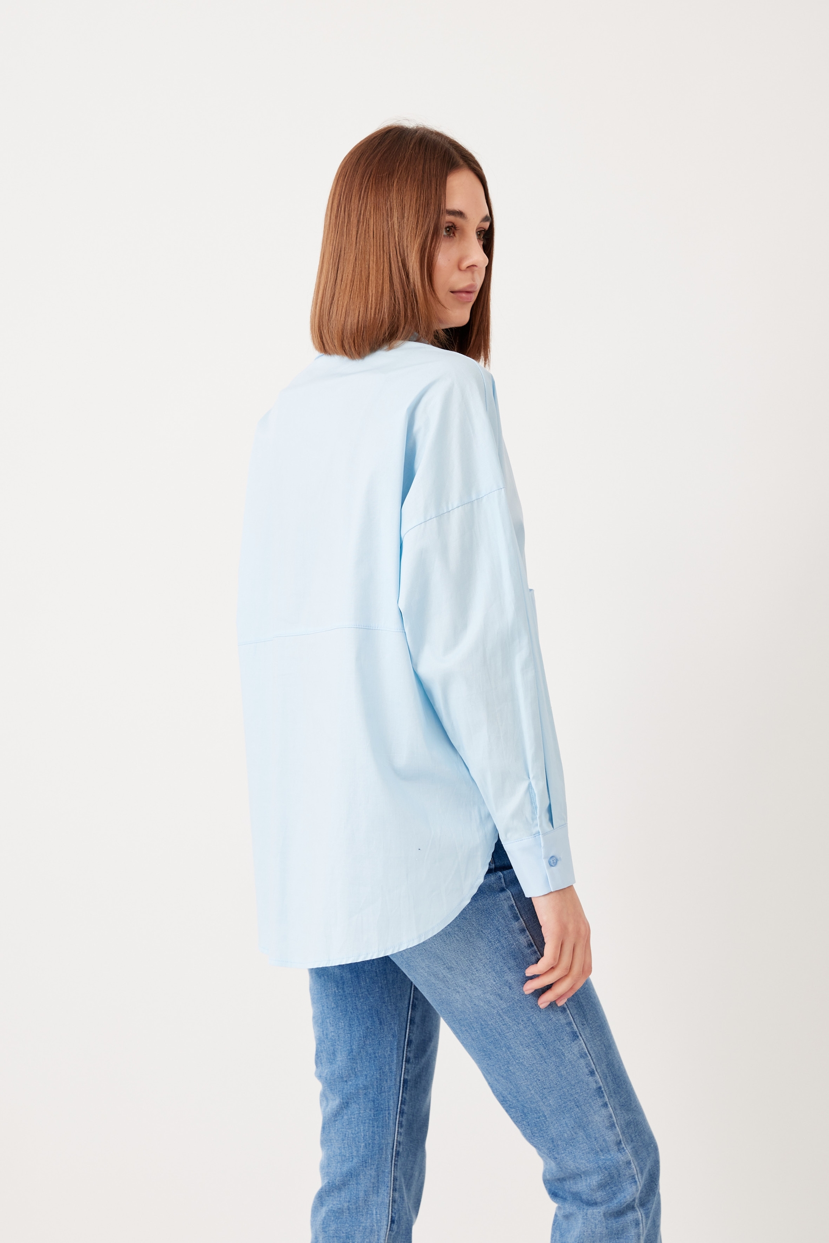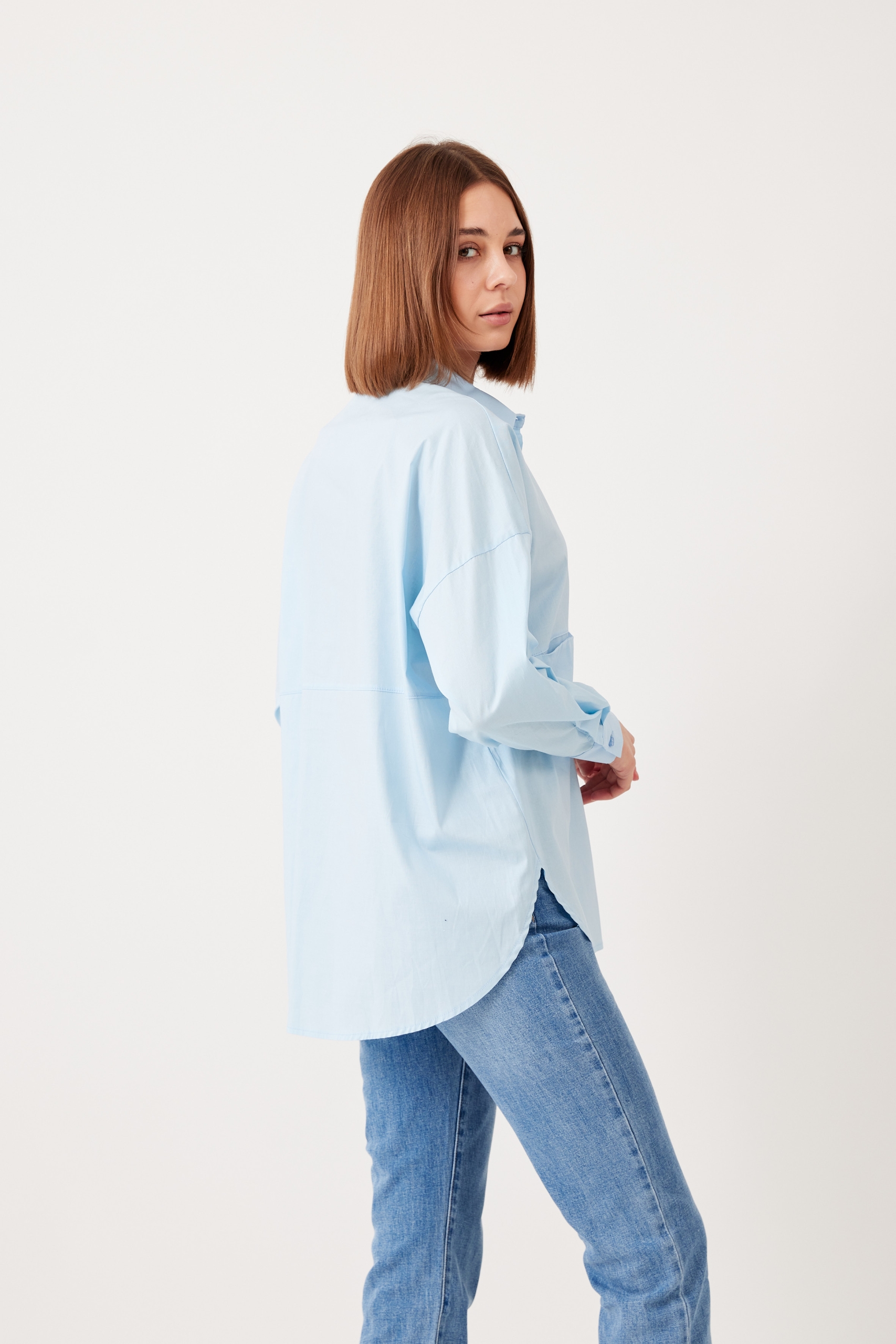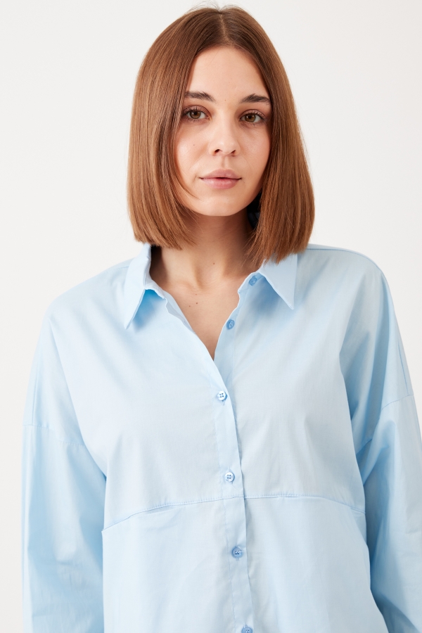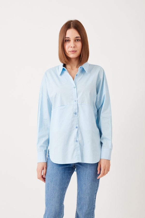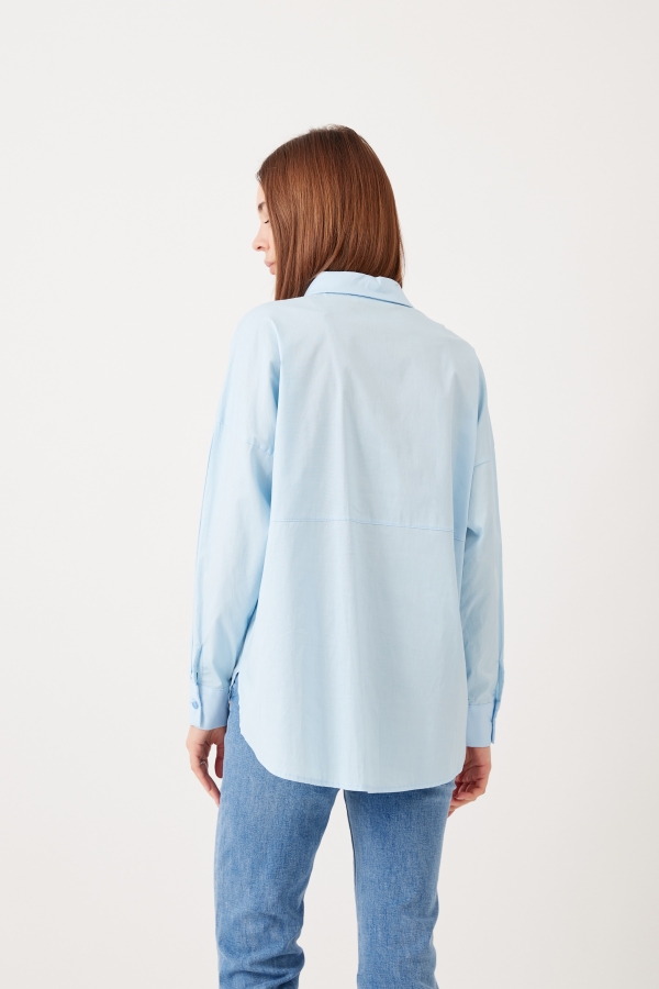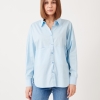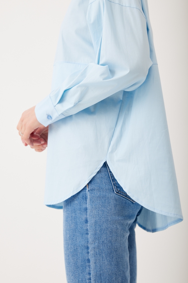 This shirt will go so far in your wardrobe – style yours half-tucked into jeans, silk pants cinched with a belt or layered under a knit vest. It has a relaxed shape with buttoned cuffs and a long, curved hem. Â It’s cut from striped cotton-poplin and has a chest pocket. Wear it with a striped sweater wrapped around your shoulders. Leave a few buttons undone at the collared neckline and hem for a casual feel.