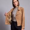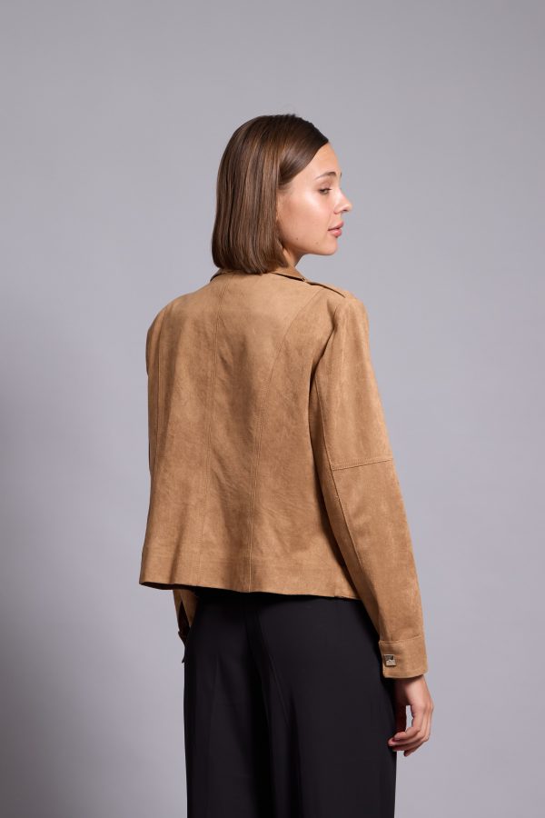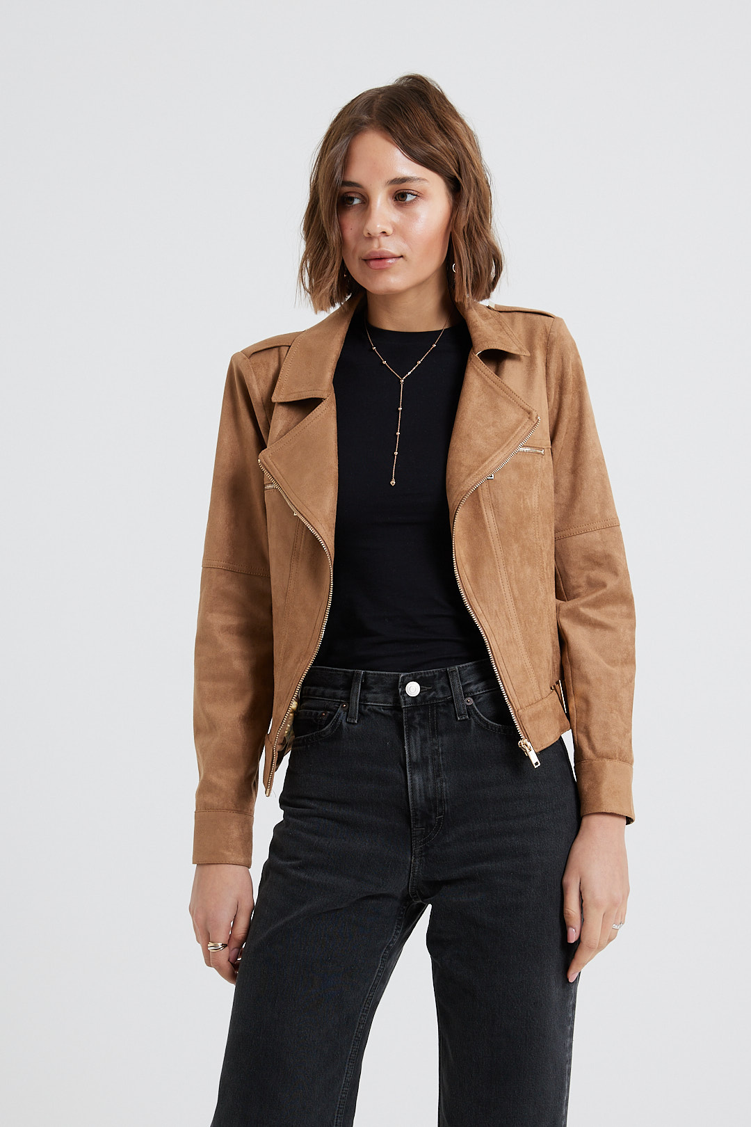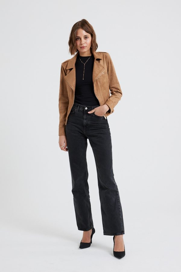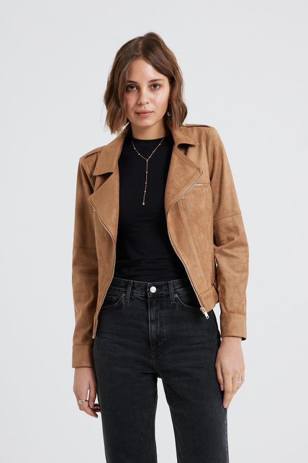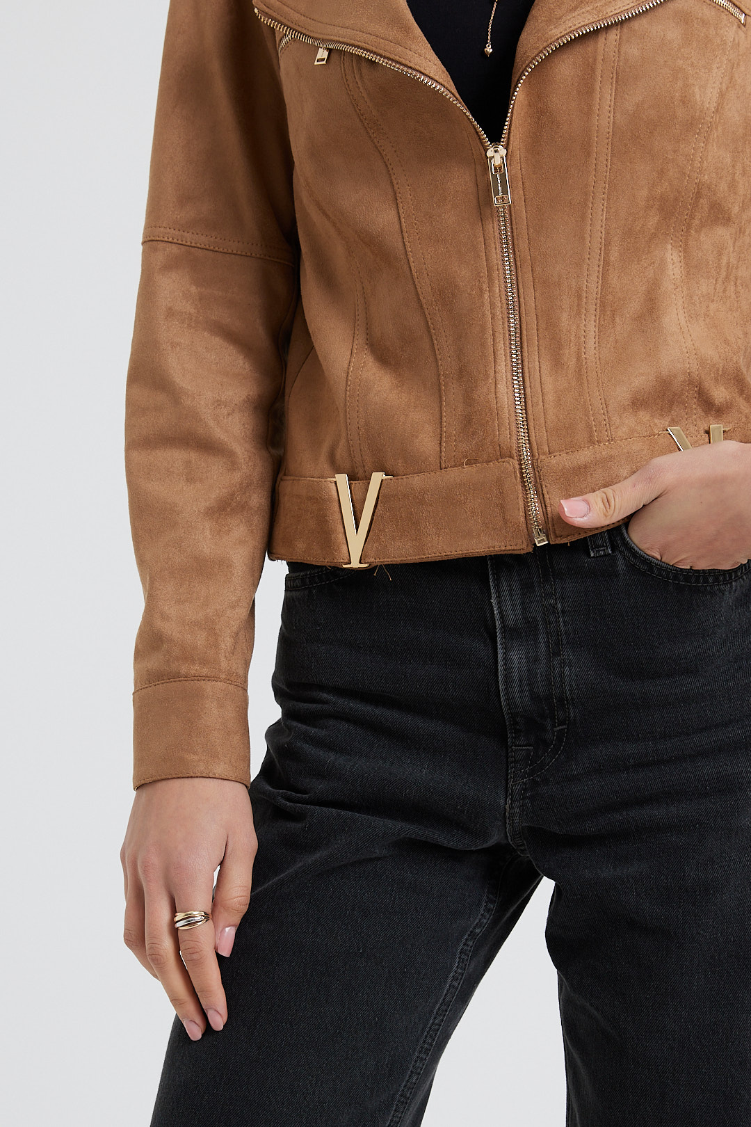 It’s made from lightly faux leather and finished with numerous zips. The satin lining ensures smooth layering over sweaters and dresses. Notice how it transforms any outfit you pair it with.