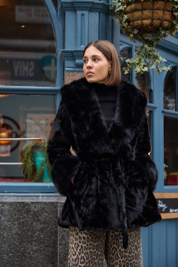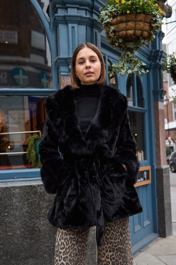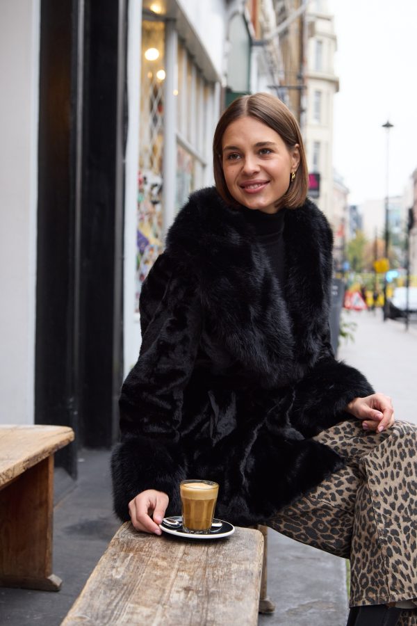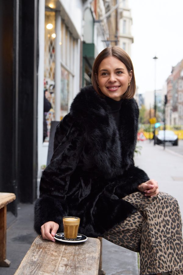 Felicity outerwear feels so soft and luxurious, you’re guaranteed to be reaching for it on rotation all season long. This  style has been made from plush faux fur . The minimal design is enhanced by  a classic storm flap neckline , while the smooth satin lining ensures easy layering. Felicity coat offers the look of chic luxury while offering plenty of warmth.  Discreet pockets come in handy for stowing essentials on the go. Lean into the relaxed mood by styling yours with just  about anything. Slip it on over a turtleneck sweater or shirt dress.