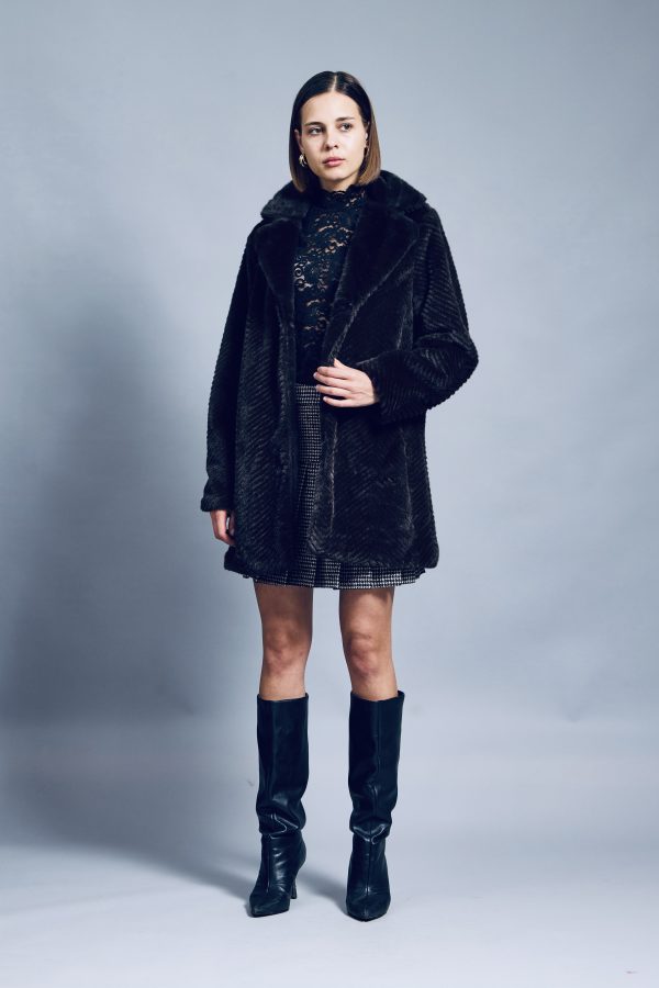 Francesca outerwear feels so soft and luxurious, you’re guaranteed to be reaching for it on rotation all season long. This style has been made from plush faux fur . The minimal design is enhanced by a classic storm flap neckline , while the smooth satin lining ensures easy layering. Francesca coat offers the look of chic luxury while offering plenty of warmth. Discreet pockets come in handy for stowing essentials on the go. Lean into the relaxed mood by styling yours with just about anything. Slip it on over a turtleneck sweater or shirt dress.