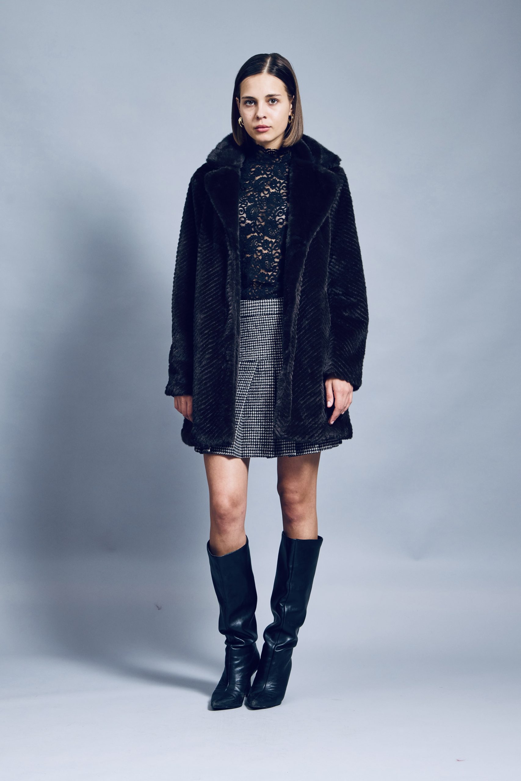 Francesca outerwear feels so soft and luxurious, you’re guaranteed to be reaching for it on rotation all season long. This style has been made from plush faux fur . The minimal design is enhanced by a classic storm flap neckline , while the smooth satin lining ensures easy layering. Francesca coat offers the look of chic luxury while offering plenty of warmth. Discreet pockets come in handy for stowing essentials on the go. Lean into the relaxed mood by styling yours with just about anything. Slip it on over a turtleneck sweater or shirt dress.