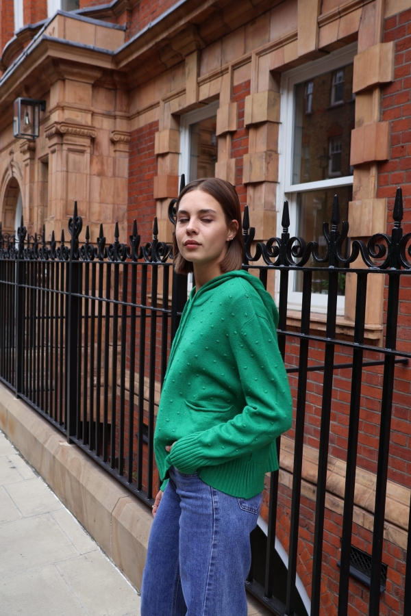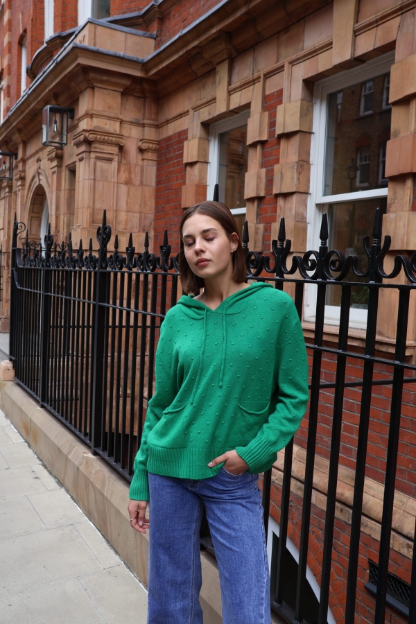Frankie hooded sweater offers refined comfort. It’s finely knitted with touches of viscose for a really lightweight and breathable handle. The striking hue will instantly freshen up your complexion and complements everything from neutral tones to dark denim. Designed in a classic hooded shape,  in a relaxed fit enhanced by dropped shoulders . Wear it solo or underpin it with a collared shirt or simple tee. We have the coordinating pants in our edit, too.