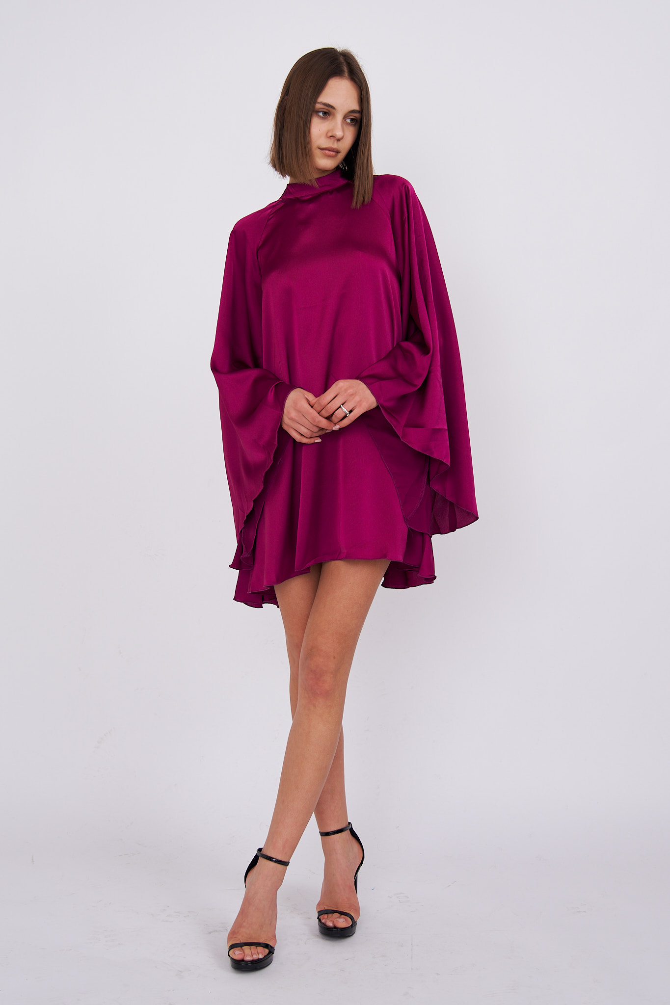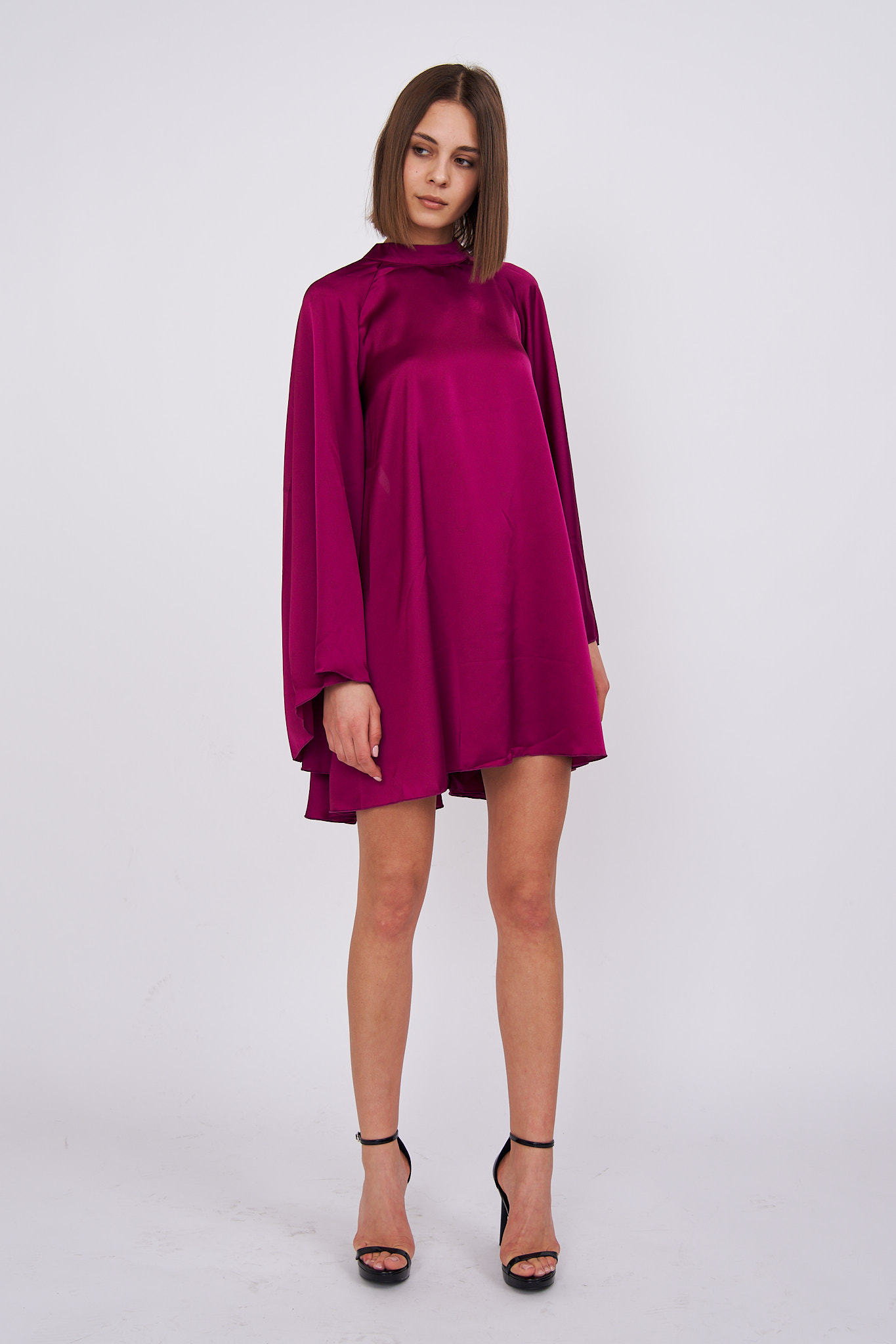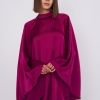 Ylondon dresses are always so striking, even when they’re simply designed. This one is cut from fluid lustrous satin in a jewel-toned colour that almost glistens. It’s detailed with cutout open back that’s artfully ruched along hips which creates a beautiful draped effect. Gala dress is cut for a loose fit and has a voluminous  flared sleeves that calls for a slightly structured equally vibrant clutch . The jewel hue will look even richer with gold jewellery .
