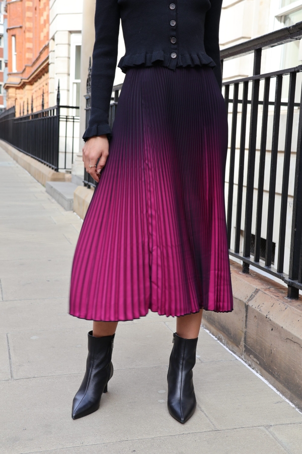 Gena skirt is made with intricate sunray pleats that create beautiful texture and movement. Cut from lightweight shell, it has an elasticated high-rise waist and classic A-line shape. It has rows of precise pleats that move beautifully. Style it with a sweater or cropped top.