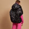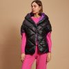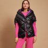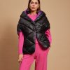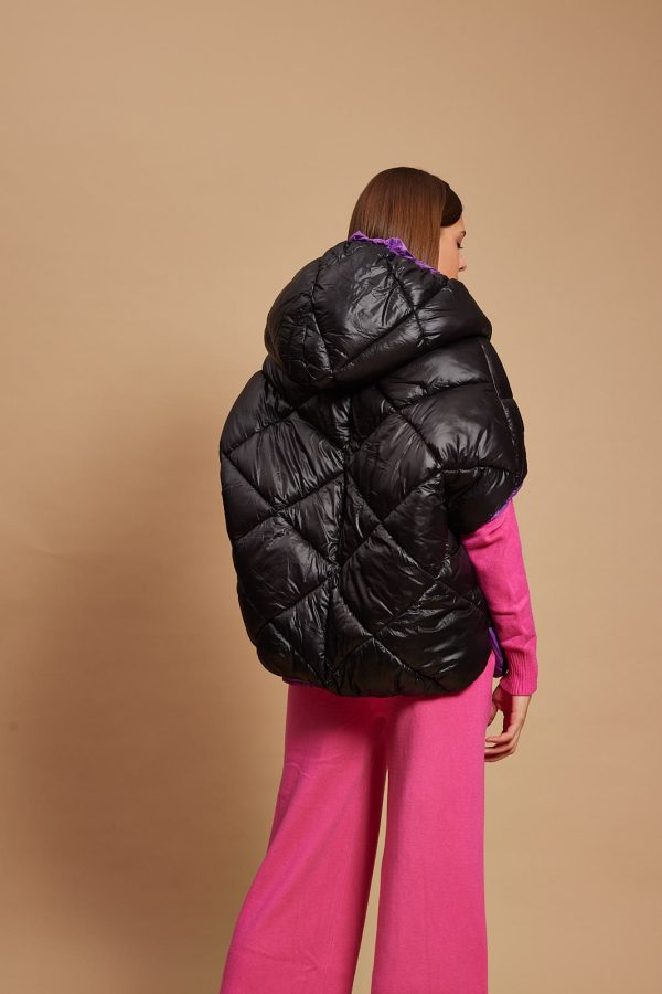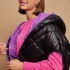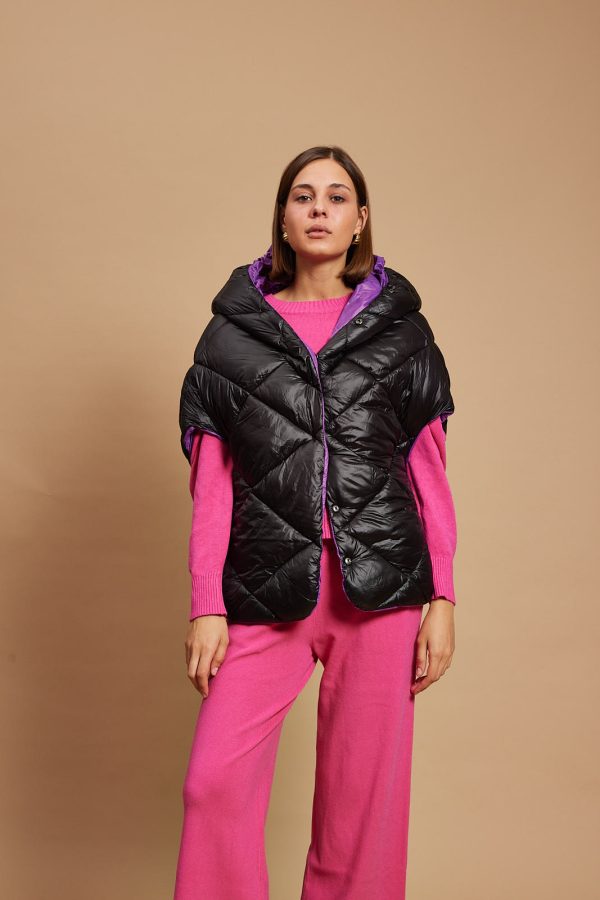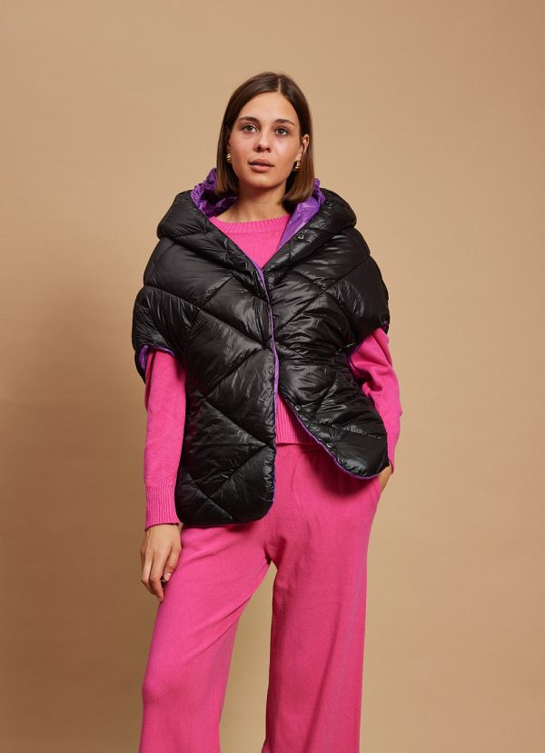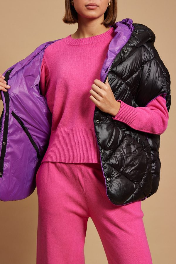 Georgia quilted gilet is reversible, so you can wear it whichever way best matches your outfit. It is cut from lightweight shell with a weather-resistant glossy black and purple finish and padded for warmth. The roomy hood can be drawn in for added protection against the elements. Wear yours during transitional weather, layering it with slim sweaters or overcoats.
