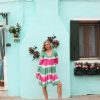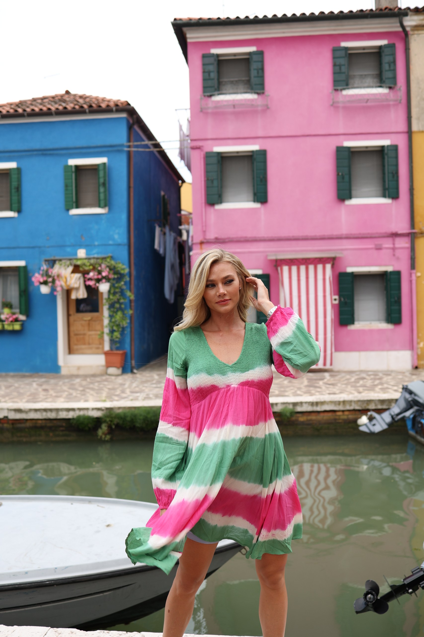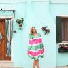 Georgia midi dress is made from viscose that flows as you move and is shirred under the bust to define your waist. It has a soft, lightweight handle. It’s designed with and low scooped neckline and shirred panels that define your waist. Dress Georgia is perfect for tropical getaways or summer parties. Style yours with easy slides or heeled mules.