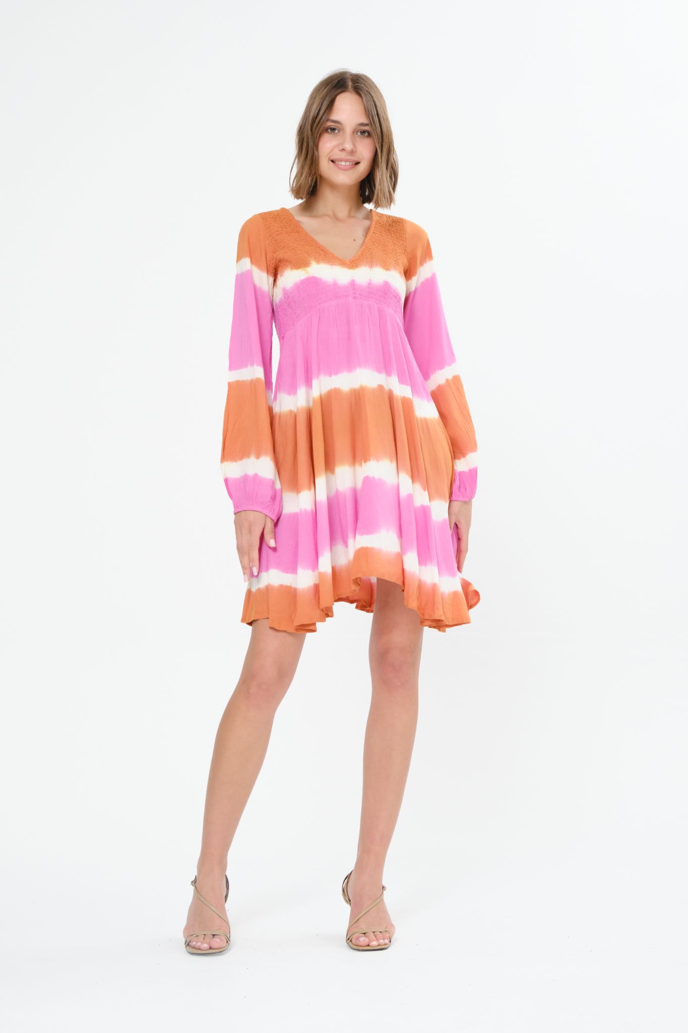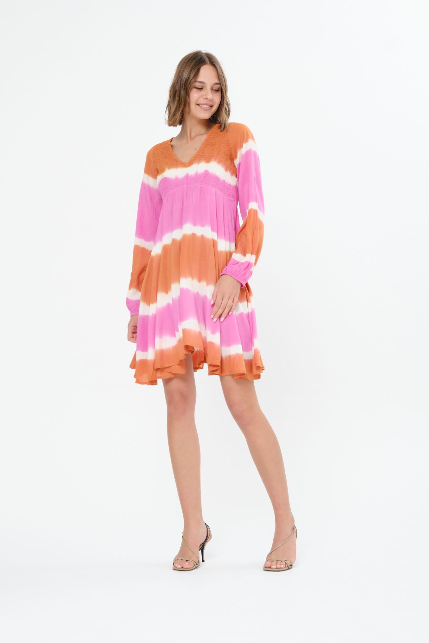 Georgia midi dress is made from viscose that flows as you move and is shirred under the bust to define your waist. It has a soft, lightweight handle. It’s designed with and low scooped neckline and shirred panels that define your waist. Dress Georgia is perfect for tropical getaways or summer parties. Style yours with easy slides or heeled mules.