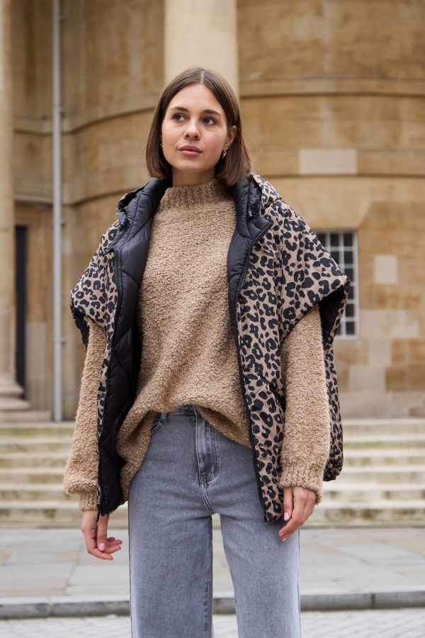Georgina quilted gilet is reversible, so you can wear it whichever way best matches your outfit. It is cut from lightweight shell with a weather-resistant glossy black and leopard finish and padded for warmth. The roomy hood can be drawn in for added protection against the elements. Wear yours during transitional weather, layering it with slim sweaters or overcoats.