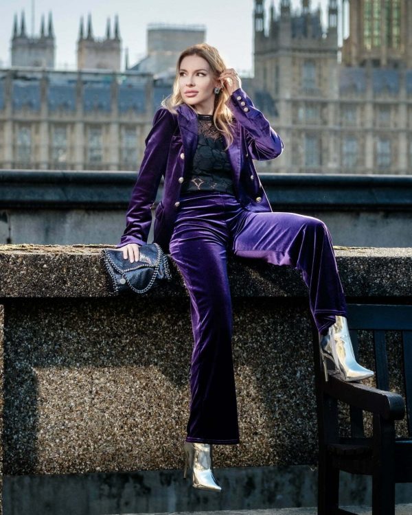 Cut from viscose -polyester velvet blended with stretch , The Gigi pants are timelessly luxurious and they’ll look most powerful with heels and the matching blazer. They are high-rise, designed to sit comfortably on the hips and are create a beautiful drape through the straight legs. Wear yours with a corset-inspired top and heels.