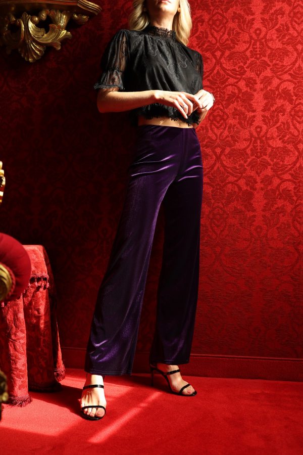 Gigi – Stretch Velvet Wide-Leg Pants In Purple