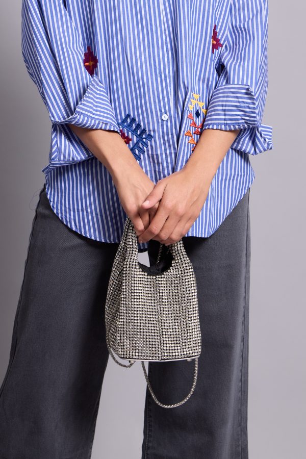 Gina bag it’s refined, elegant and instantly recognizable. It is stylish addition to your wardrobe. It is masterfully assembled from embellished crystals  and has a softly rounded shape. The top handle is artfully knotted at one side.