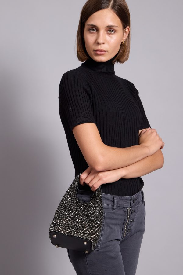 Gina bag it’s refined, elegant and instantly recognizable. It is stylish addition to your wardrobe. It is masterfully assembled from embellished crystals  and has a softly rounded shape. The top handle is artfully knotted at one side.