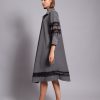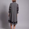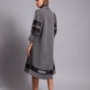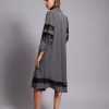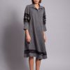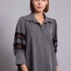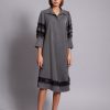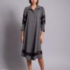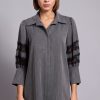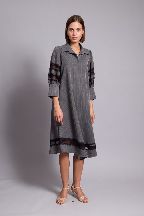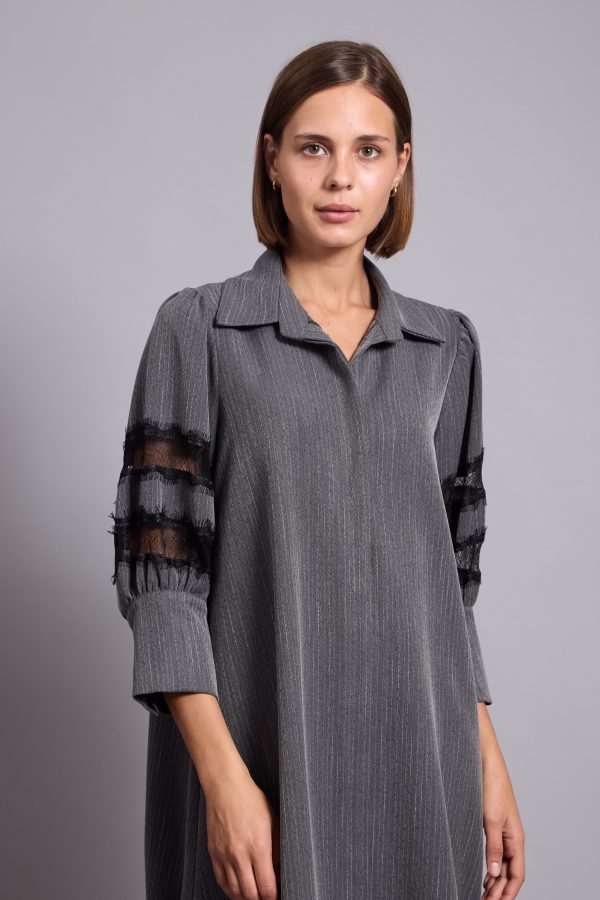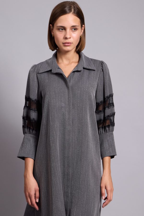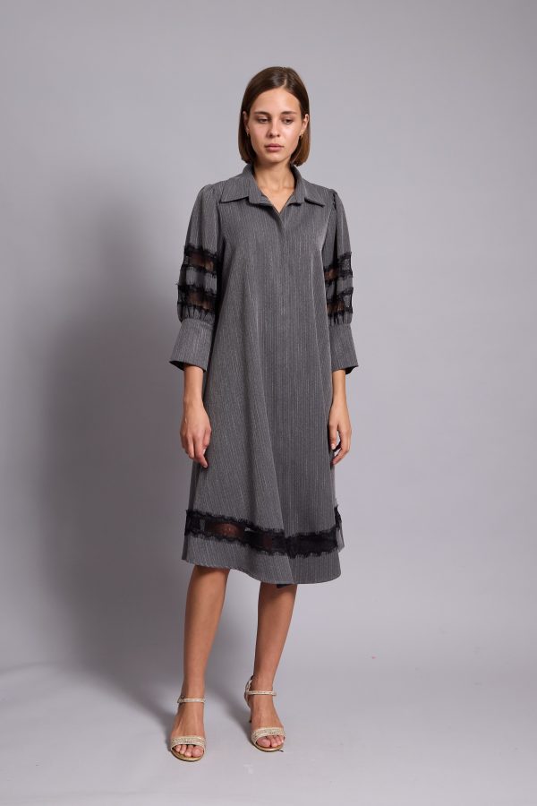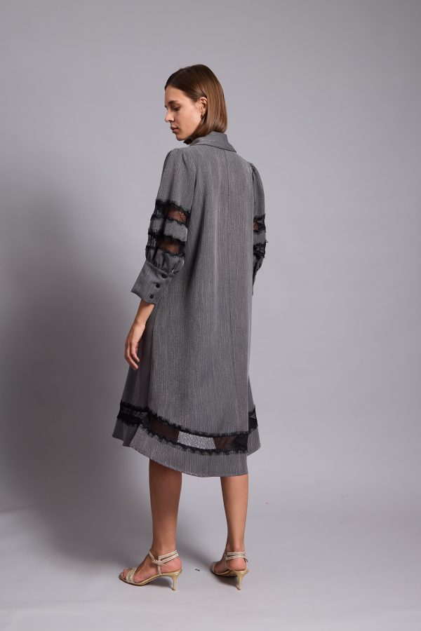 Gloria- Pinstripe Lace Embellished Midi Shirt Dress In grey