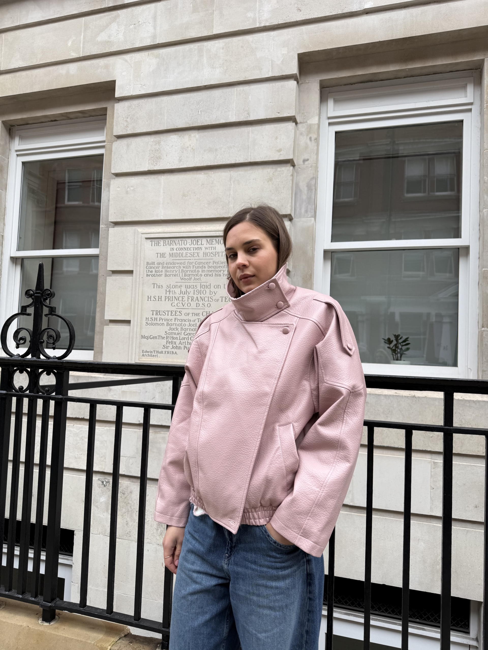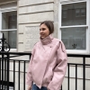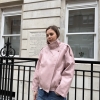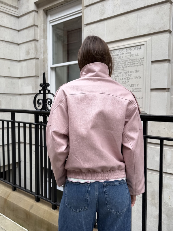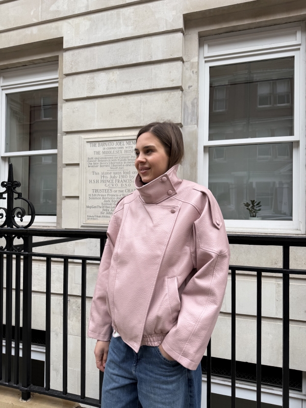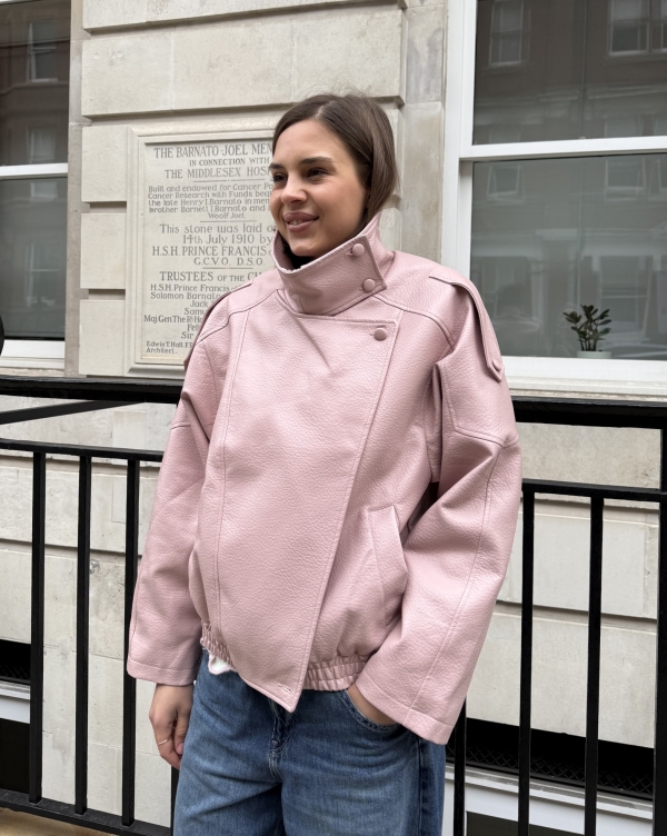 Harper High Collar Faux Leather Jacket In Pink