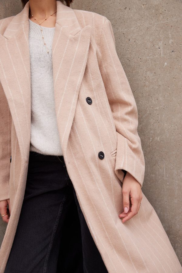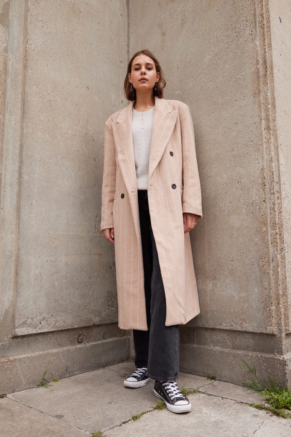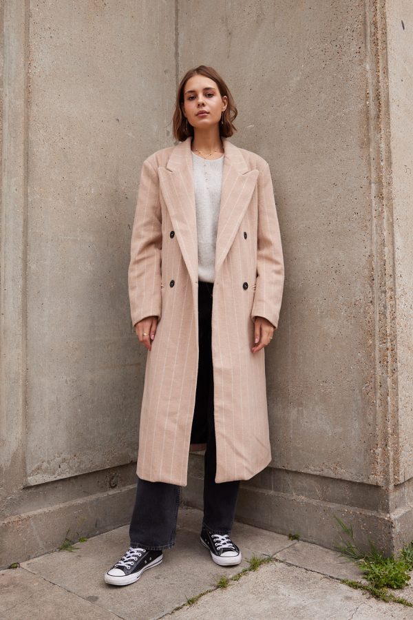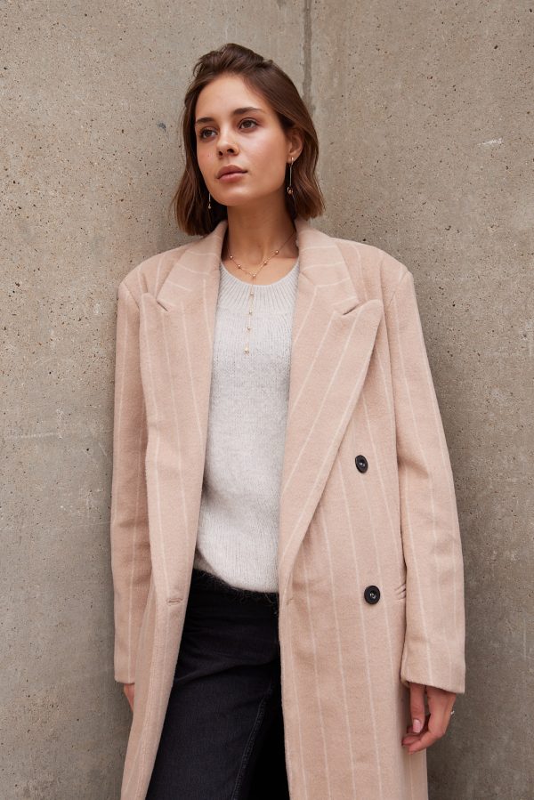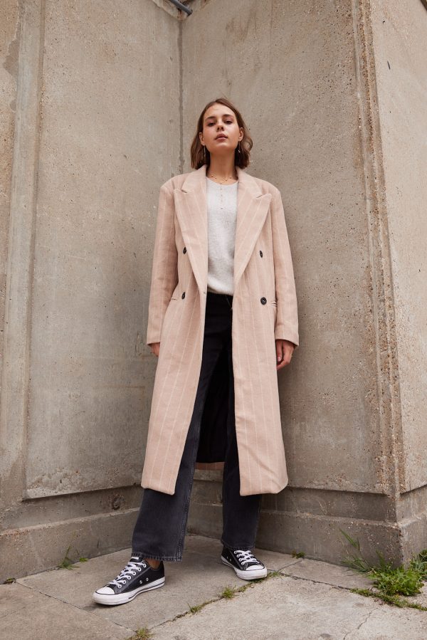 Tailored from wool, this coat has an oversized, double-breasted design with peak lapels and flap pockets. The satin lining ensures effortless layering. Harper coat is made from a tactile wool-blend patterned with stripes in cream. It’s designed in an oversized, longline silhouette enhanced by dropped shoulders. Harper coat ensures warmth and Parisian-level chic when you leave the house. Slip yours on over a chunky sweater.