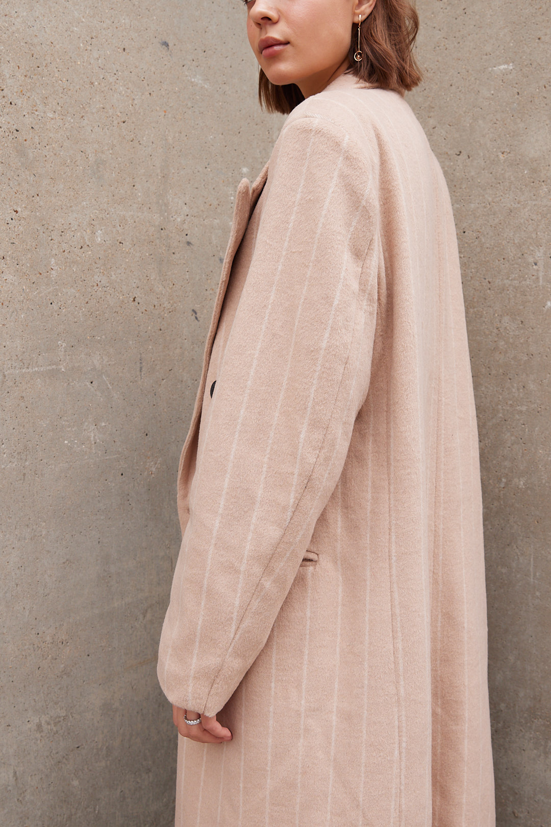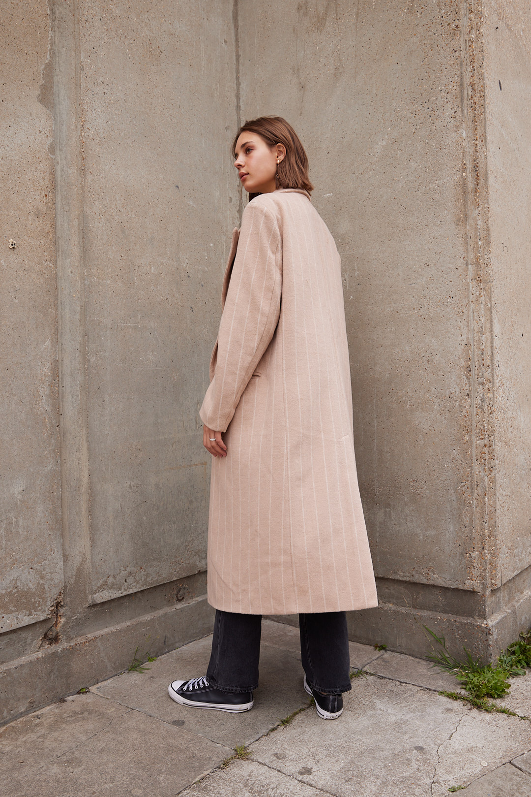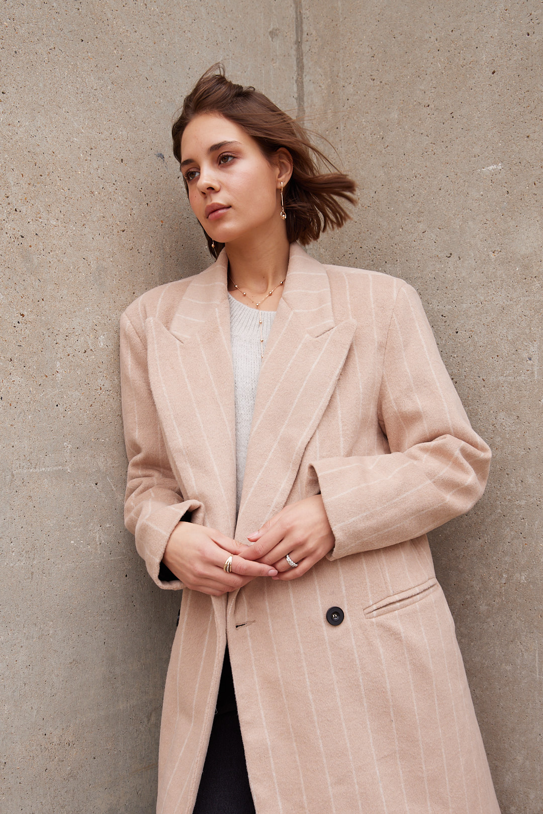 Tailored from wool, this coat has an oversized, double-breasted design with peak lapels and flap pockets. The satin lining ensures effortless layering. Harper coat is made from a tactile wool-blend patterned with stripes in cream. It’s designed in an oversized, longline silhouette enhanced by dropped shoulders. Harper coat ensures warmth and Parisian-level chic when you leave the house. Slip yours on over a chunky sweater.