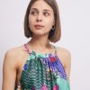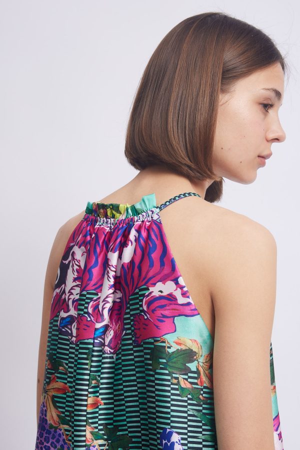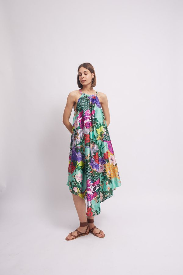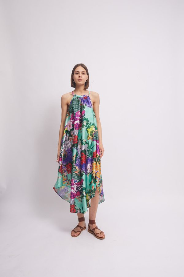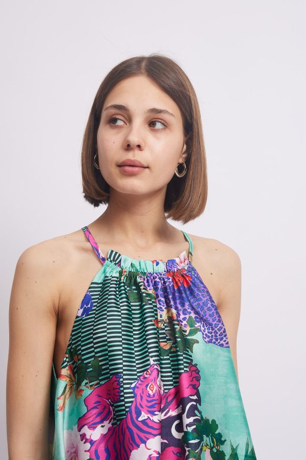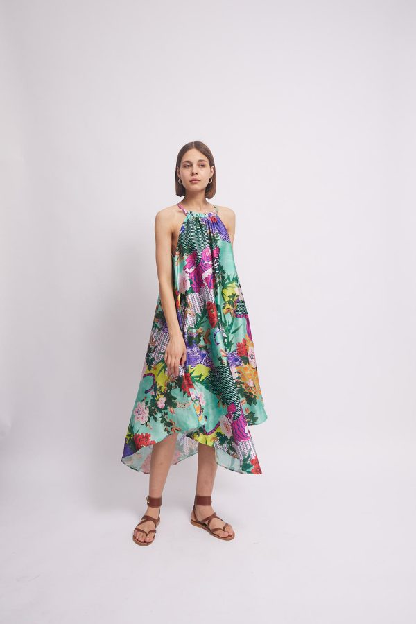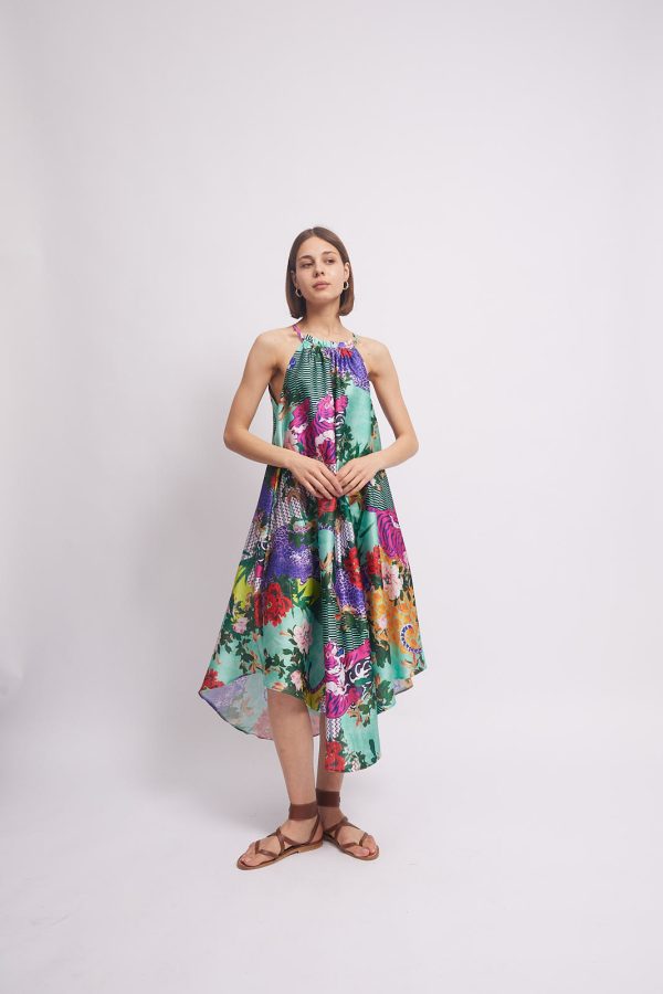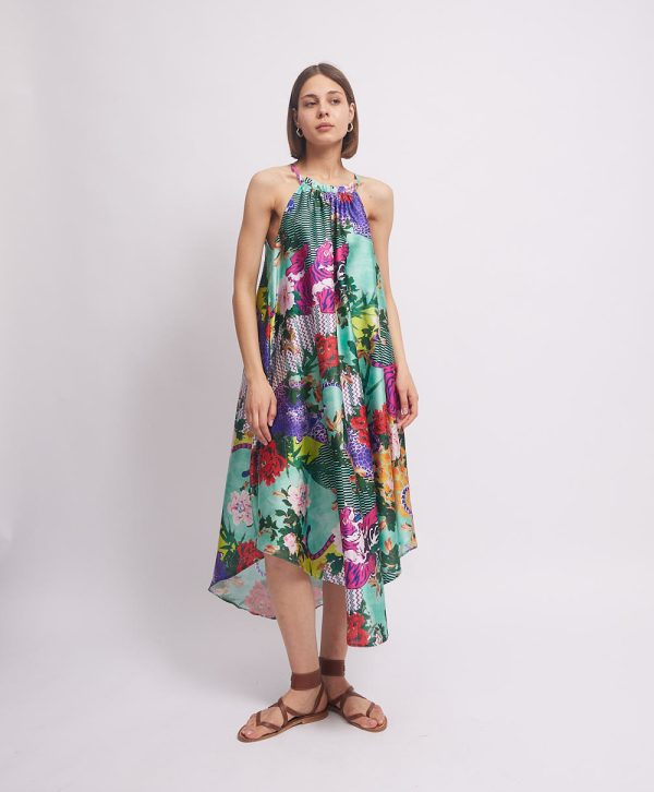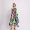 The best thing about a beautiful halterneck summer dress is that you’ll never fall out of love with it. This midi dress is printed with a garden’s worth of colourful flowers in full bloom. Cut from viscose polyester, it has a flowy, gathered skirt and slim ties at the halterneck. Accessorize with gold jewellery and statement heels.