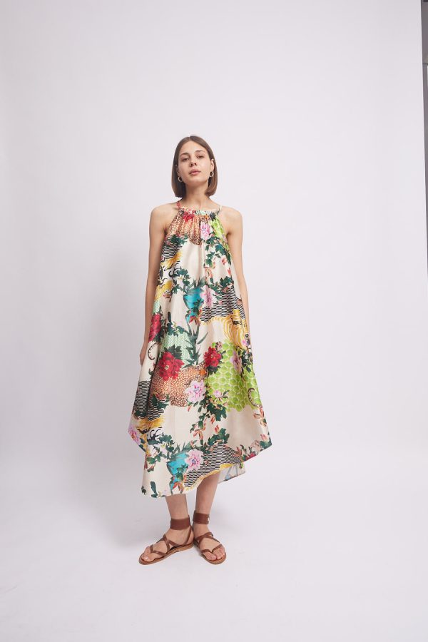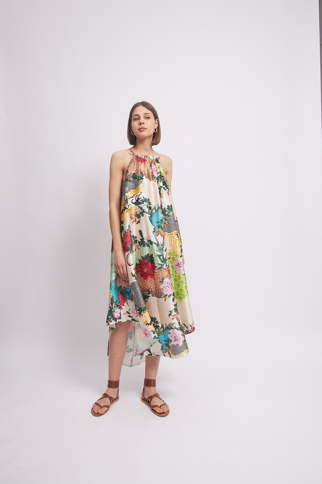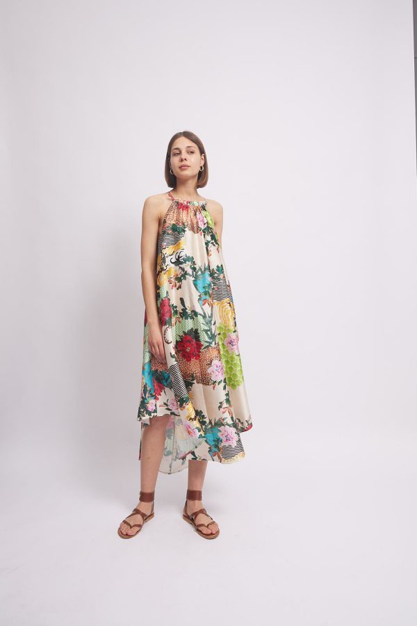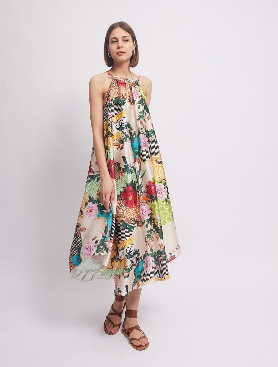 The best thing about a beautiful halterneck summer dress is that you’ll never fall out of love with it. This midi dress is printed with a garden’s worth of colourful flowers in full bloom. Cut from viscose polyester, it has a flowy, gathered skirt and slim ties at the halterneck. Accessorize with gold jewellery and statement heels.