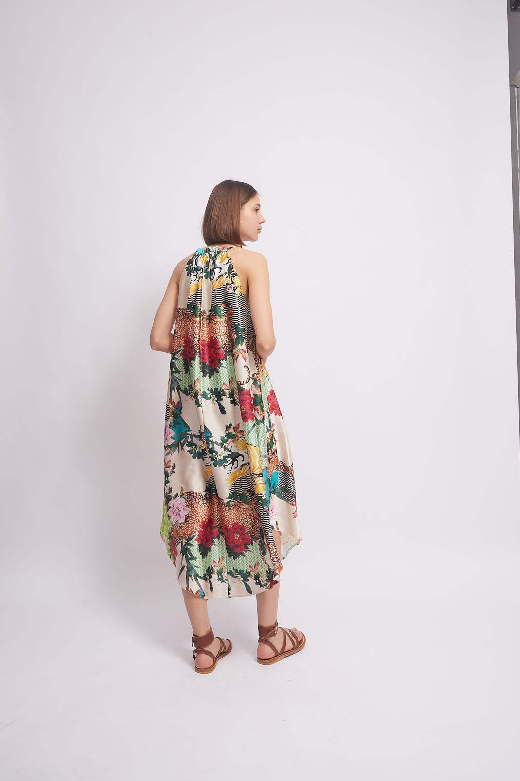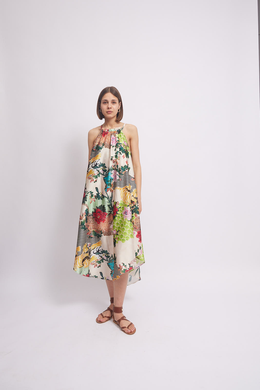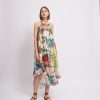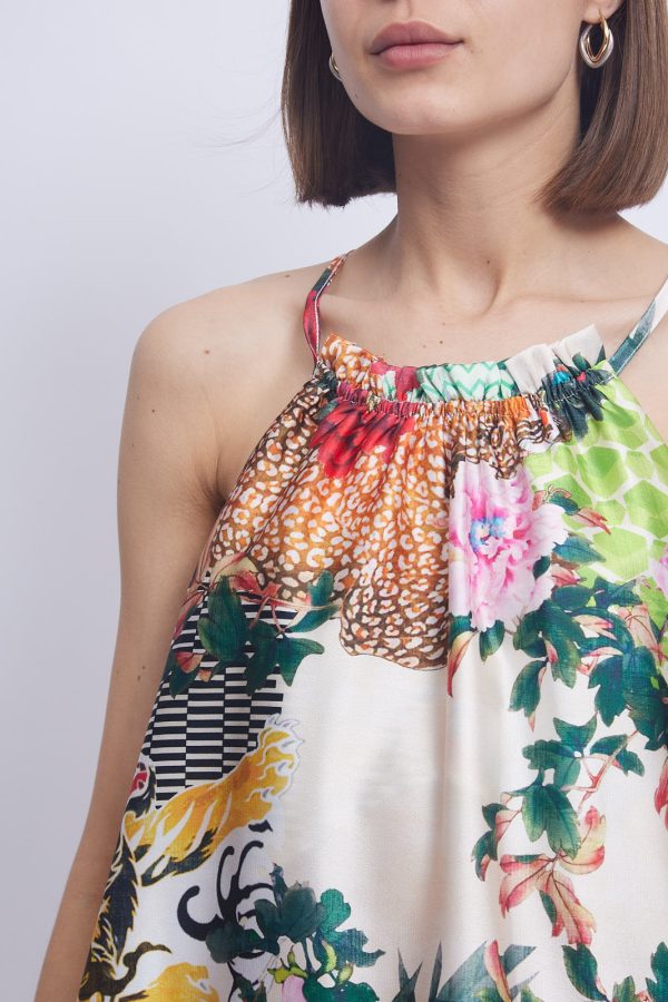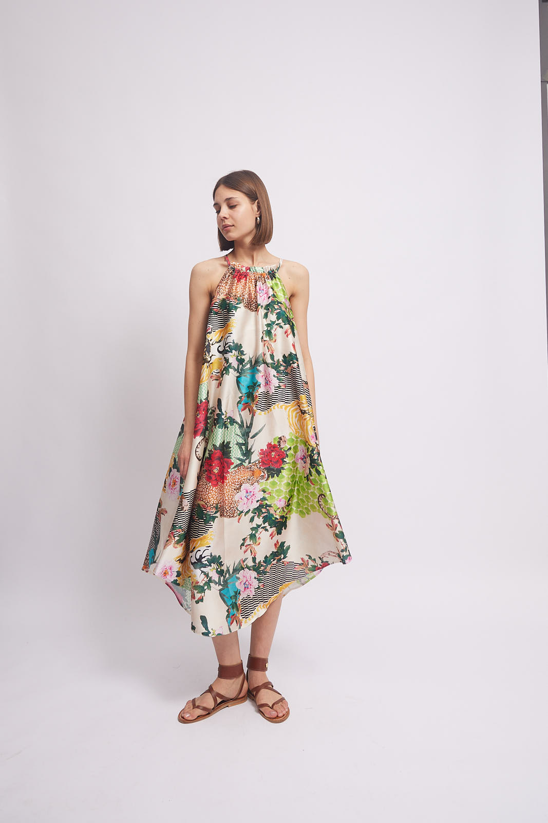 The best thing about a beautiful halterneck summer dress is that you’ll never fall out of love with it. This midi dress is printed with a garden’s worth of colourful flowers in full bloom. Cut from viscose polyester, it has a flowy, gathered skirt and slim ties at the halterneck. Accessorize with gold jewellery and statement heels.