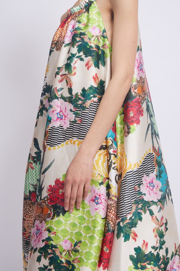 Holly -Gathered floral Satin halterneck midi dress in cream