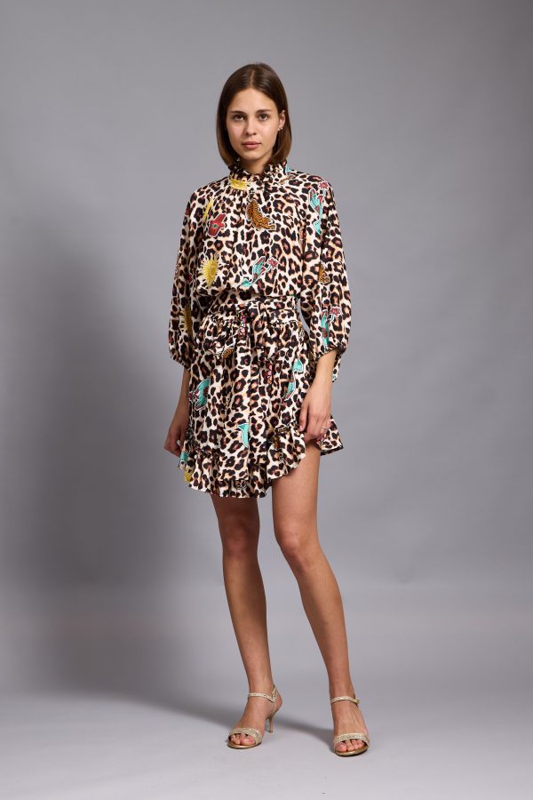 The best thing about a beautiful printed dress is that you’ll never fall out of love with it. This dress is such a pretty choice for evening events. It has  bishop sleeves framing the turtle neck neckline and a empire waist and a floaty  skirt printed with vibrant colours. Designed for a figure-skimming fit, it’s underpinned with tonal crepe for coverage and has a slim belt to cinch the shape. Accessorize with gold jewellery and statement heels.