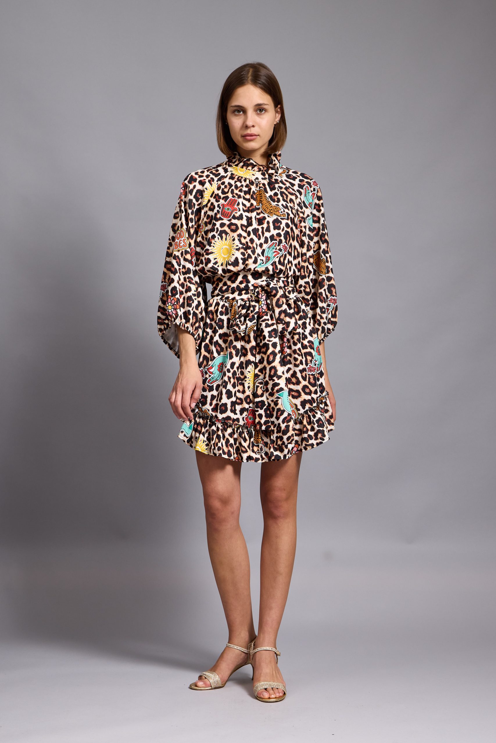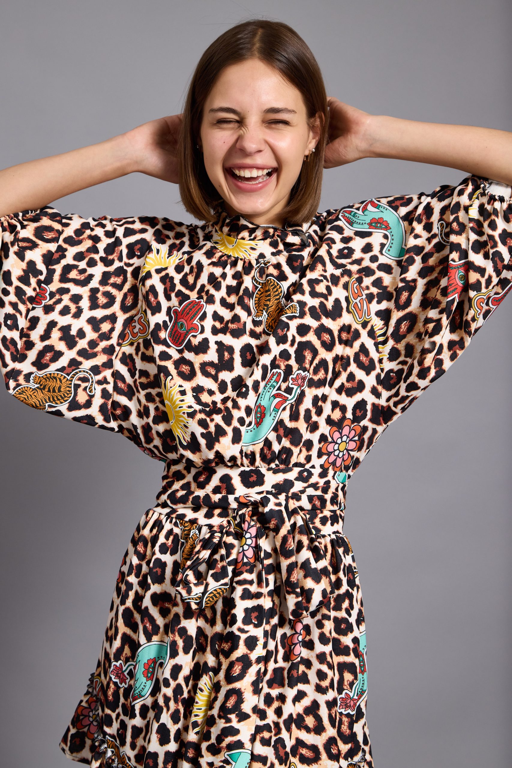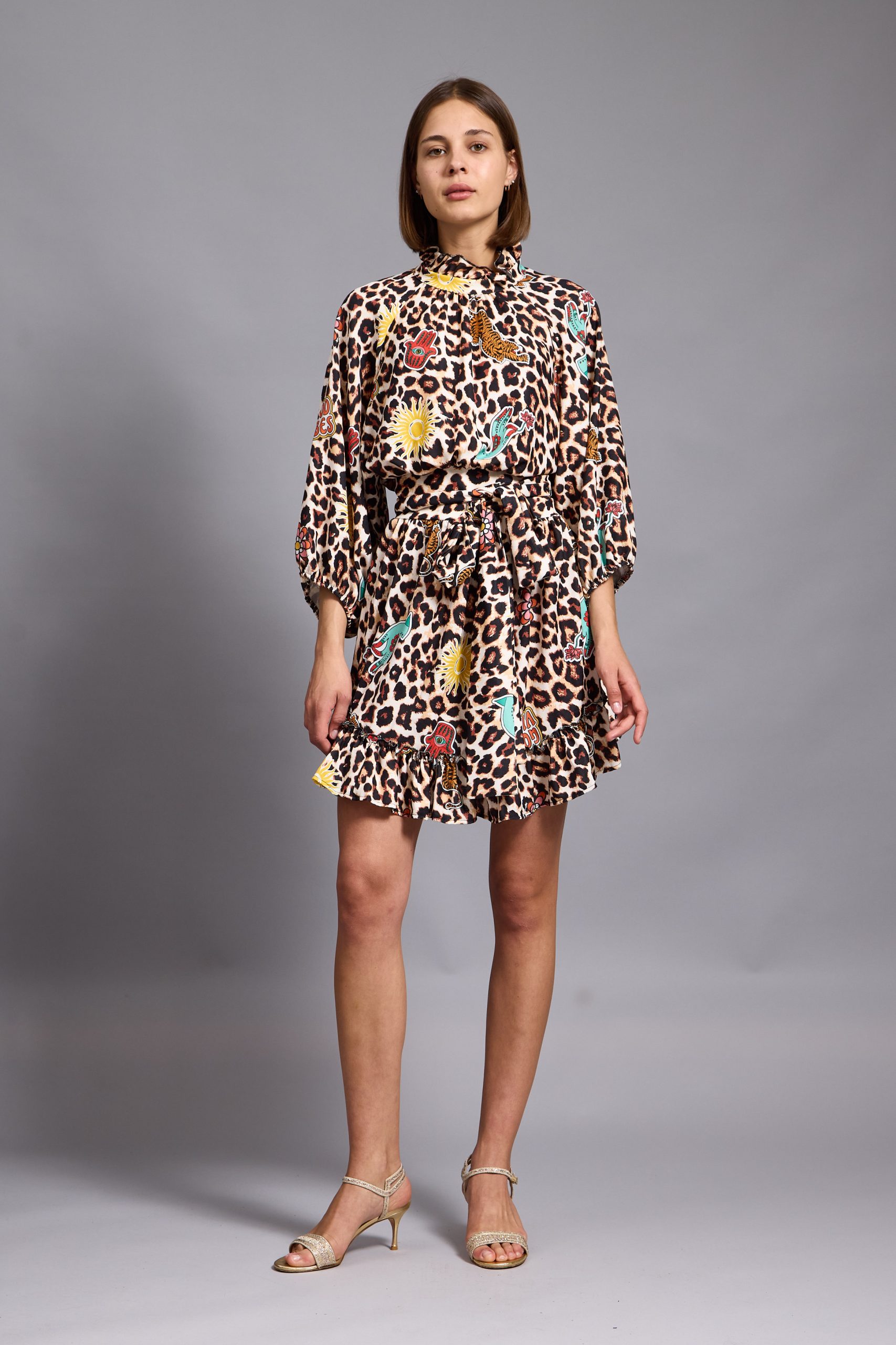 The best thing about a beautiful printed dress is that you’ll never fall out of love with it. This dress is such a pretty choice for evening events. It has  bishop sleeves framing the turtle neck neckline and a empire waist and a floaty  skirt printed with vibrant colours. Designed for a figure-skimming fit, it’s underpinned with tonal crepe for coverage and has a slim belt to cinch the shape. Accessorize with gold jewellery and statement heels.