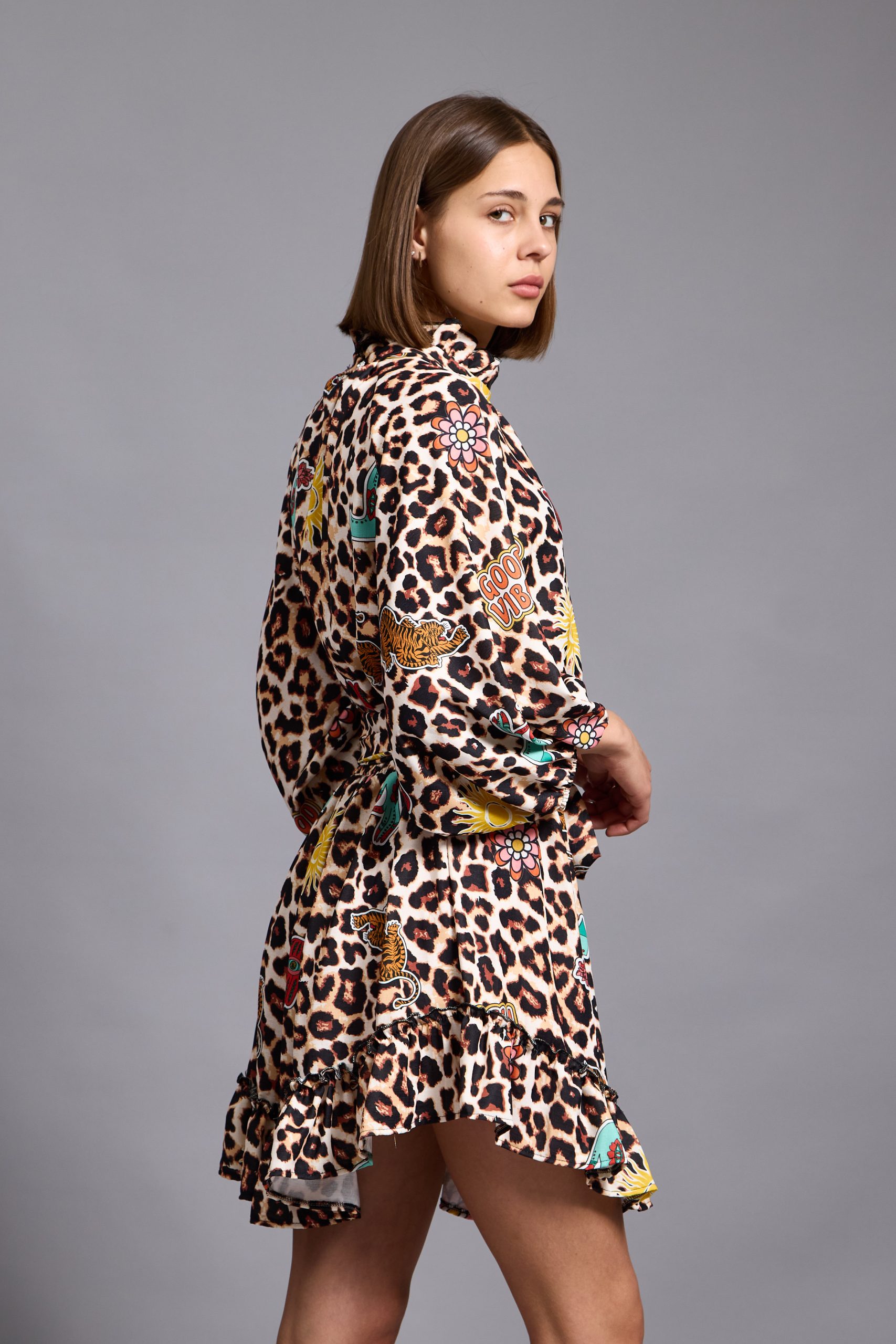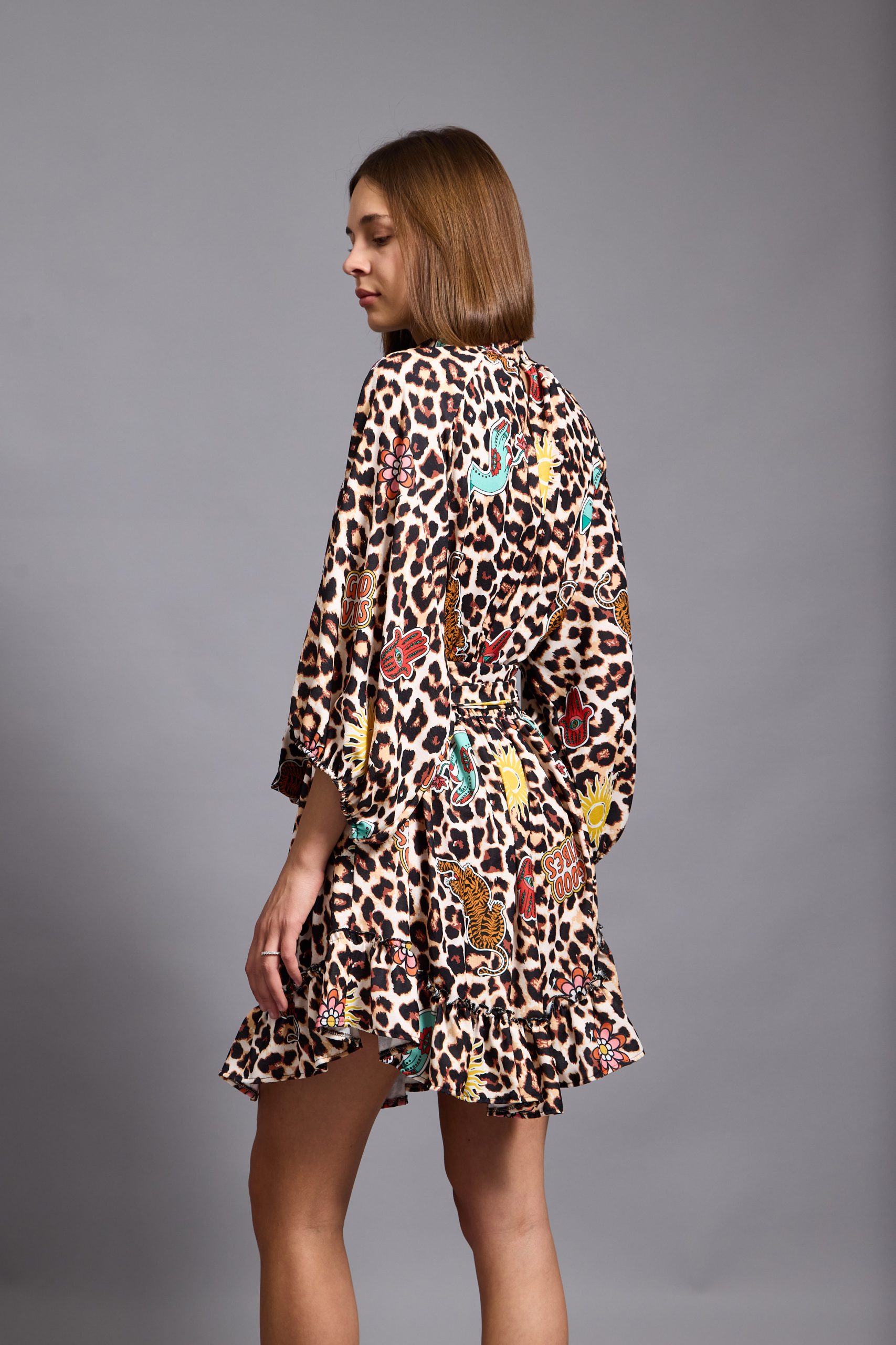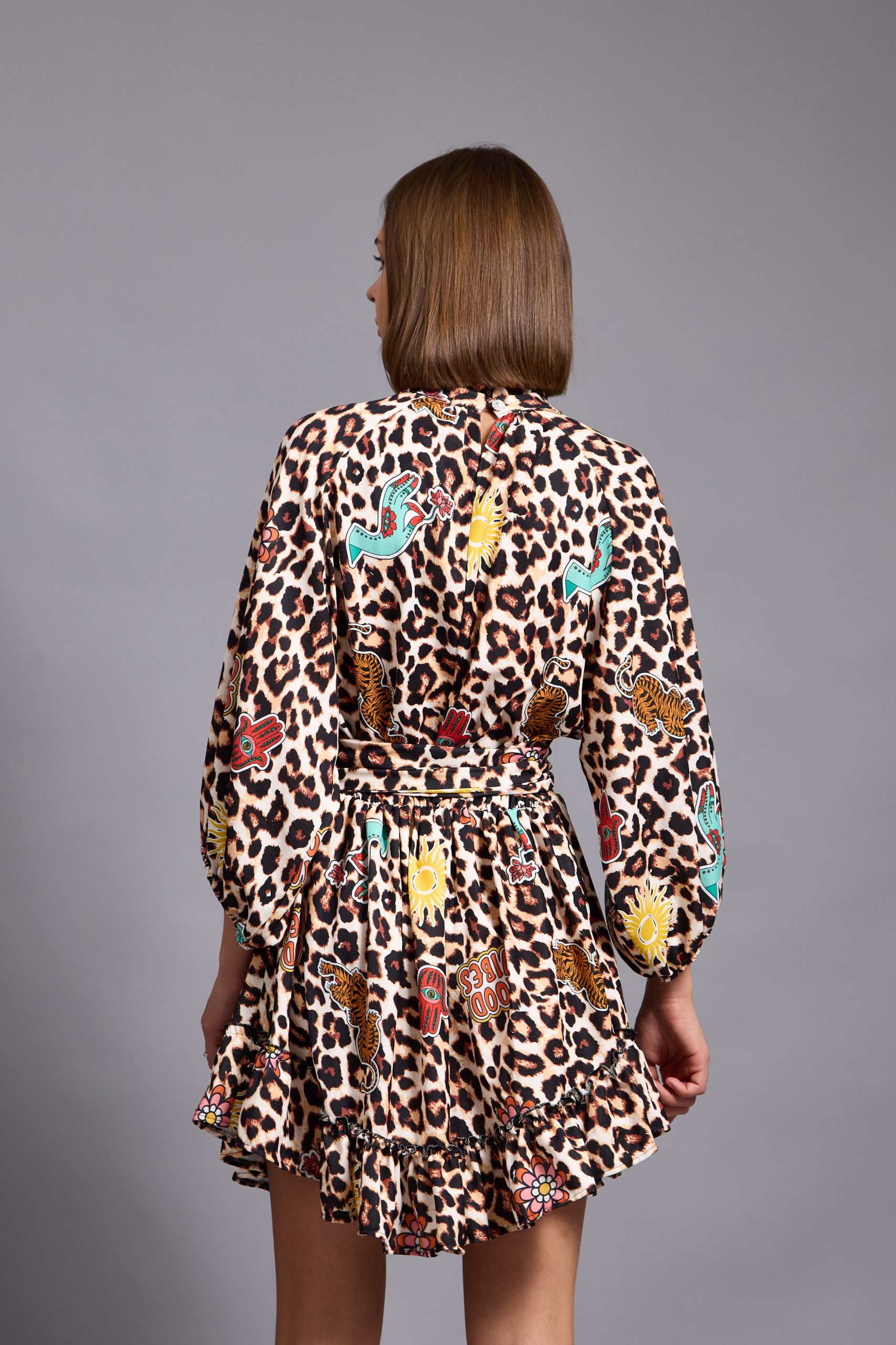 The best thing about a beautiful printed dress is that you’ll never fall out of love with it. This dress is such a pretty choice for evening events. It has  bishop sleeves framing the turtle neck neckline and a empire waist and a floaty  skirt printed with vibrant colours. Designed for a figure-skimming fit, it’s underpinned with tonal crepe for coverage and has a slim belt to cinch the shape. Accessorize with gold jewellery and statement heels.