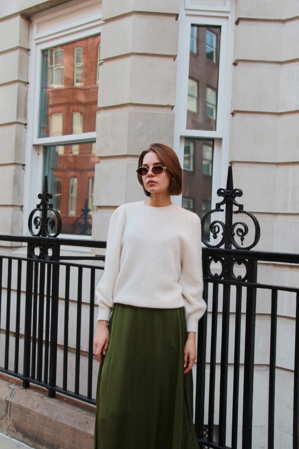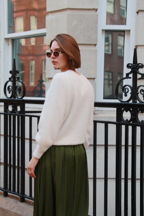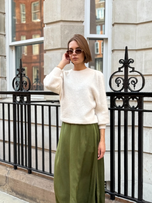 Isabelle knit makes the perfect building blocks for your casual wardrobe. This  sweater is finely knitted with touches of  alpaca  for a really lightweight and breathable handle. The striking  hue will instantly freshen up your complexion and complements everything from neutral tones to dark denim. Designed in a classic crew-neck shape,  in a relaxed fit enhanced by lightly puffed  shoulders . Switch between styling it with boyfriend jeans, slouchy tailoring and tulle skirts. Style it solo or layered over a crisp shirt.