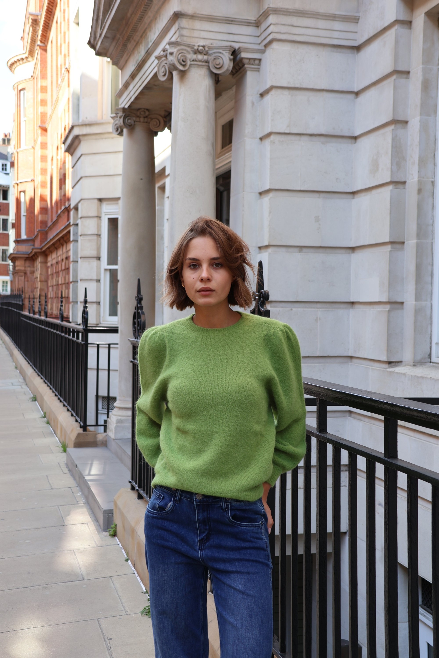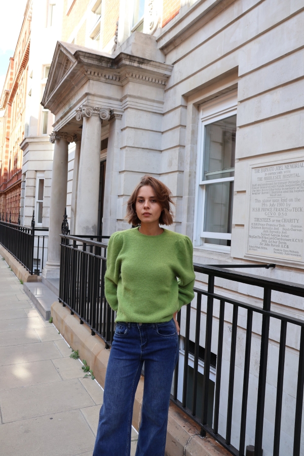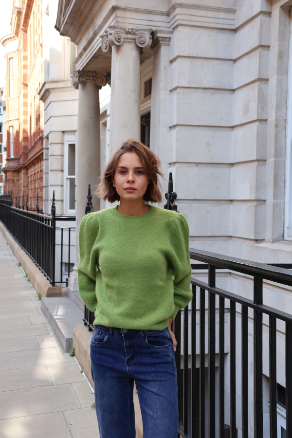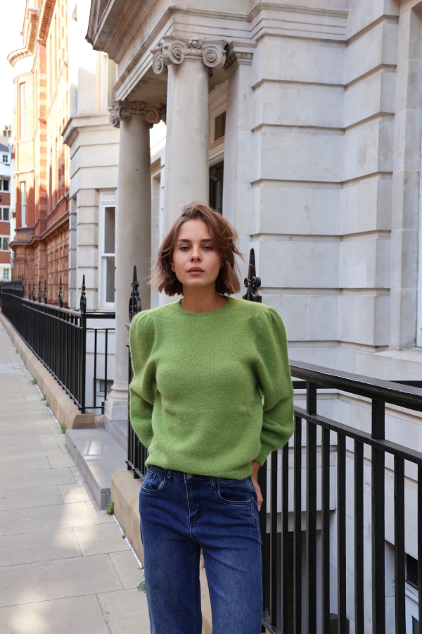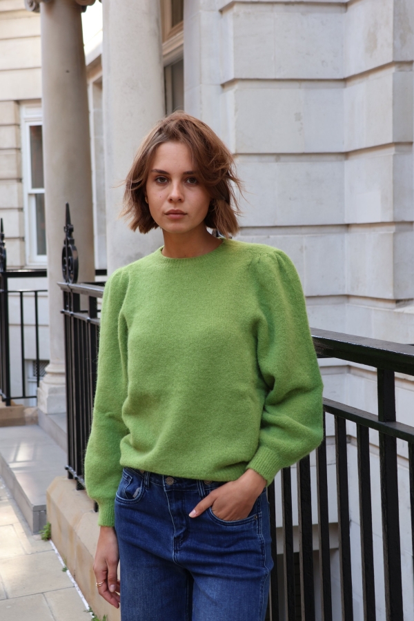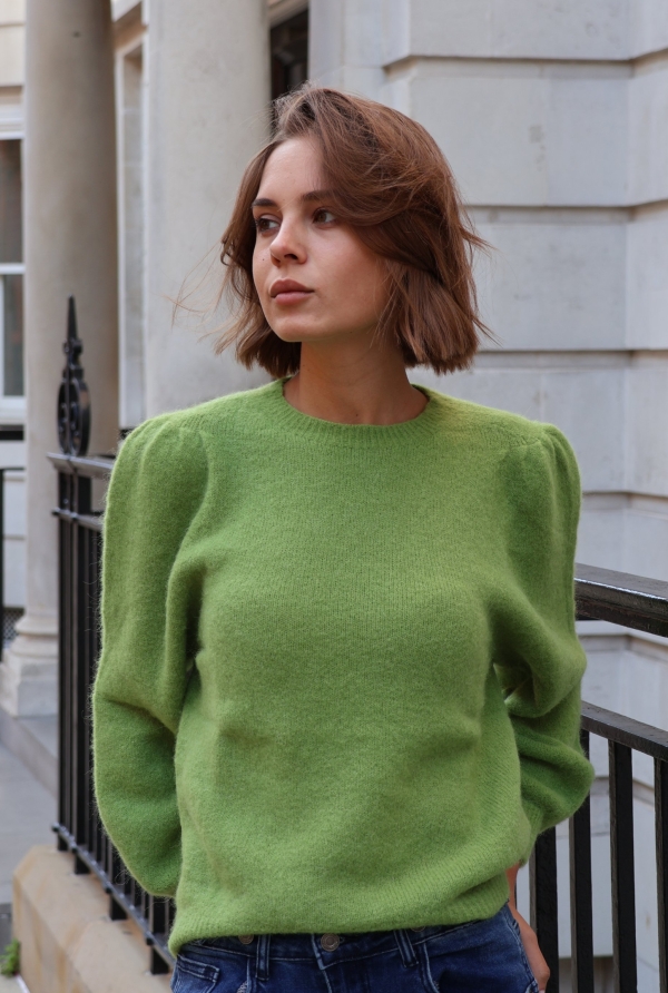 Isabelle knit makes the perfect building blocks for your casual wardrobe. This  sweater is finely knitted with touches of  alpaca  for a really lightweight and breathable handle. The striking  hue will instantly freshen up your complexion and complements everything from neutral tones to dark denim. Designed in a classic crew-neck shape,  in a relaxed fit enhanced by lightly puffed  shoulders . Switch between styling it with boyfriend jeans, slouchy tailoring and tulle skirts. Style it solo or layered over a crisp shirt.