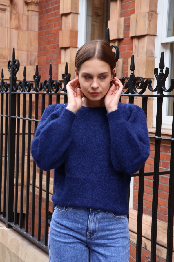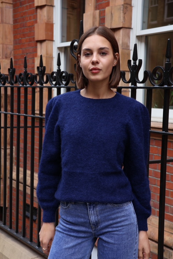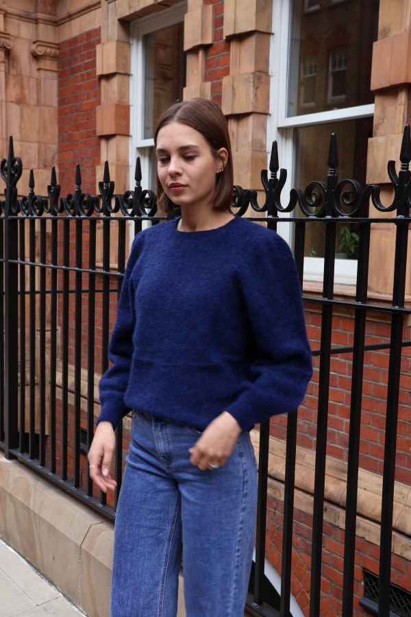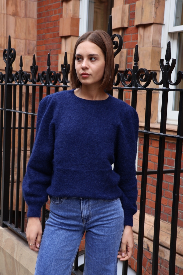Isabelle knit makes the perfect building blocks for your casual wardrobe. This  sweater is finely knitted with touches of  alpaca  for a really lightweight and breathable handle. The striking  hue will instantly freshen up your complexion and complements everything from neutral tones to dark denim. Designed in a classic crew-neck shape,  in a relaxed fit enhanced by lightly puffed  shoulders . Switch between styling it with boyfriend jeans, slouchy tailoring and tulle skirts. Style it solo or layered over a crisp shirt.