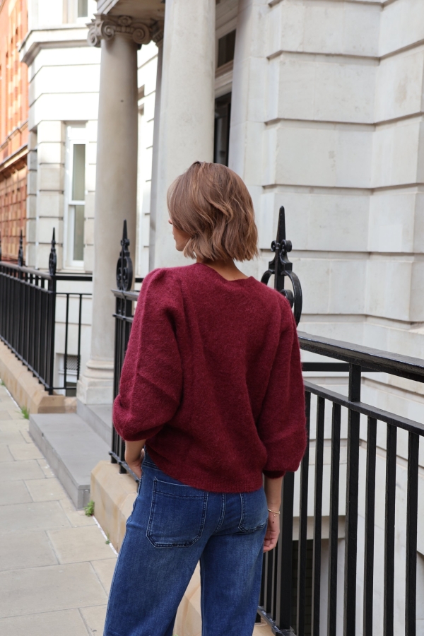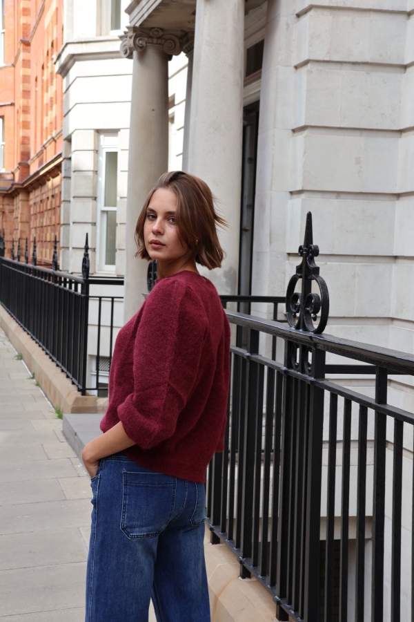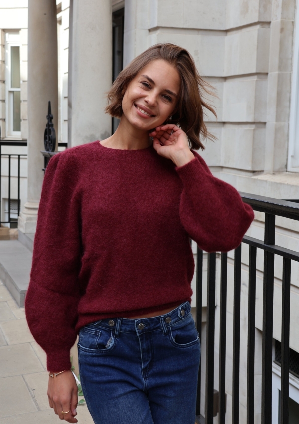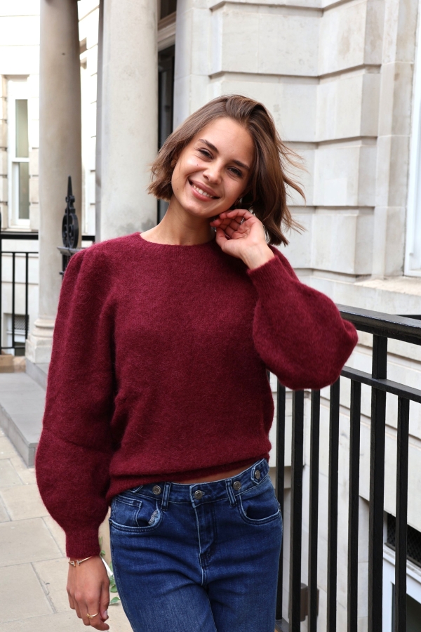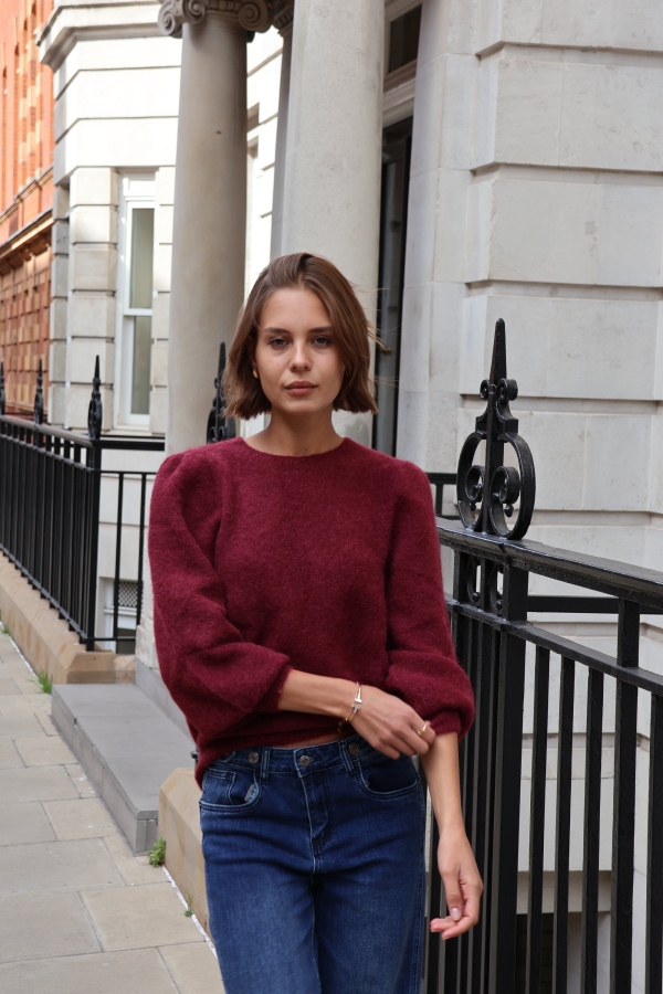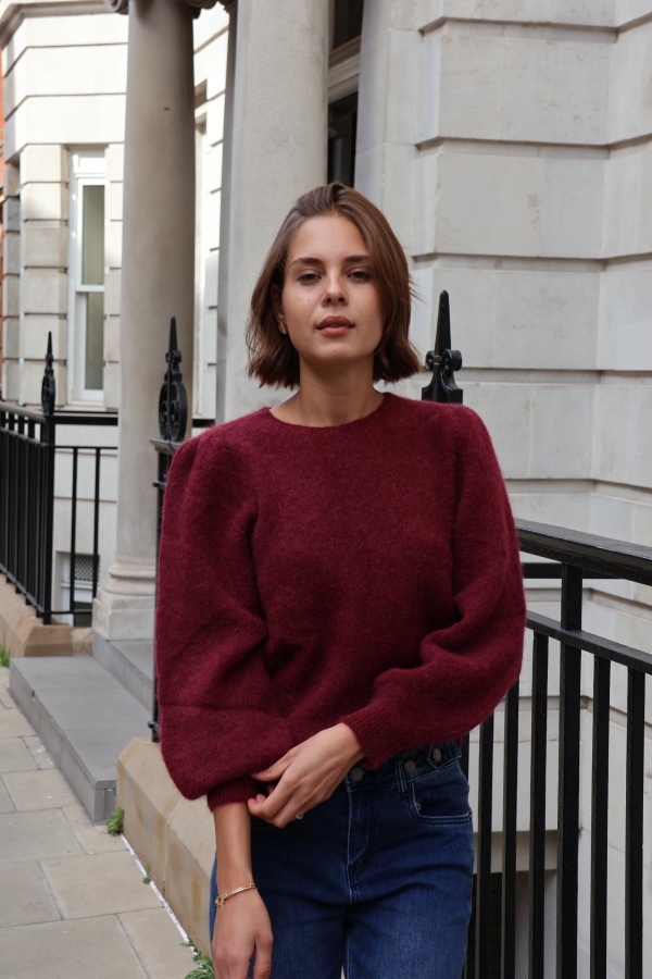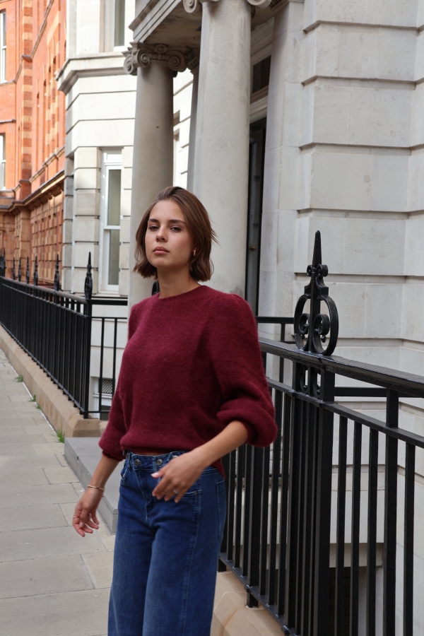Isabelle knit makes the perfect building blocks for your casual wardrobe. This  sweater is finely knitted with touches of  alpaca  for a really lightweight and breathable handle. The striking  hue will instantly freshen up your complexion and complements everything from neutral tones to dark denim. Designed in a classic crew-neck shape,  in a relaxed fit enhanced by lightly puffed  shoulders . Switch between styling it with boyfriend jeans, slouchy tailoring and tulle skirts. Style it solo or layered over a crisp shirt.