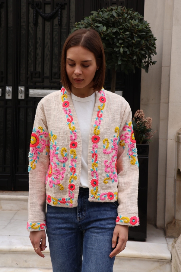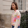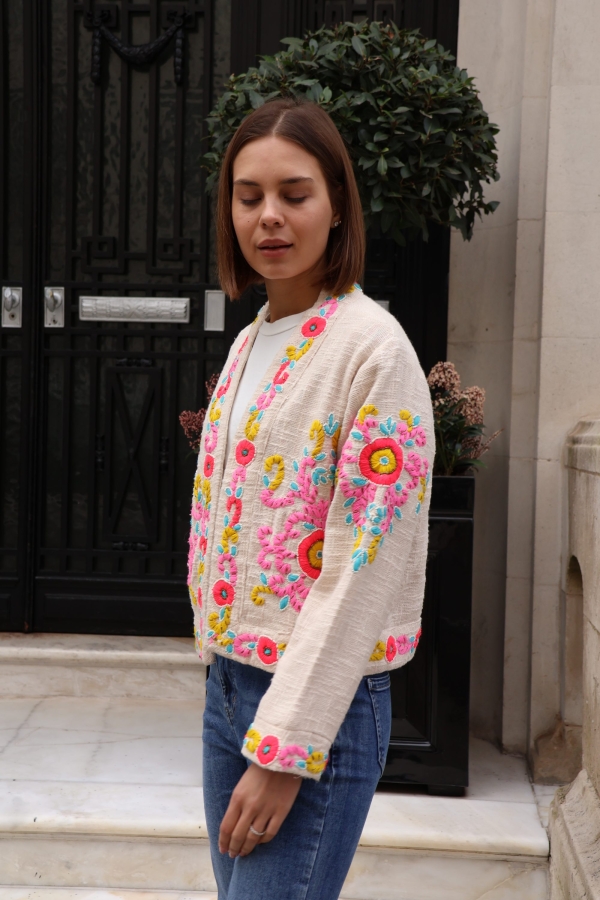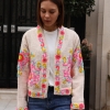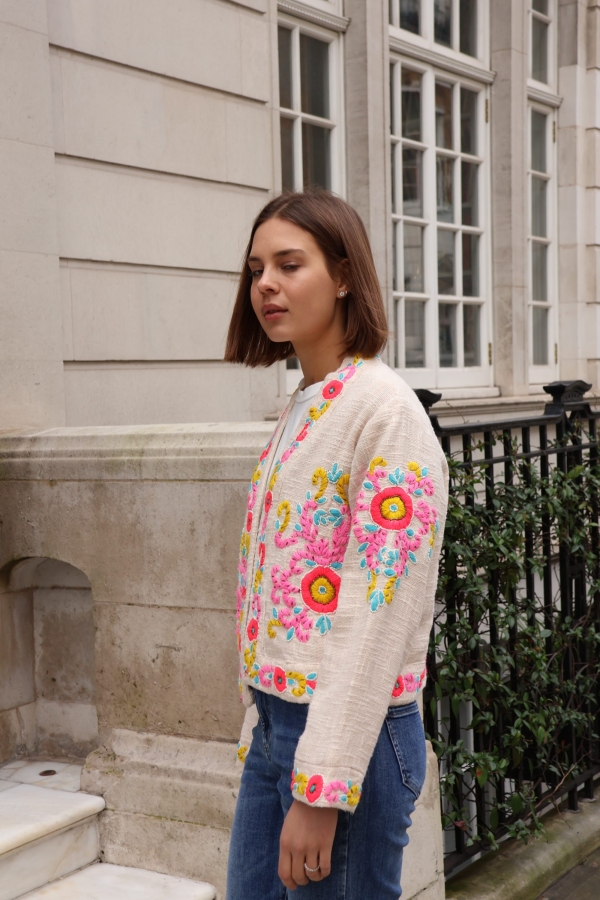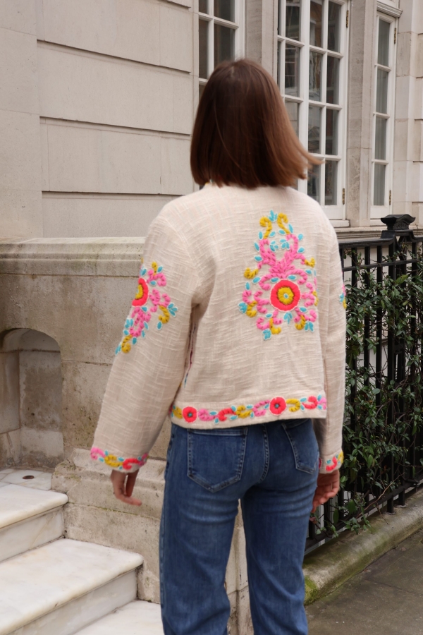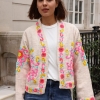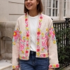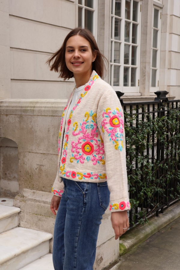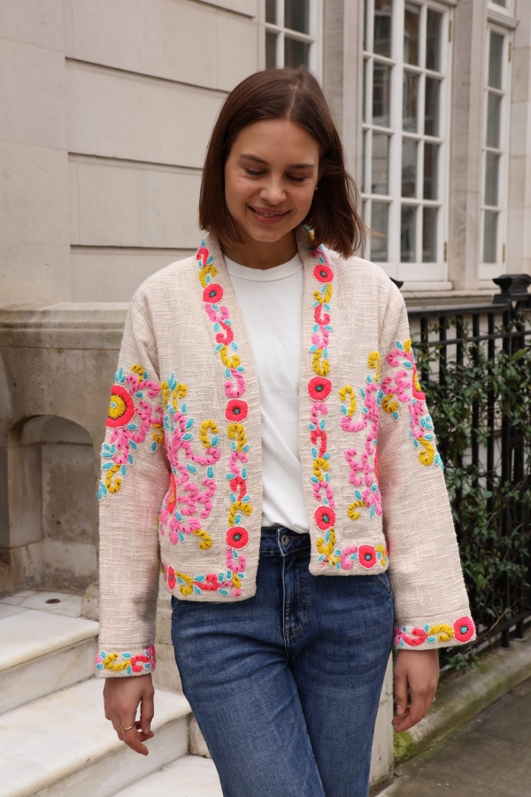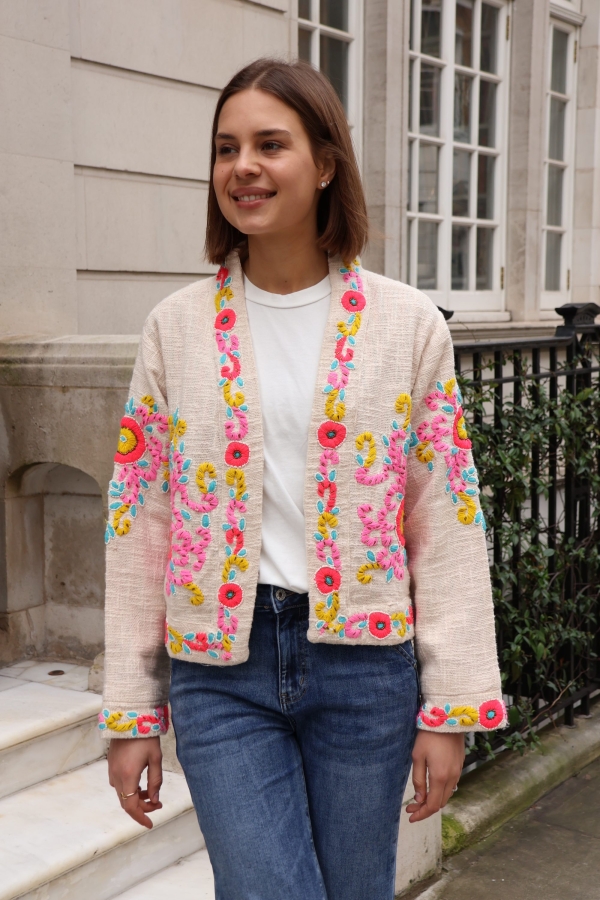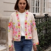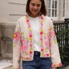 Isla – Beaded Cotton Open-Front Jacket Pink Floral