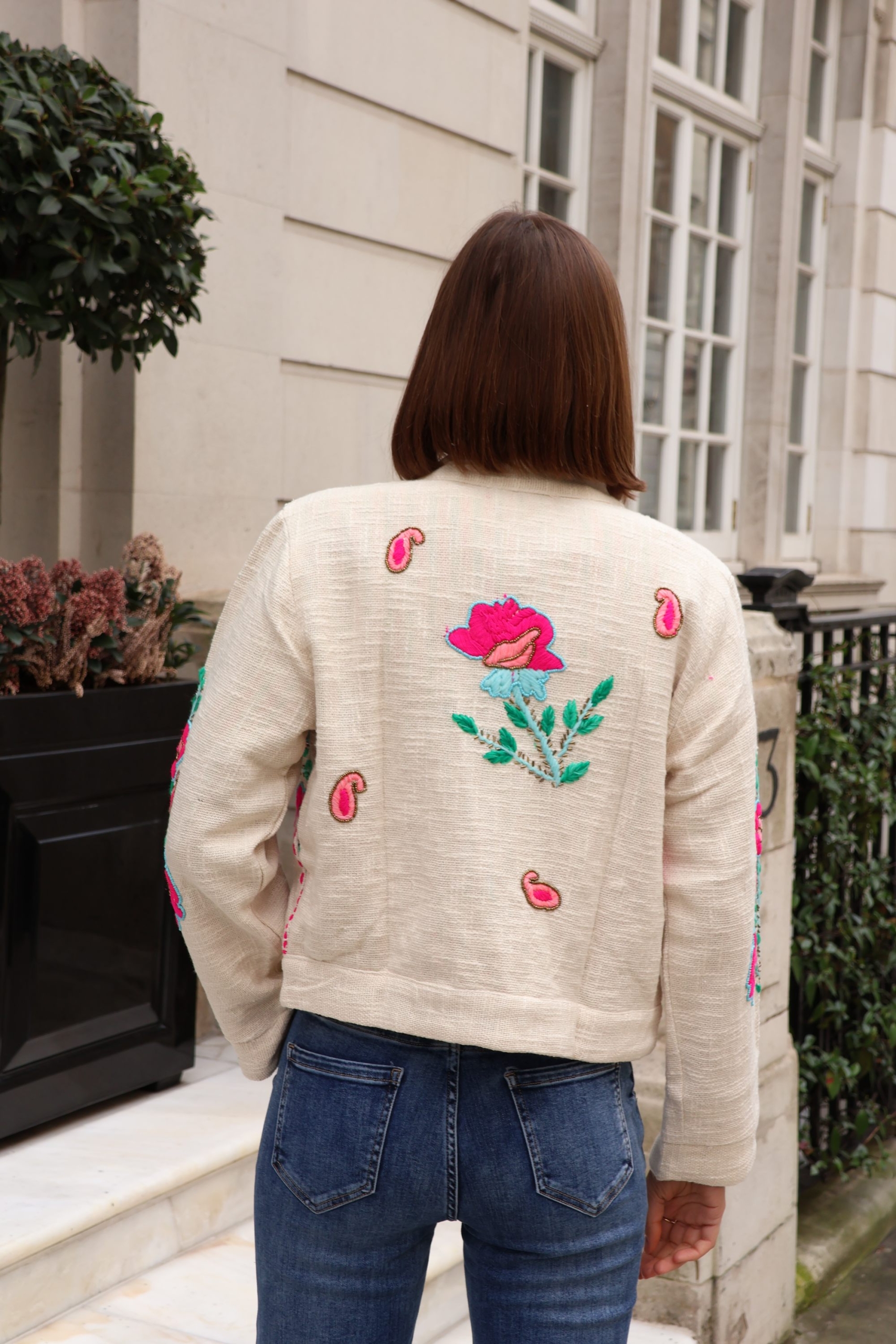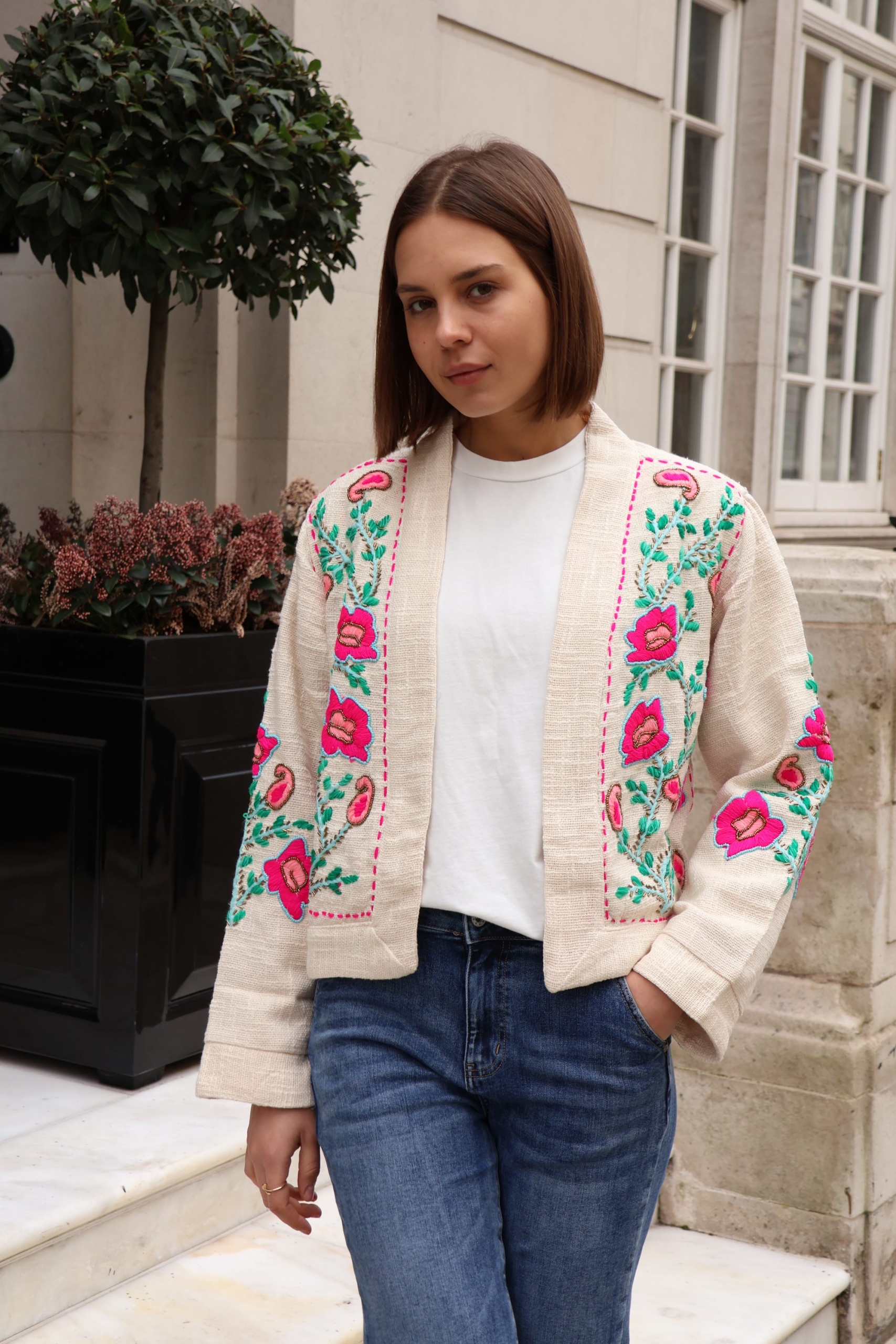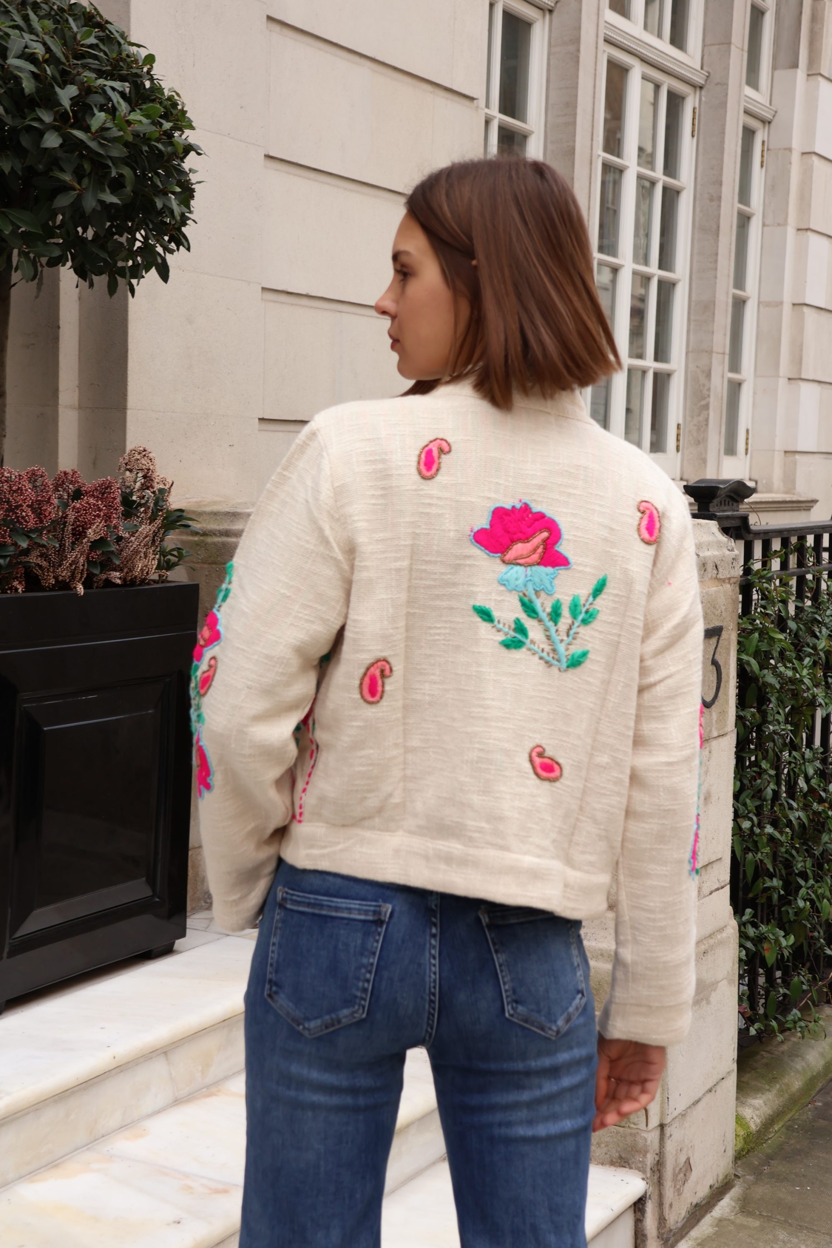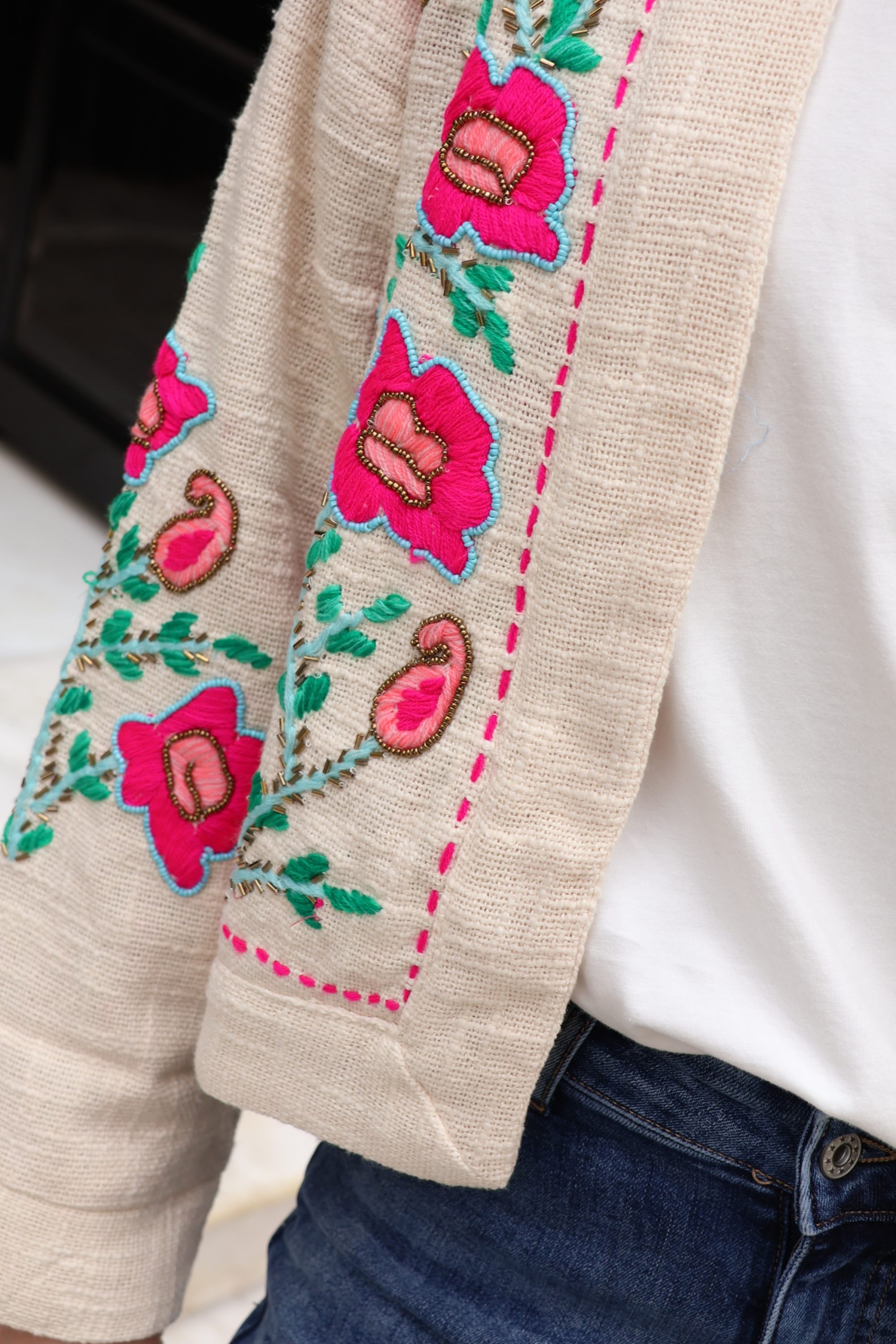 The Isla jacket is a statement layering piece crafted from breathable cotton and beautifully embellished with colourful beads for a touch of artisanal charm. Designed with an open front and no fastenings, it drapes effortlessly for an easy, relaxed silhouette.