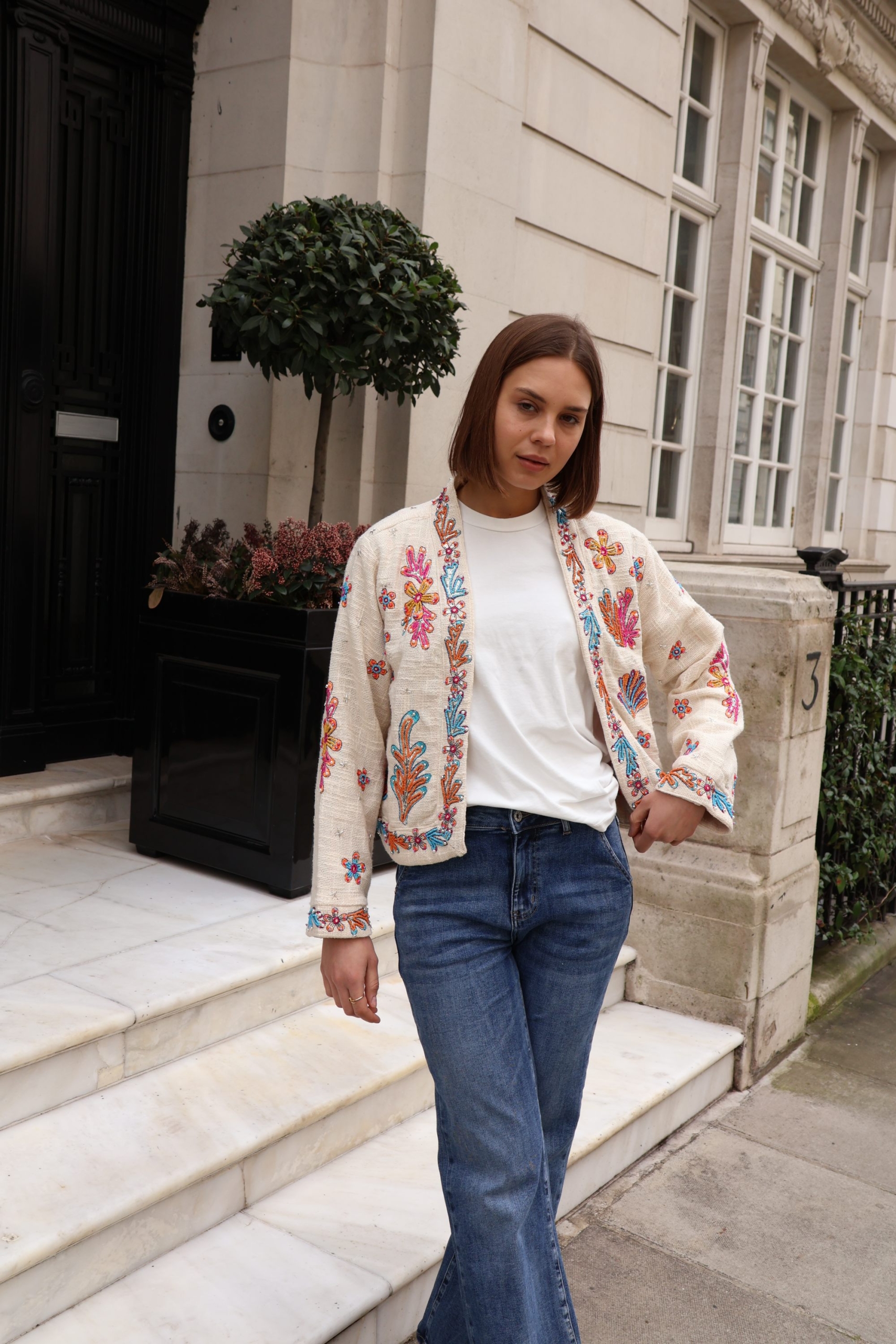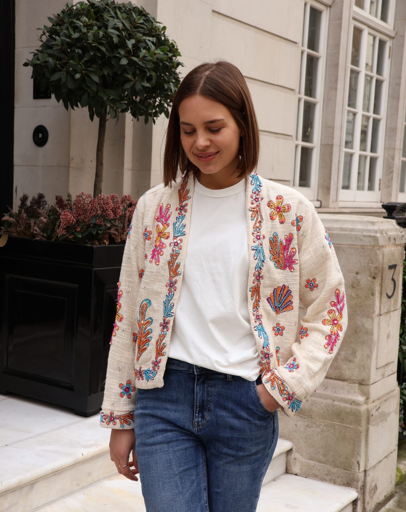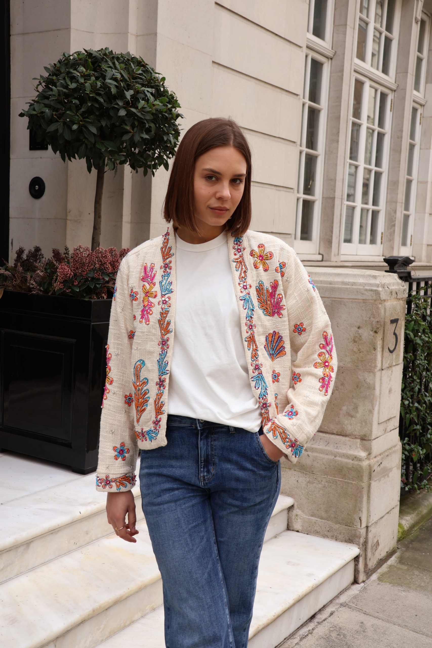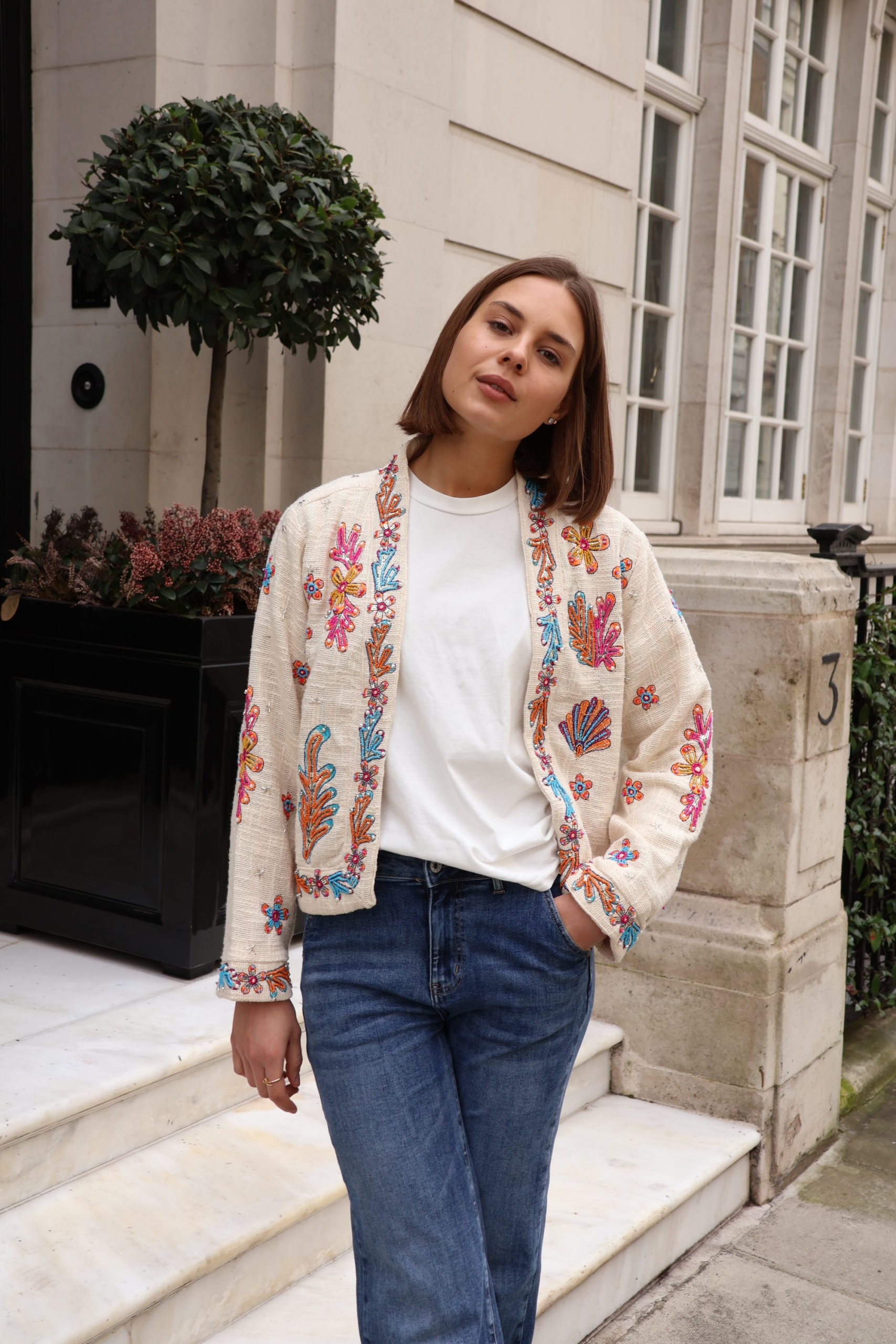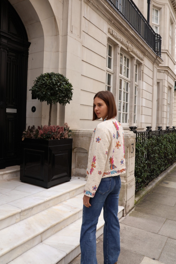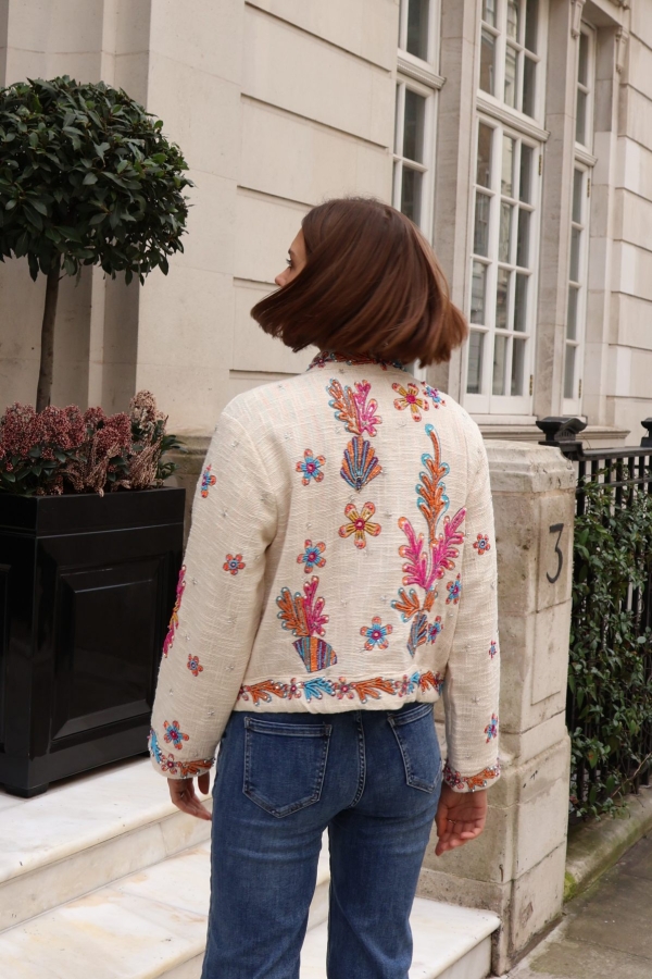 The Isla jacket is a statement layering piece crafted from breathable cotton and beautifully embellished with colourful beads for a touch of artisanal charm. Designed with an open front and no fastenings, it drapes effortlessly for an easy, relaxed silhouette.