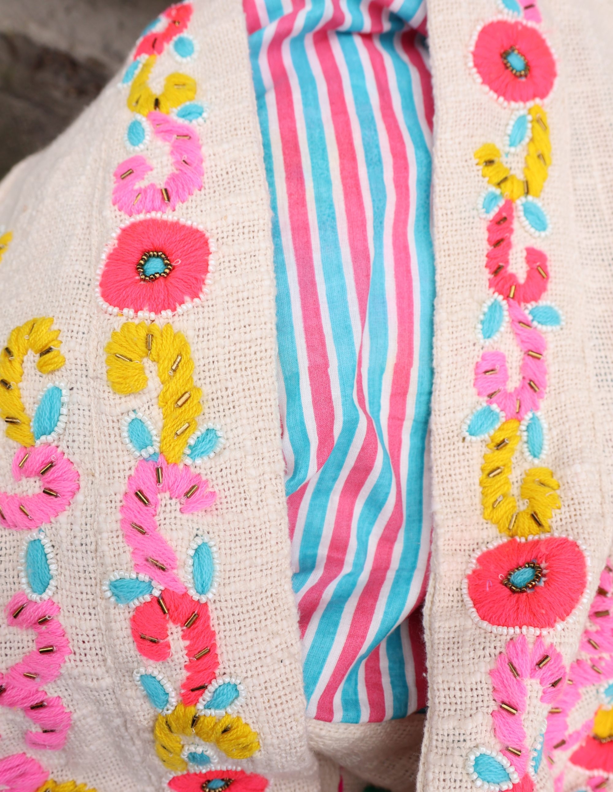 The Isla jacket is a statement layering piece crafted from breathable cotton and beautifully embellished with colourful beads for a touch of artisanal charm. Designed with an open front and no fastenings, it drapes effortlessly for an easy, relaxed silhouette.