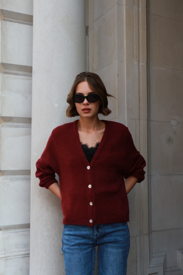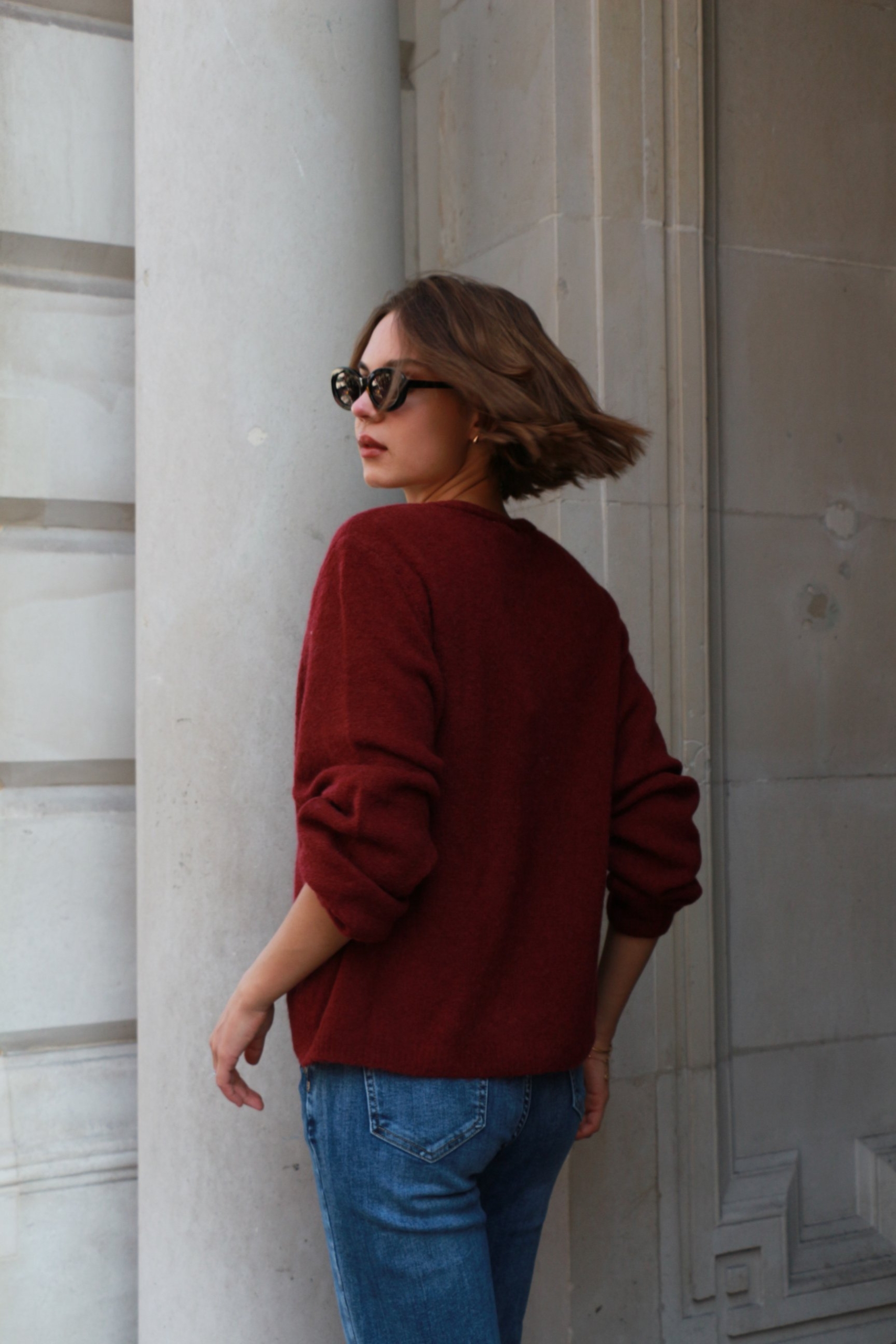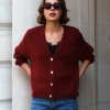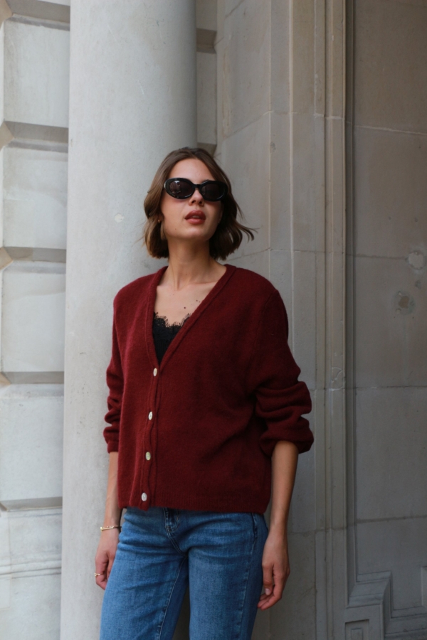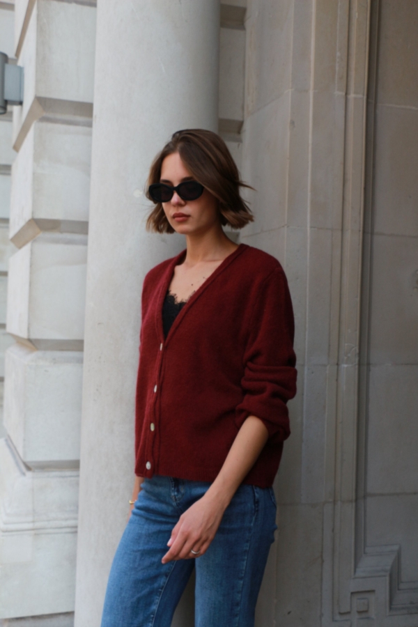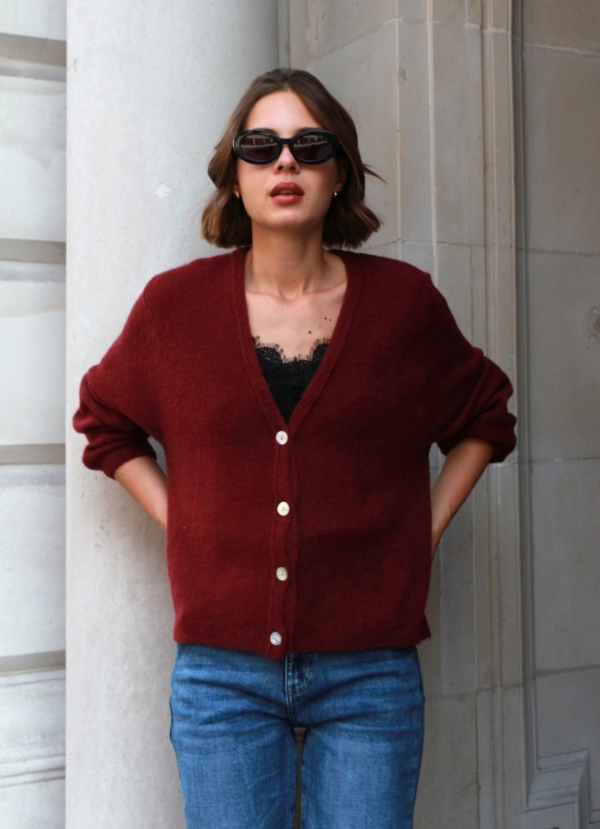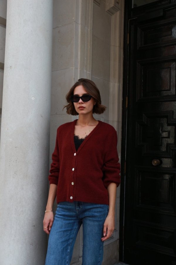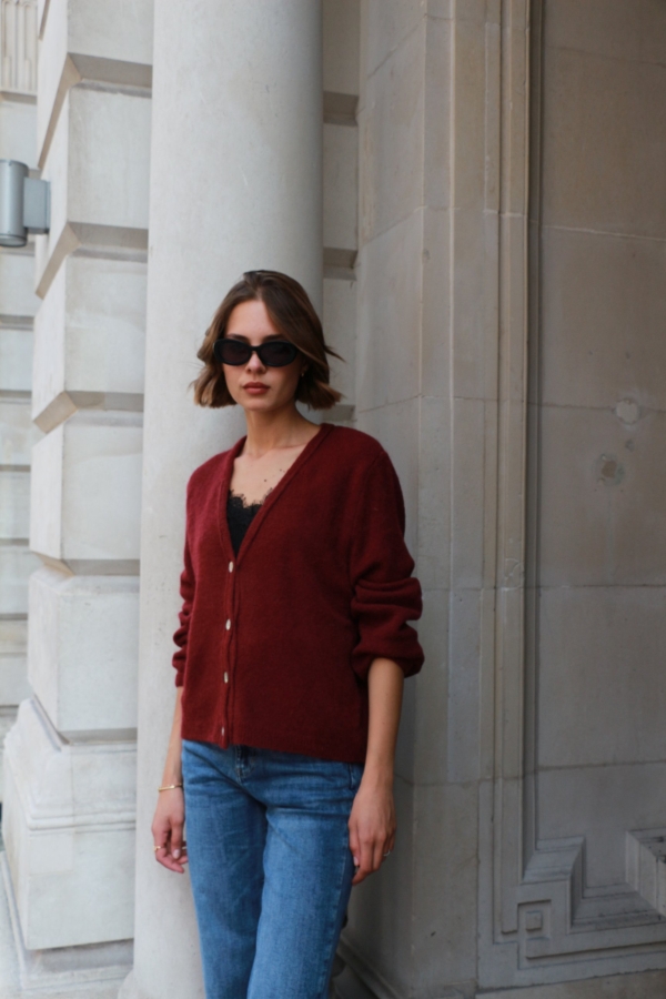 This cardigan is made from a soft wool and certified cashmere-blend and has a relaxed shape with a V-neckline that layers well over tees and turtlenecks . It’s designed for a relaxed fit with ribbed trims. Slip it on over a tank or turtleneck and leave it undone at the hem for a laid-back take. It has a relaxed silhouette that’s perfect for layering. This hue will coordinate well with denim and floral-print dresses alike.