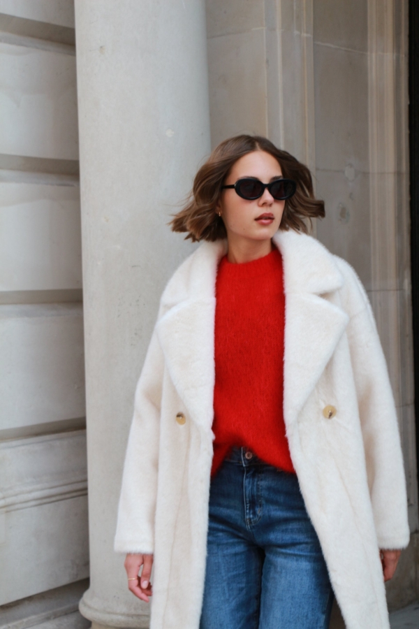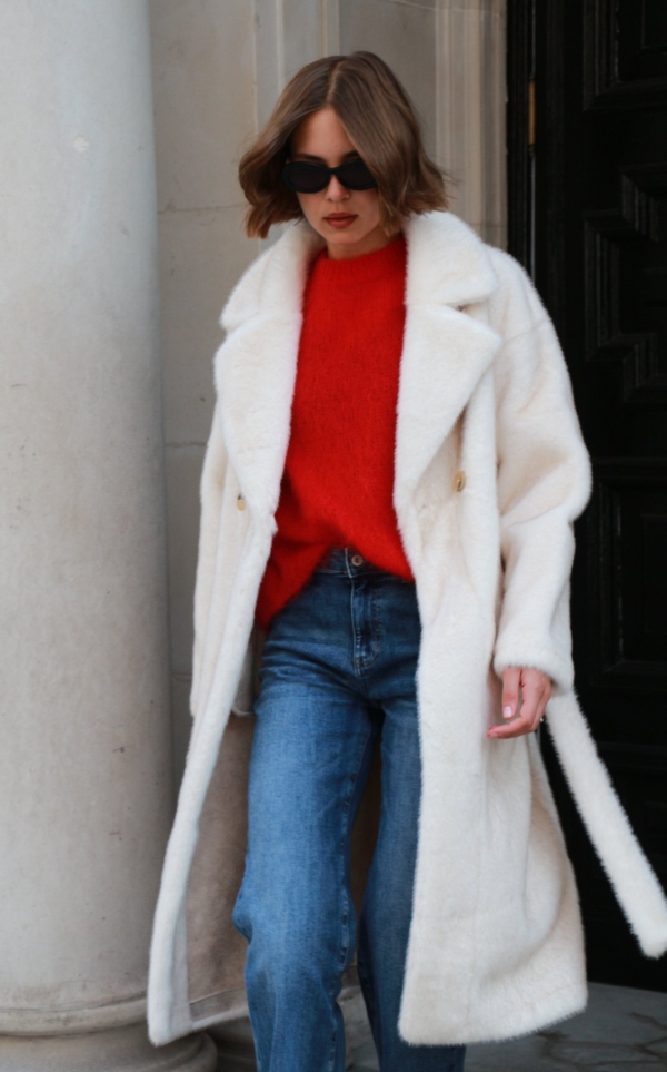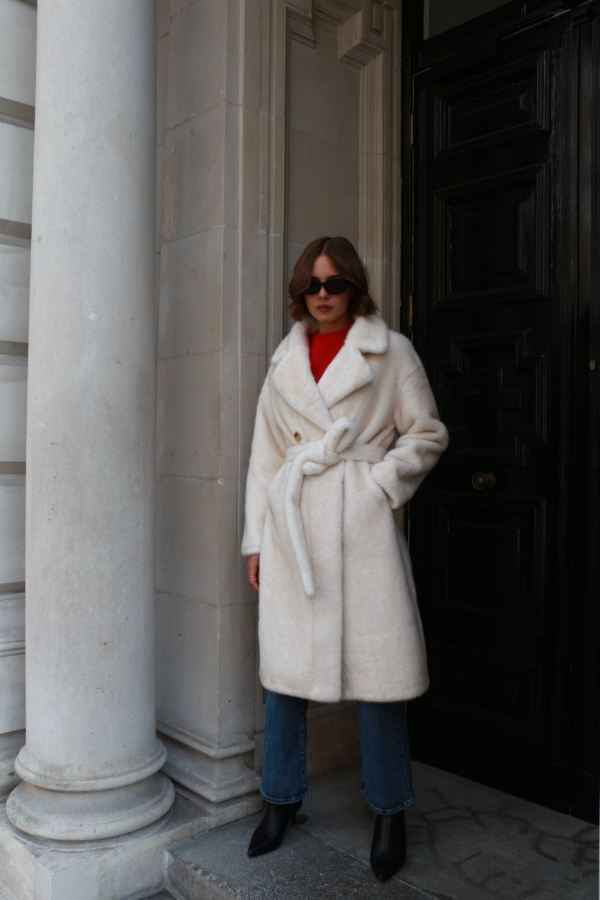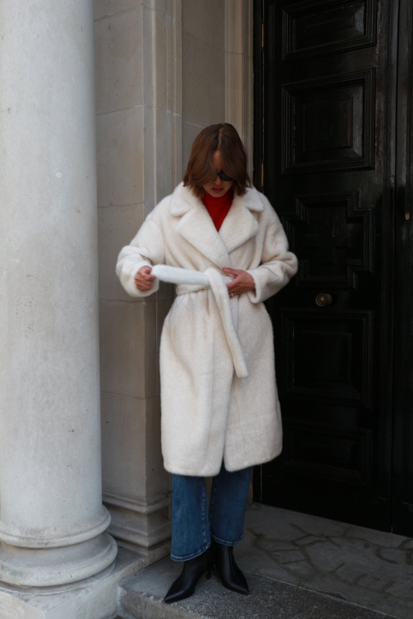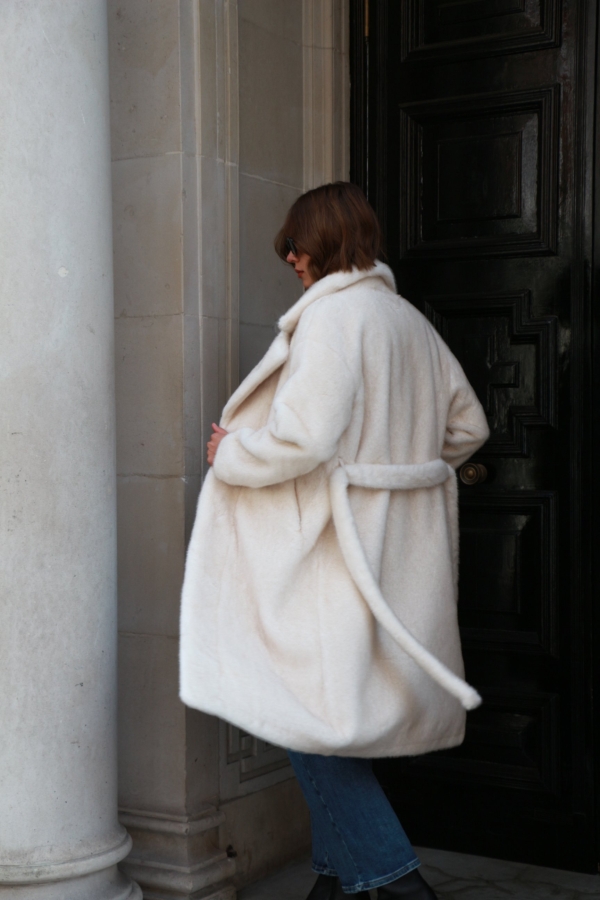 Kelly outerwear feels so soft and luxurious, you’re guaranteed to be reaching for it on rotation all season long. This  style has been made from plush faux fur . The minimal design is enhanced by  a classic storm flap neckline , while the smooth satin lining ensures easy layering. Kelly coat offers the look of chic luxury while offering plenty of warmth.  Discreet pockets come in handy for stowing essentials on the go. Lean into the relaxed mood by styling yours with just  about anything. Slip it on over a turtleneck sweater or shirt dress.