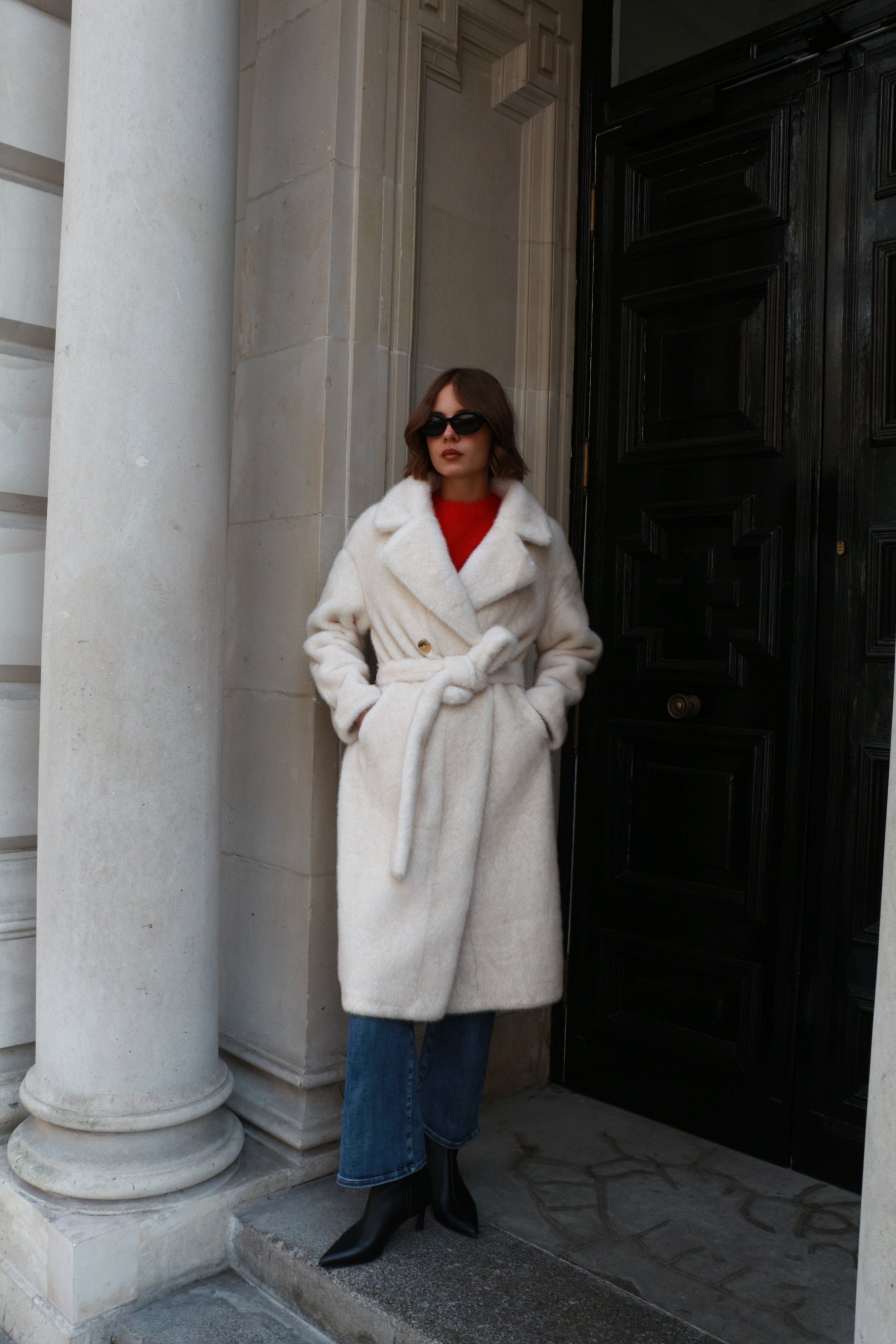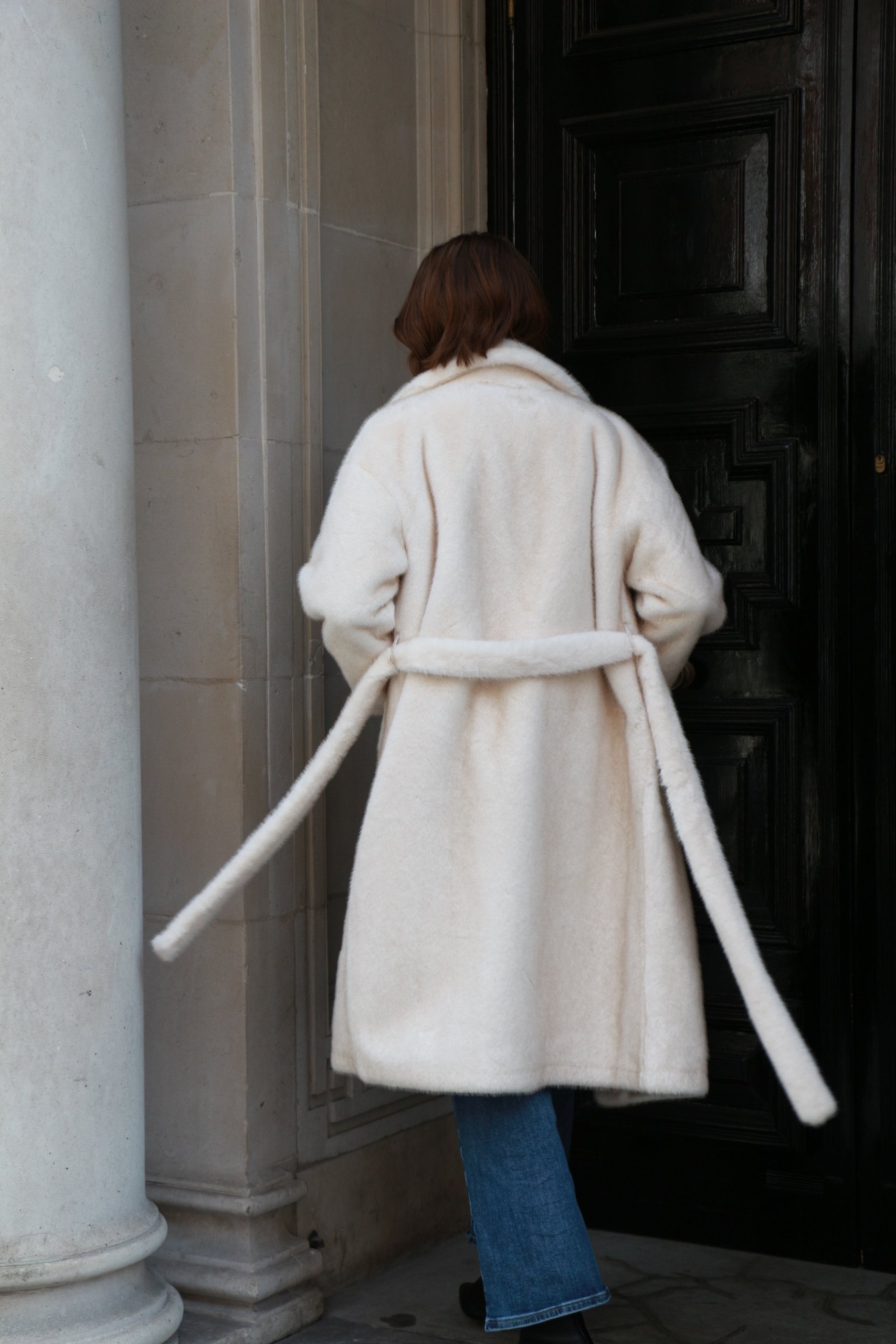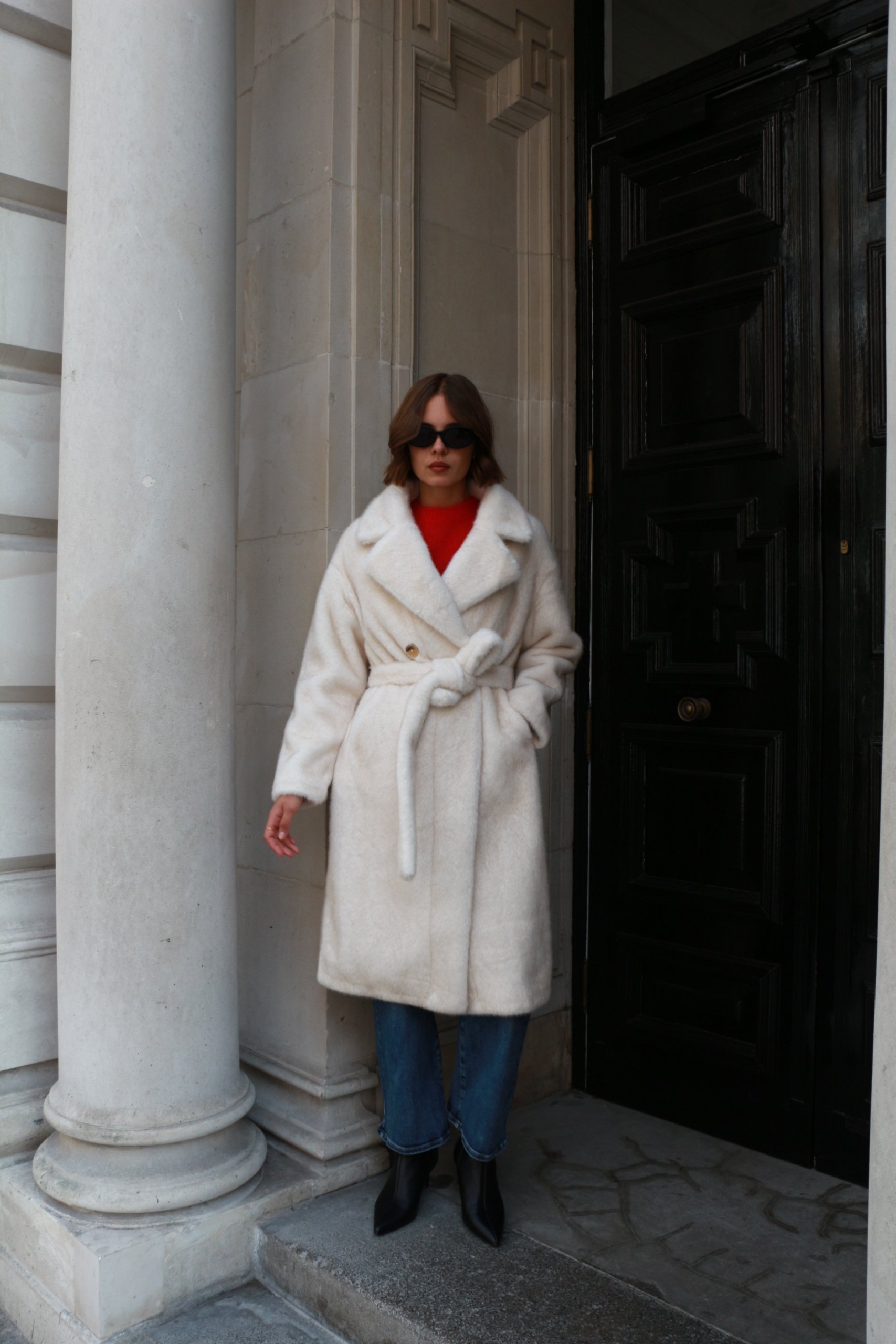 Kelly outerwear feels so soft and luxurious, you’re guaranteed to be reaching for it on rotation all season long. This  style has been made from plush faux fur . The minimal design is enhanced by  a classic storm flap neckline , while the smooth satin lining ensures easy layering. Kelly coat offers the look of chic luxury while offering plenty of warmth.  Discreet pockets come in handy for stowing essentials on the go. Lean into the relaxed mood by styling yours with just  about anything. Slip it on over a turtleneck sweater or shirt dress.