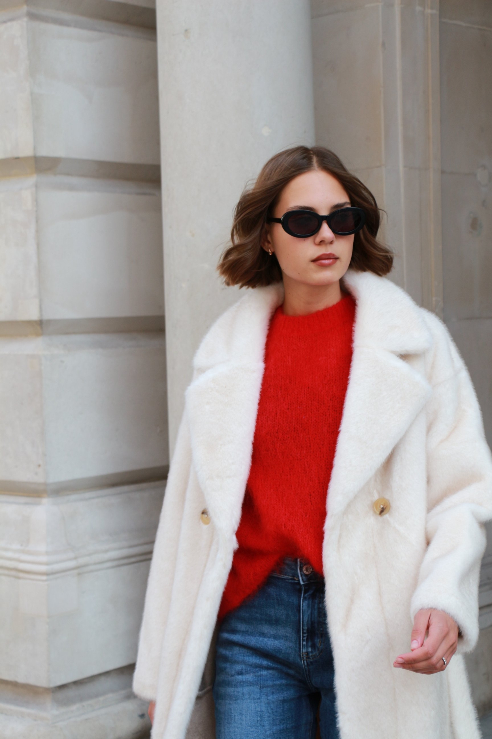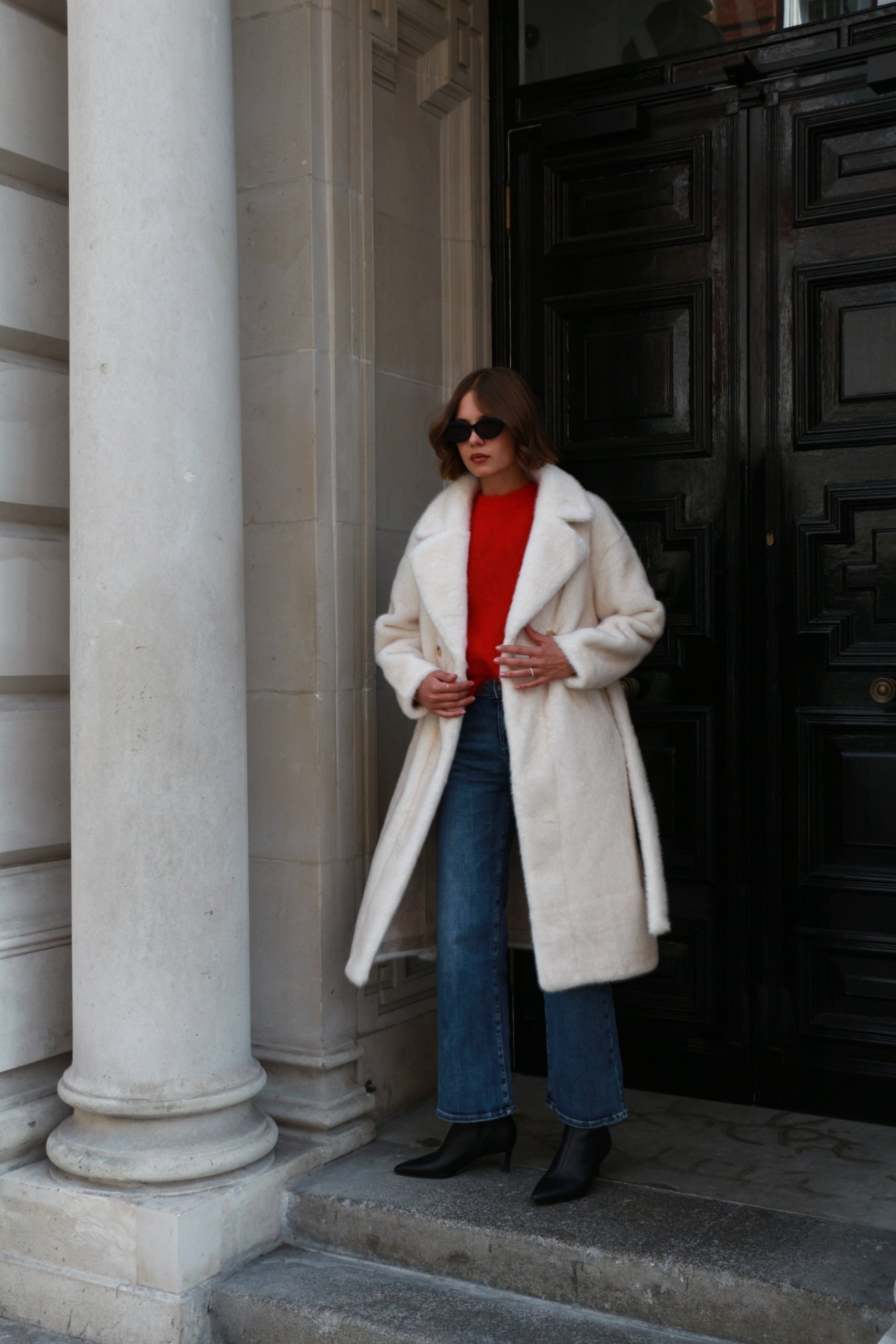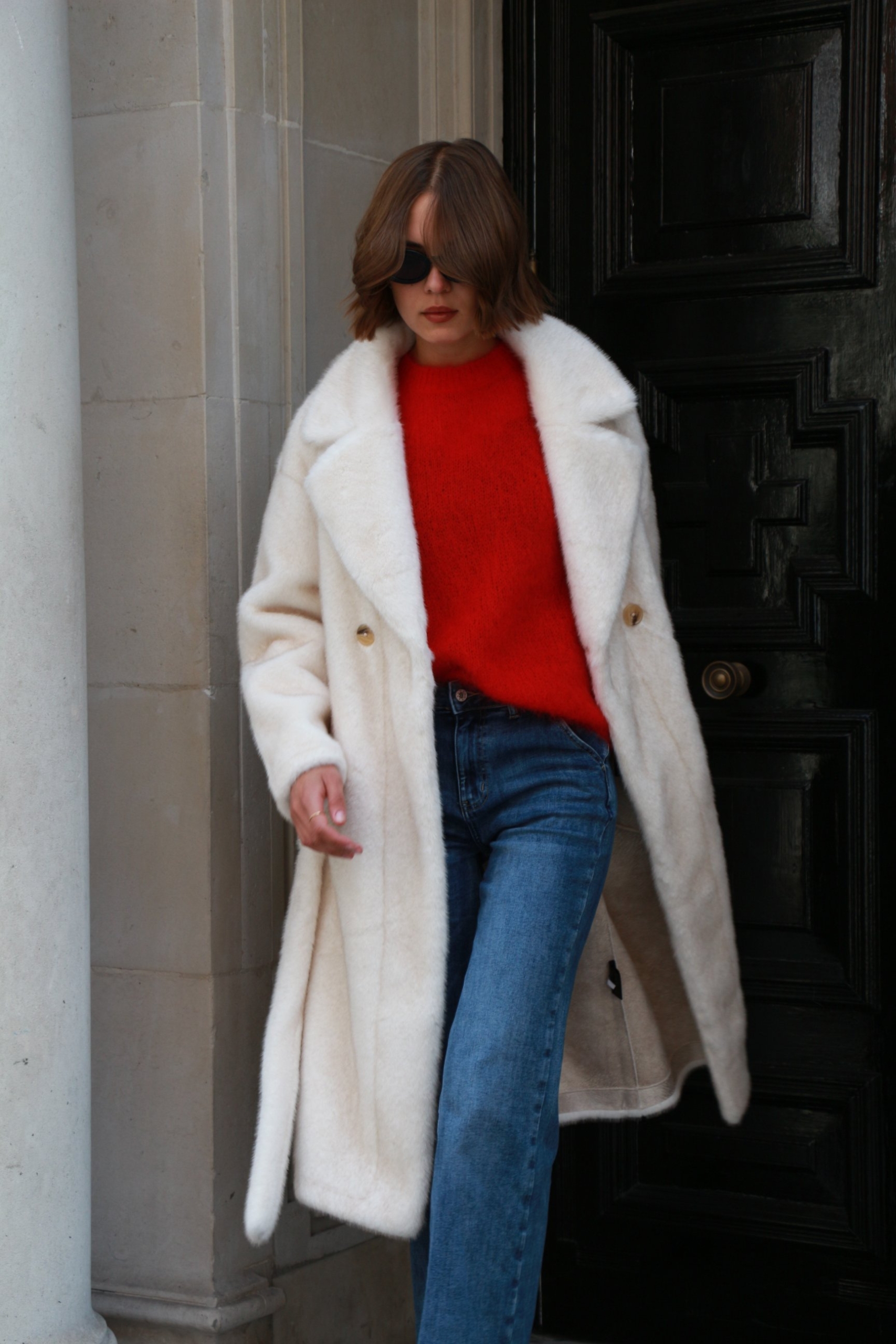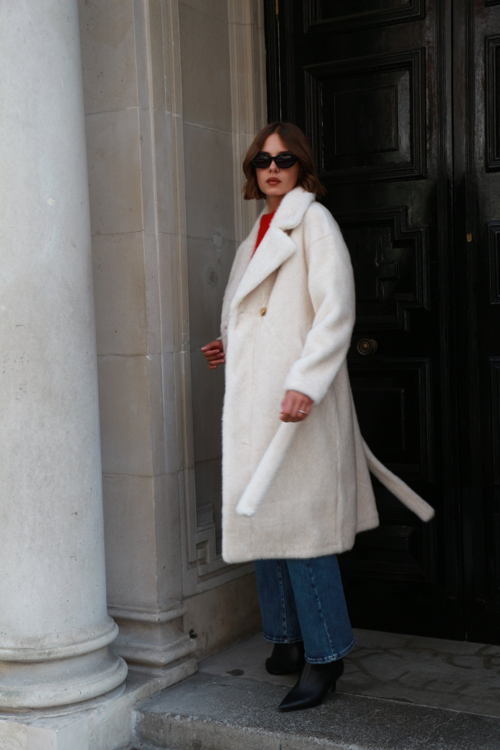 Kelly outerwear feels so soft and luxurious, you’re guaranteed to be reaching for it on rotation all season long. This  style has been made from plush faux fur . The minimal design is enhanced by  a classic storm flap neckline , while the smooth satin lining ensures easy layering. Kelly coat offers the look of chic luxury while offering plenty of warmth.  Discreet pockets come in handy for stowing essentials on the go. Lean into the relaxed mood by styling yours with just  about anything. Slip it on over a turtleneck sweater or shirt dress.