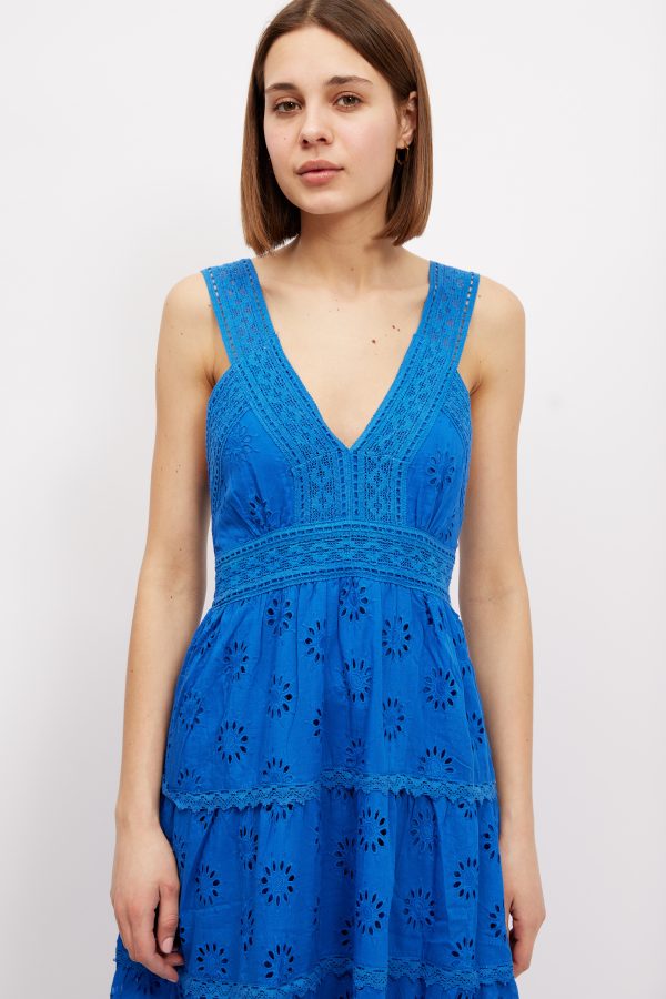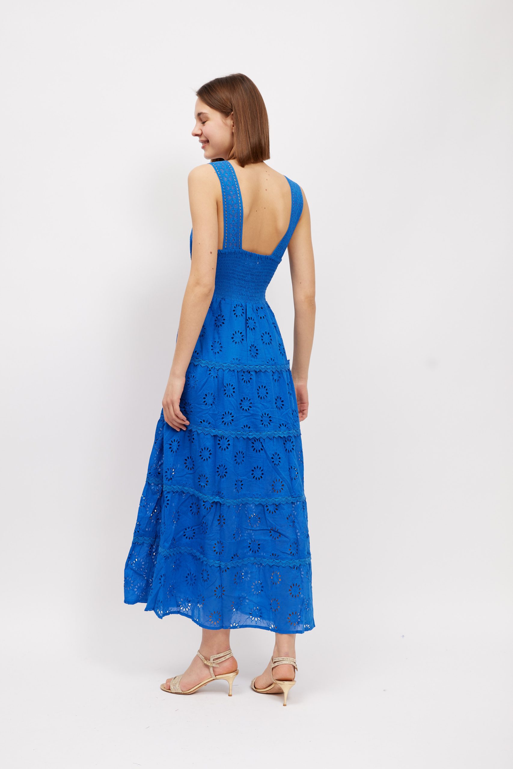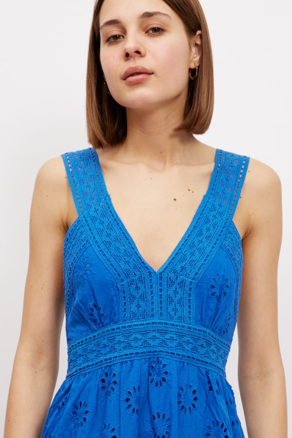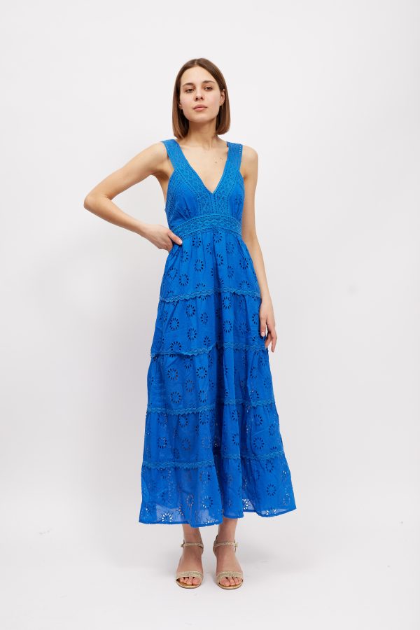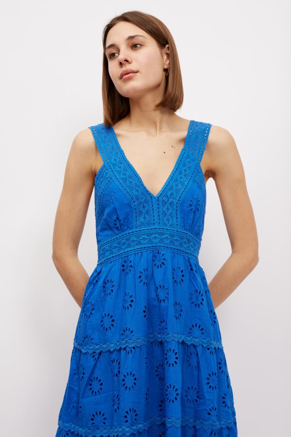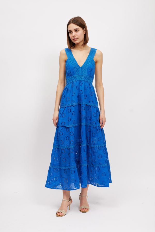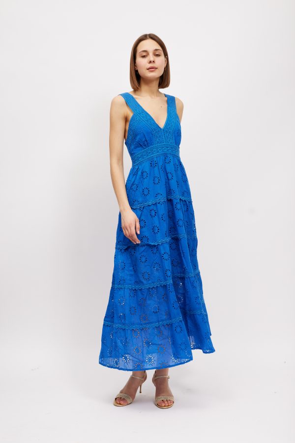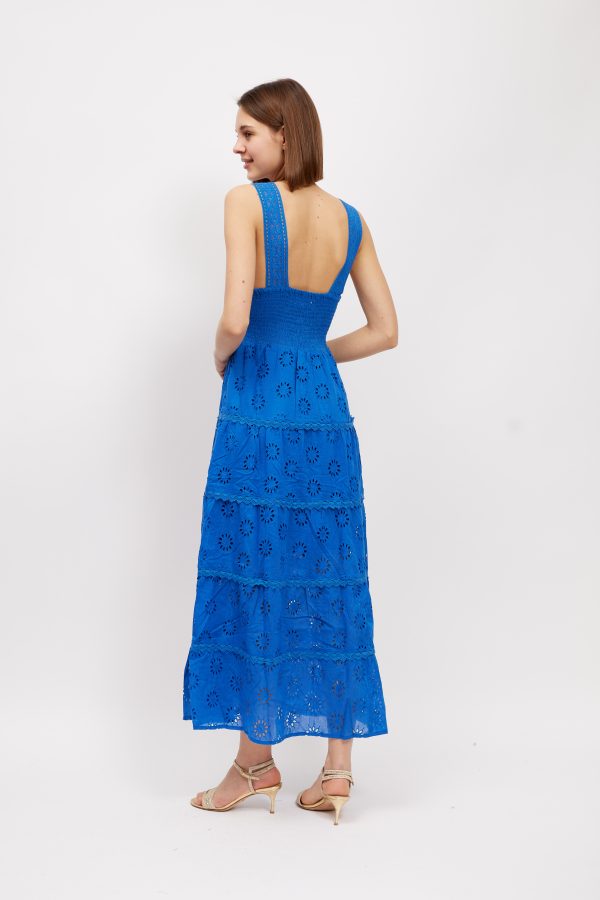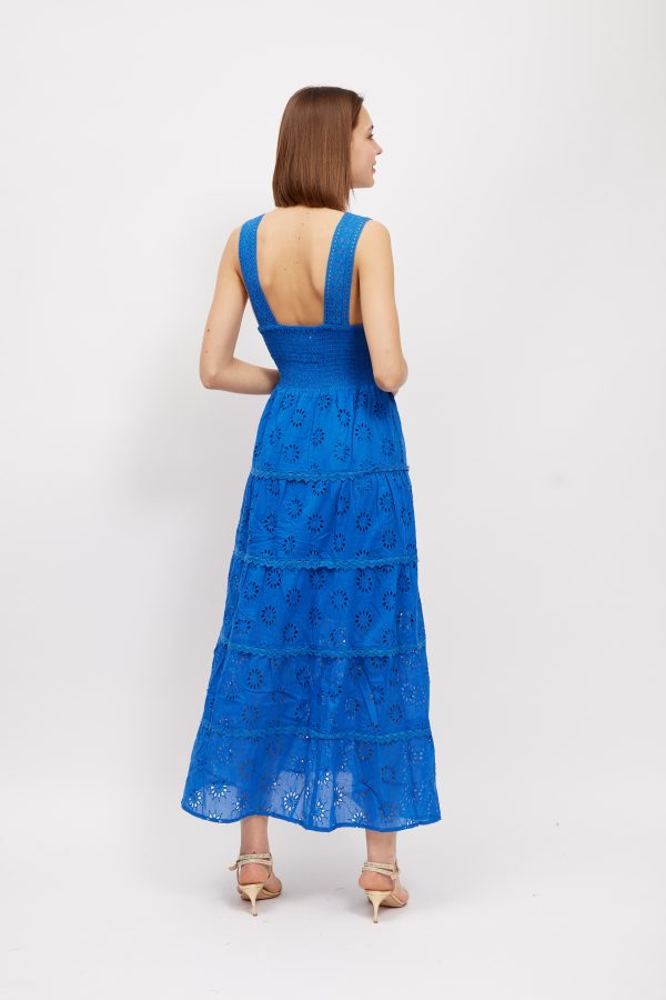 A chic and feminine style to wear in balmy weather. This ‘Kim’ ‘ maxi dress is made from pretty broderie anglaise cotton-poplin that feels so cool and comfortable in balmy temperatures . It’s perfect for vacations and also makes a lovely choice for brides planning to get hitched by the sea. Style yours with sandals and a top-handle tote.