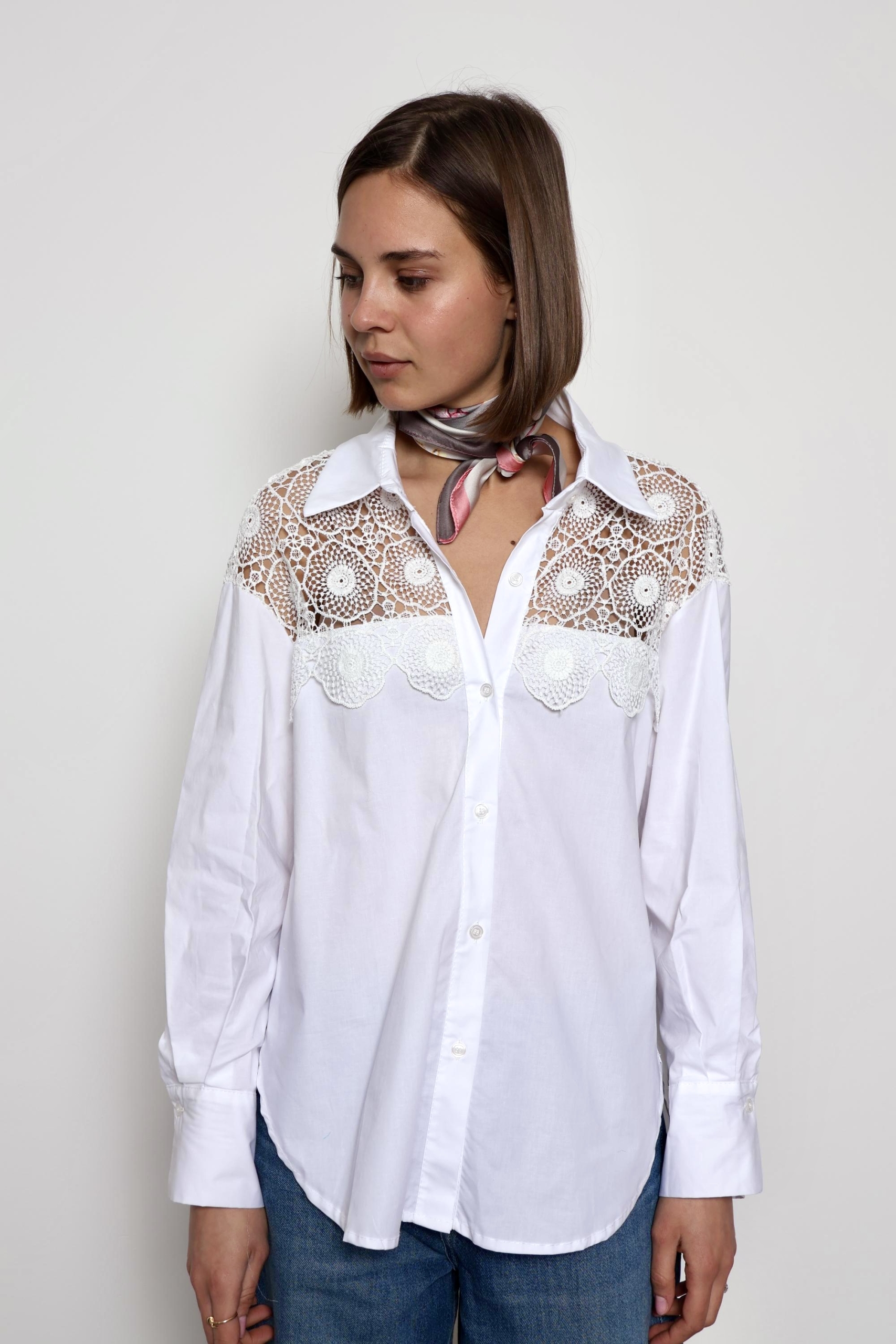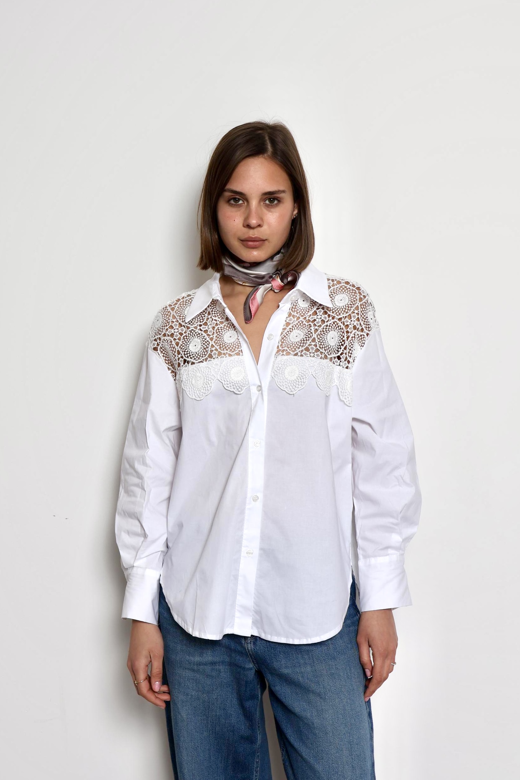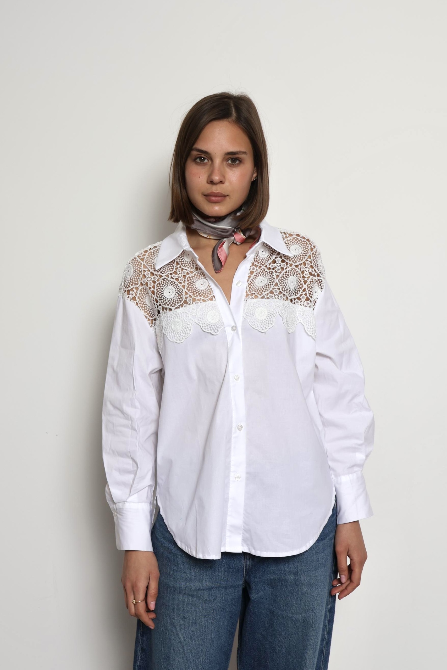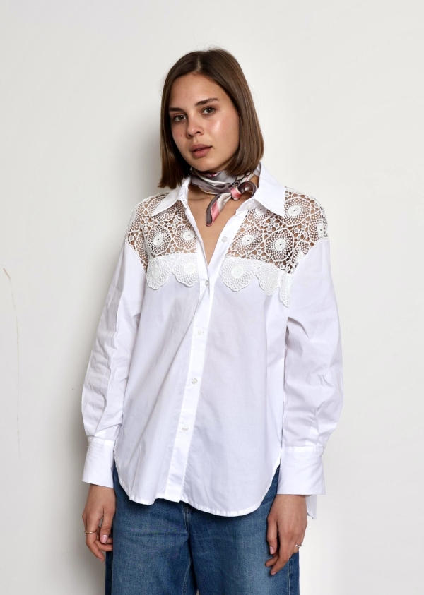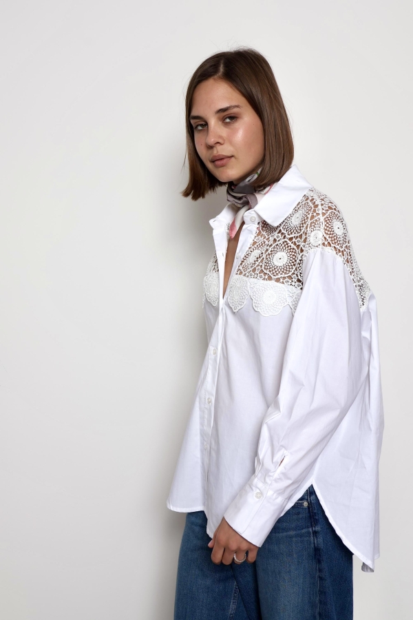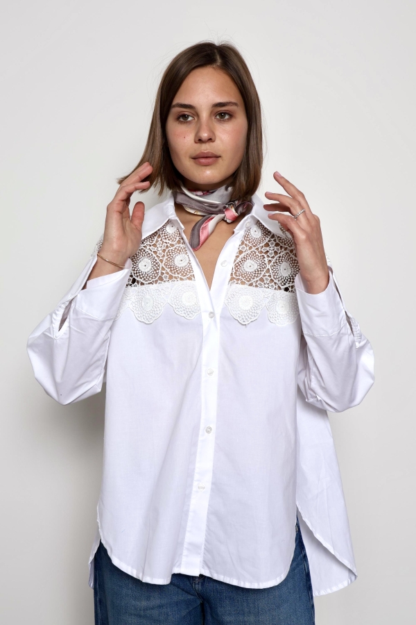 The Kylie blouse is a timeless piece designed for effortless elegance and everyday comfort. Crafted from soft, breathable cotton, it features delicate lace detailing on the sleeves that adds a feminine and refined touch. Lightweight and versatile, the Khloe blouse pairs beautifully with jeans, skirts, or tailored trousers, making it perfect for both casual days and more polished looks.