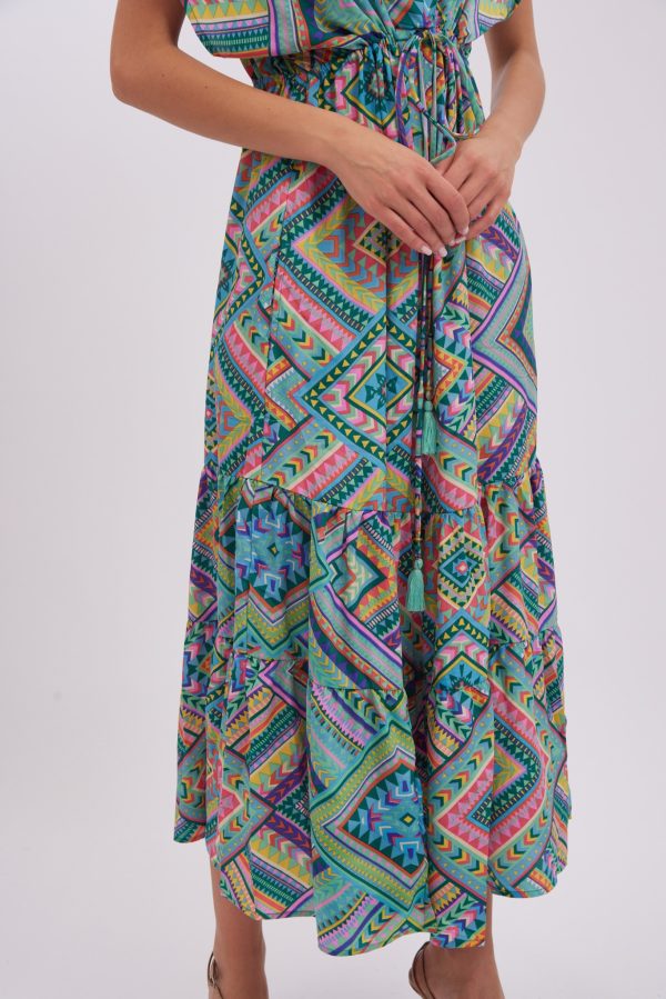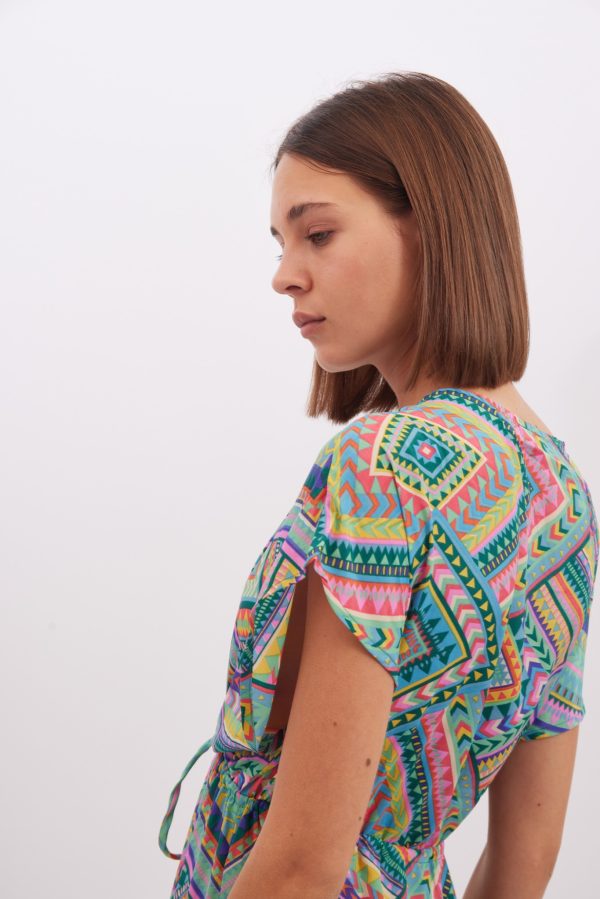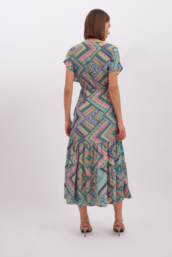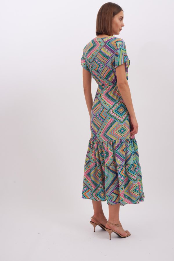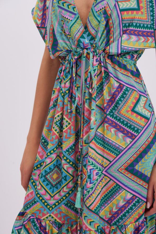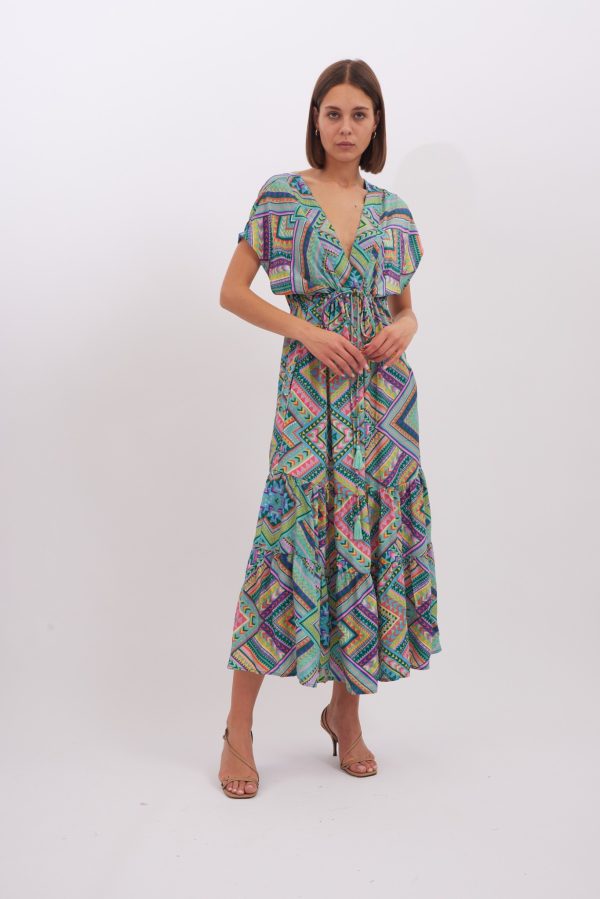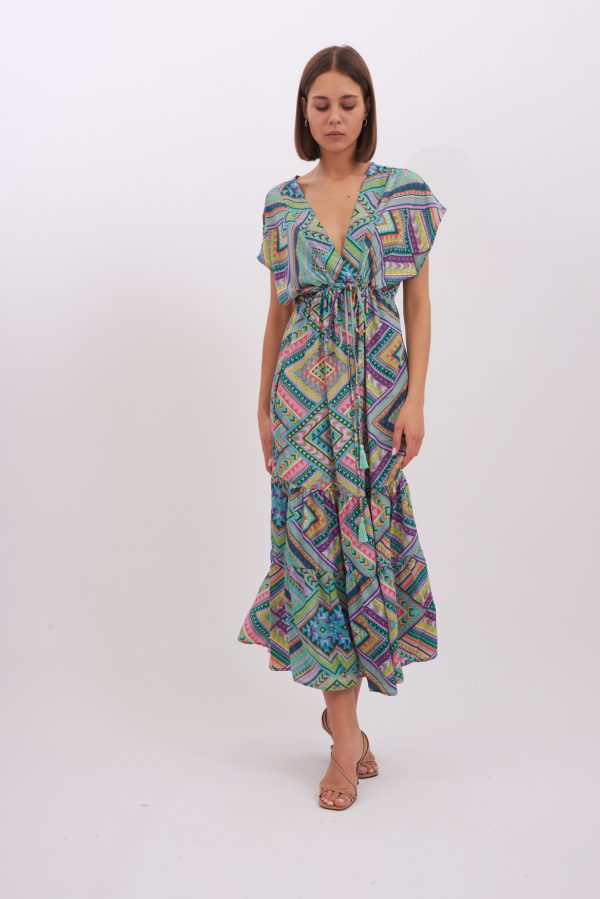 Dress Layla is made from lightweight viscose , it’s patterned with the pretty print and has has a cap sleeves . Romantic and playful dress is designed with a plunging V-neckline. Bring out the vibrant colours by matching your lipstick to one of the shades. The spirited print will capture beautifully in photographs at dinners and outdoor weddings. Wear yours with strappy sandals and a woven tote.