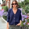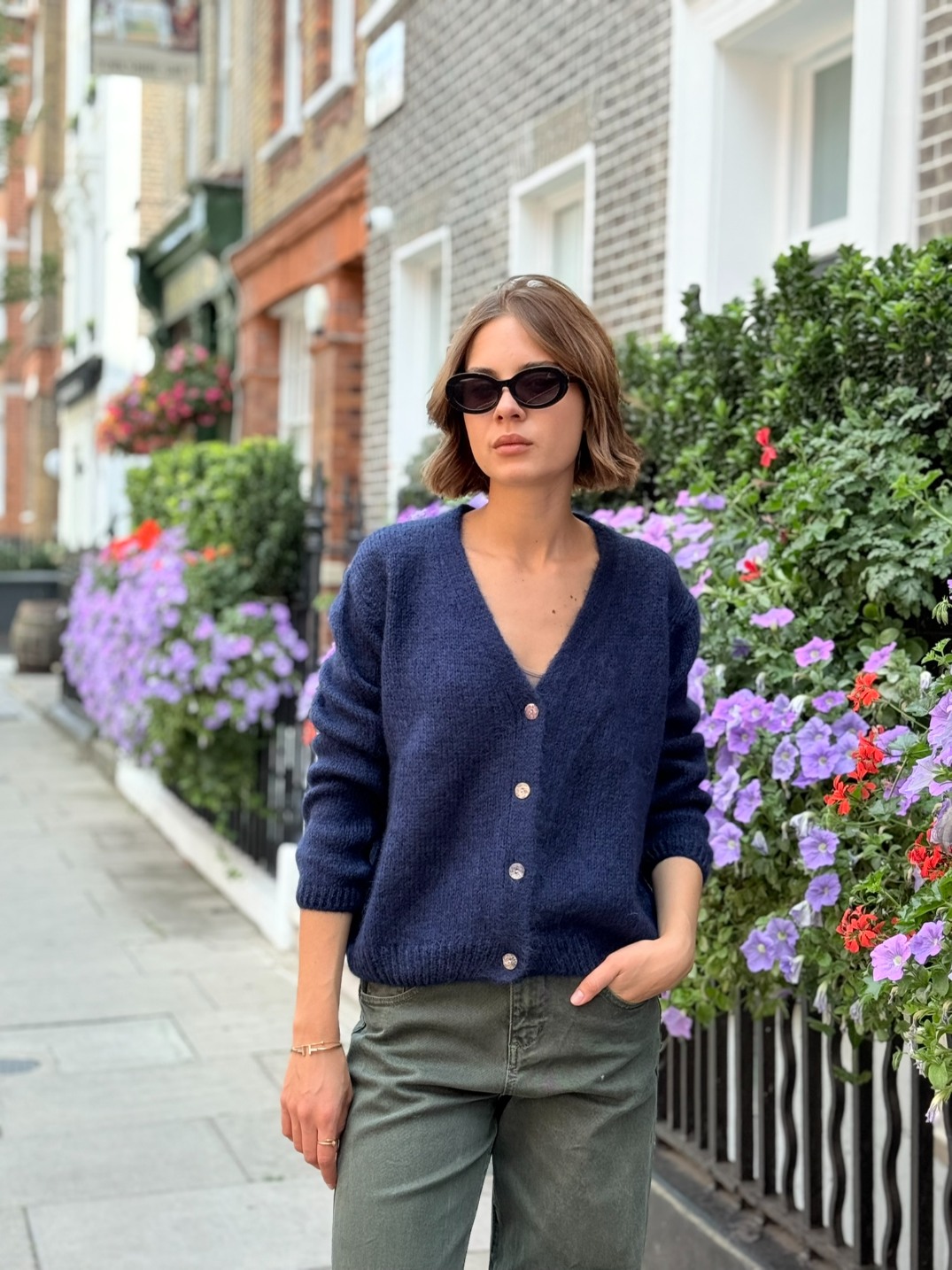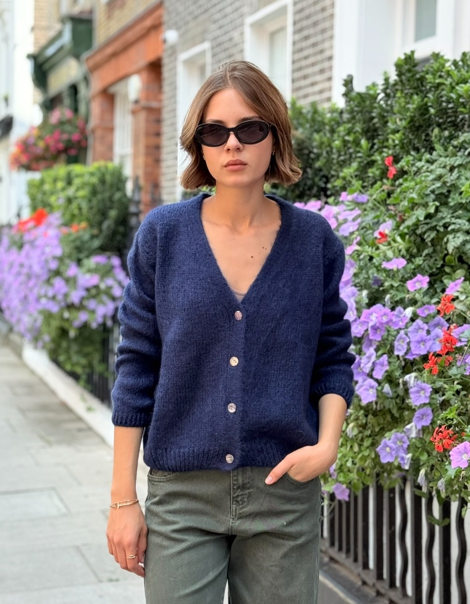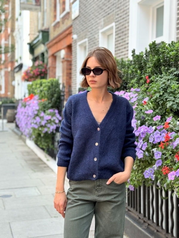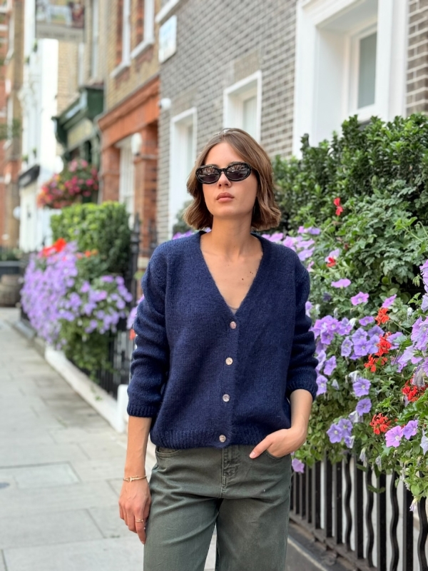 Leah cardigan is finely knitted from a pretty shade of a lightweight mohair blend for a soft, fuzzy handle. It’s designed for a slim fit with ribbed trims. Slip it on over a tank or turtleneck and leave it undone at the hem for a laid-back take. It has a slim silhouette that’s perfect for layering. This hue will coordinate well with denim and floral-print dresses alike.
