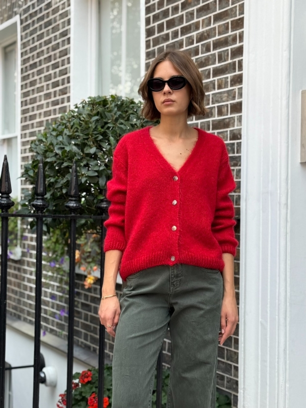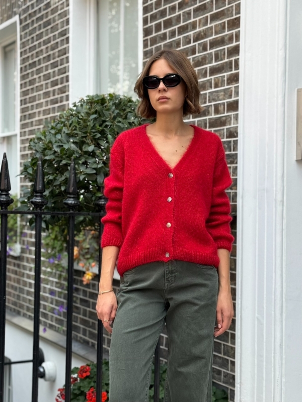Leah cardigan is finely knitted from a pretty shade of a lightweight mohair blend for a soft, fuzzy handle. It’s designed for a slim fit with ribbed trims. Slip it on over a tank or turtleneck and leave it undone at the hem for a laid-back take. It has a slim silhouette that’s perfect for layering. This hue will coordinate well with denim and floral-print dresses alike.